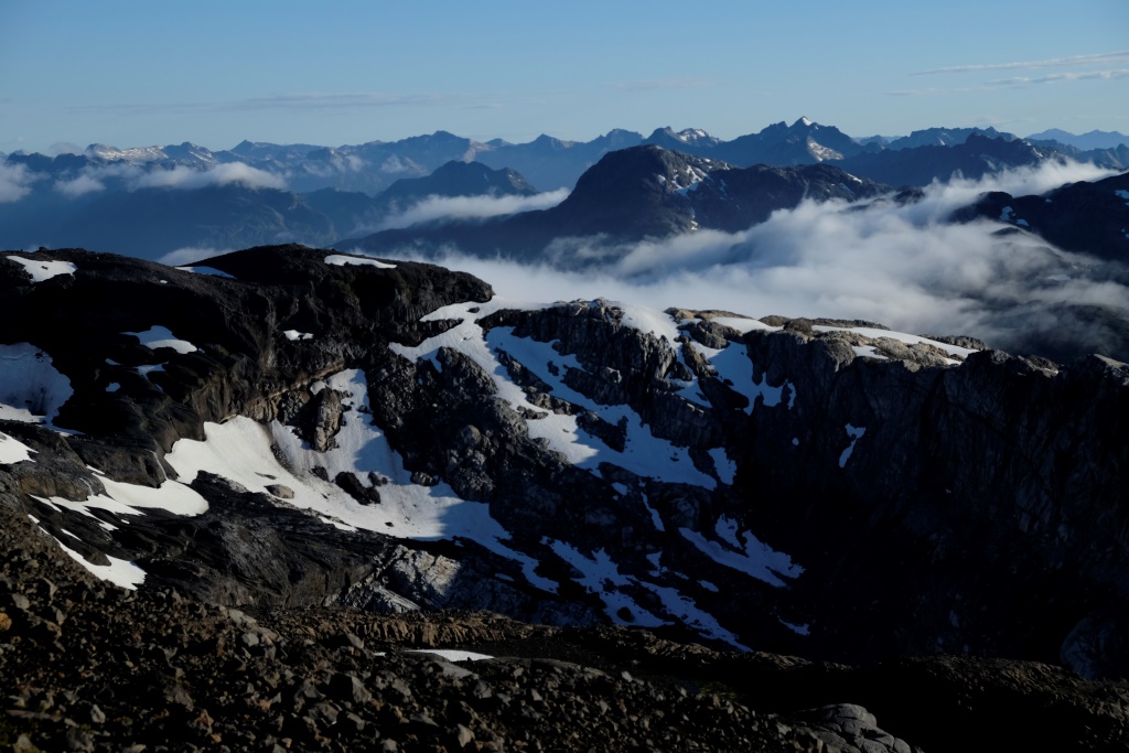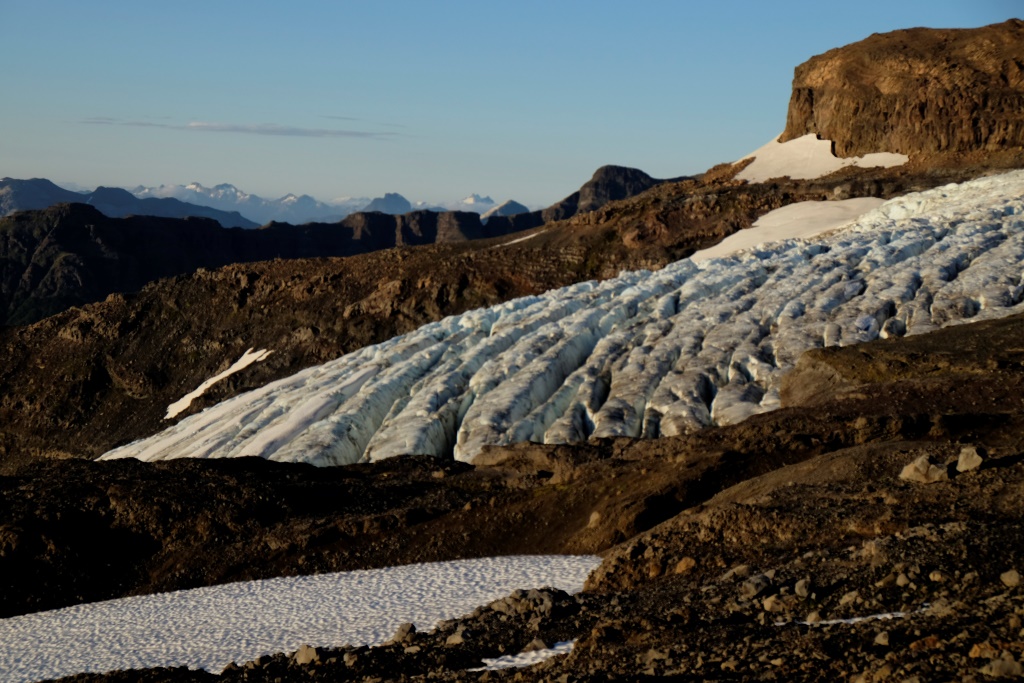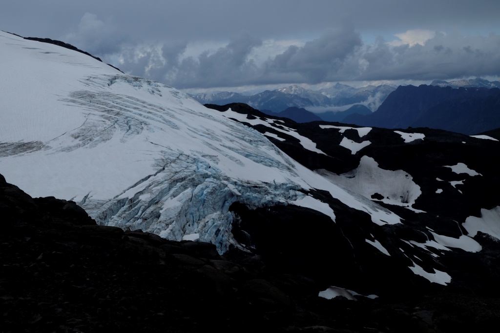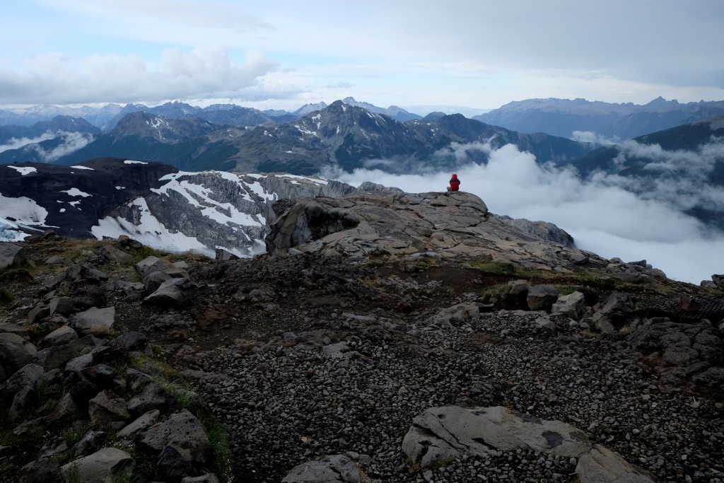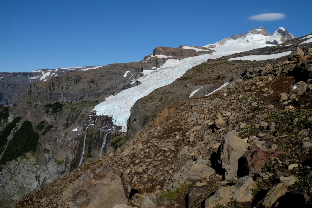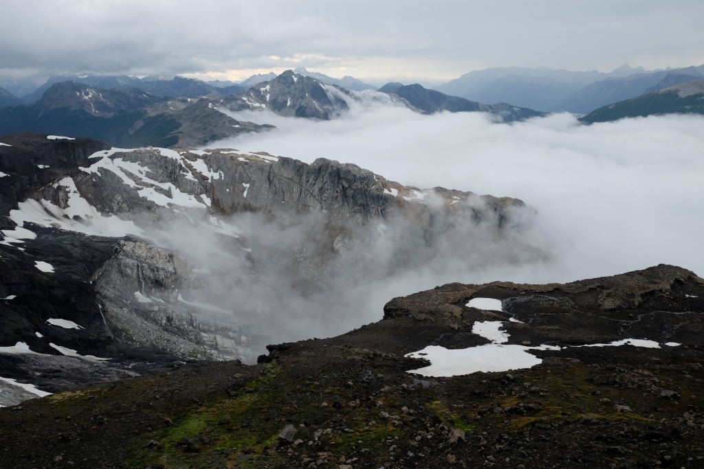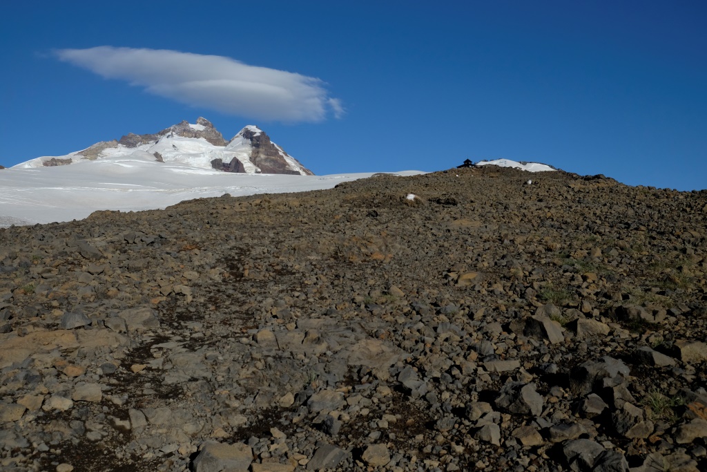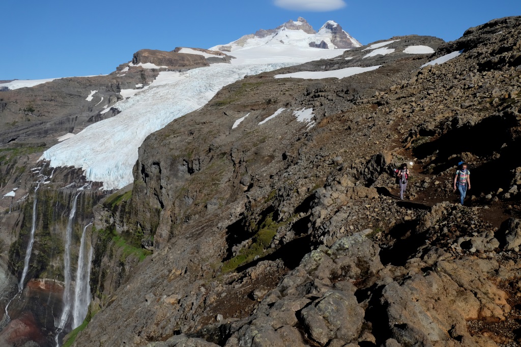 No visiem refugio iemītniekiem esmu izgājusi pirmā un rīts ir pilnībā manējais. Tāpat kā kalni, mākoņi, saule, pat ledājs. Cik savtīgi! Man ļoti patīk iet vienai, bet patīk arī doma, ka no muguras soļo cilvēki, kuri vajadzības gadījumā var tev palīdzēt. Meitenes mani panāk pēc stundas, īsi pirms akmeņainā posma beigām. Šodien ceļš izskatās pavisam citādāk – saule silda, putniņi čivina. Tomēr, kad kāpjam lejā pa līkumoto taku, pašas neticam, ka esam šeit uztrausušās pa visu trako lietu, pat lejup kāpjot tā šķiet gara un stāva.