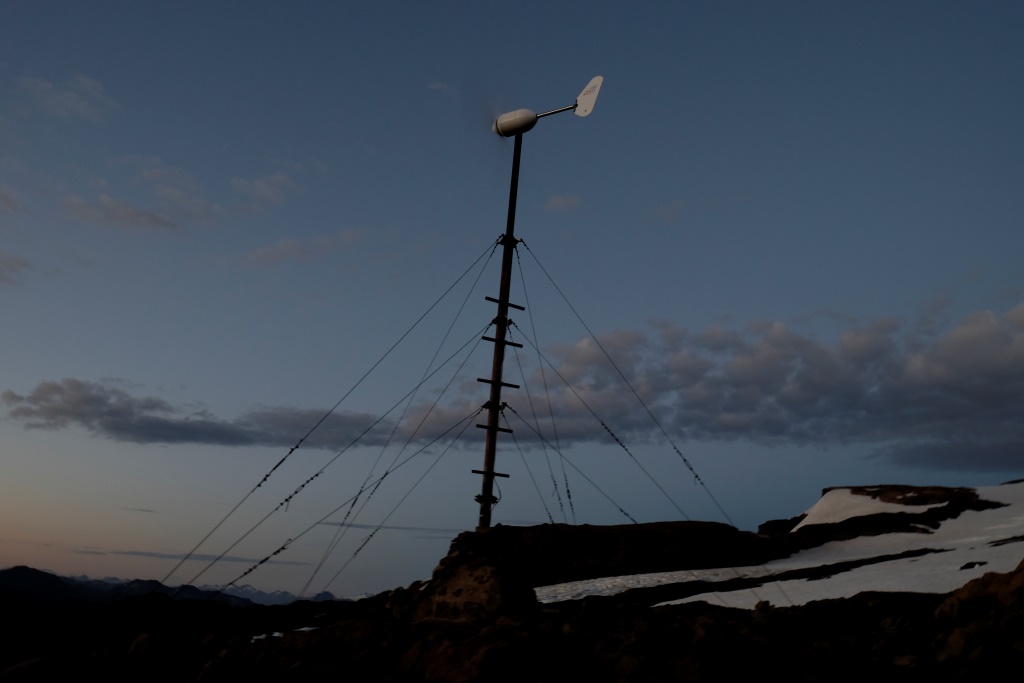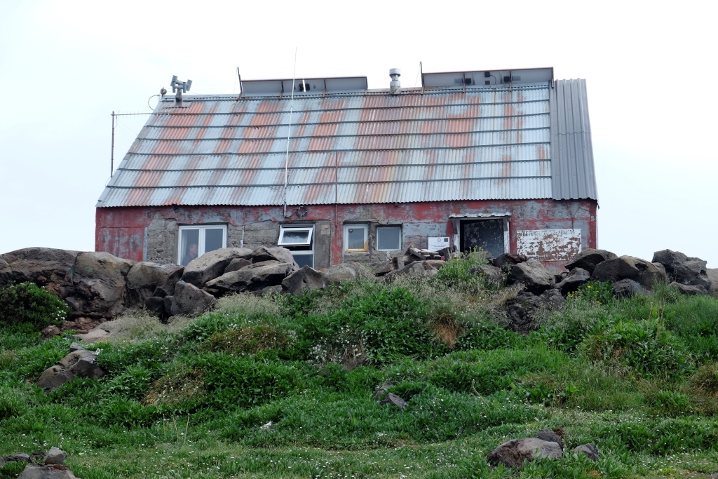 Kad nonākam pie pēdējā posma, lietus mazliet protas un pārtop smidzinātājā, bet sākas cita nelaime. Akmeņainā kalna galotne ir bez kokiem, tas ļauj vaļu vējam. Tā kā esam pilnībā izmirkušas un šortos, tas nav visai tīkami. Somā ir arī garās bikses, bet tās saliedēt nedrīkst, tad vakarā nebūs nekā sausa, ko pārģērbt. Tā nu vējš priecājas par mūsu plikajiem stilbiem, droši vien uz sniega fona izskatāmies diezgan amizanti. Pēc pusstundas kāpiena ar atvieglojumu ieraugām tālumā kādu ēku – tai jābūt mūsu refugio.