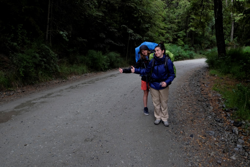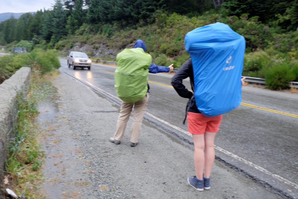 Šodienas laika prognoze solīja, ka līdz 9 rītā līs, pēc tam diena noskaidrosies un varēsim to pavadīt saules sabiedrībā, tāpat arī rītdienu. Tāpēc kopā ar vācu Lindu un franču Elodī esam optimisma pilnas šajās dienās uzrāpties līdz ledājiem. Lai tiktu uz ledāju pakāji, iesākumā jānonāk aptuveni 50 km tālāk, esam iecerējušas stopēt.
