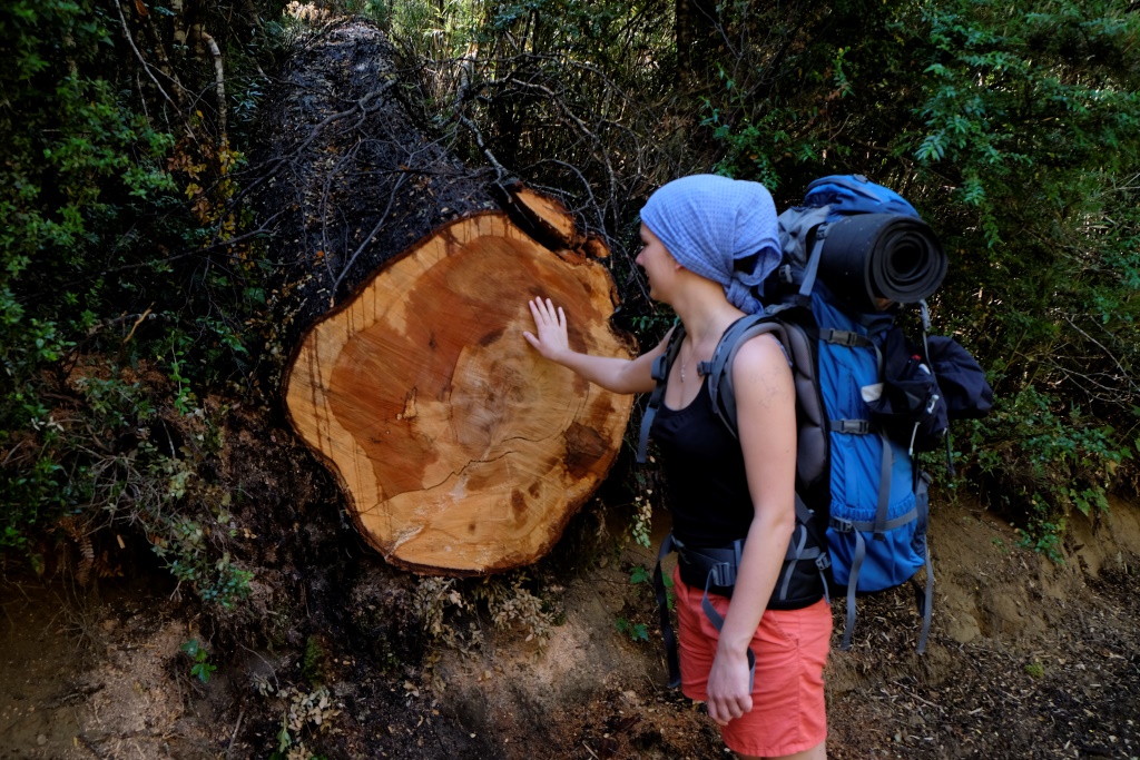 Esam gājušas jau pāris stundas un pagaidām nekas neliecina, ka šis maršruts nav piemērots iesācējiem, kā tas bija norādīts ceļvedī. Pusceļā ieturam pusdienas, uzpildām ūdens pudeles un attopamies ceļa sākumā, kuram dots nosaukums „līkloču taka”. Šaura, stāva taciņa ved kalnā, kuram neredz galu. Līdz ar mūsu pirmajiem soļiem uz šīs takas, uz zemes sāk krist arī pirmās lietus lāses. Pavisam drīz skatu uz kalnu iepretim aizsedz balta lietus siena, mūs mazliet pasargā koki, tomēr neglābjami topam aizvien slapjākas un taka zem mūsu kājām, aizvien slidenāka.