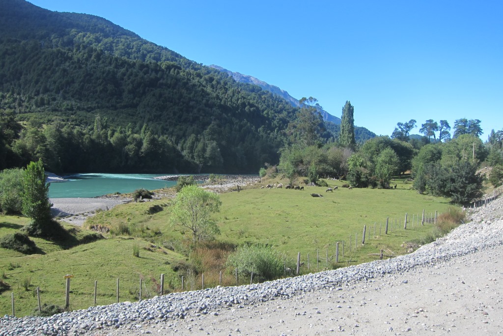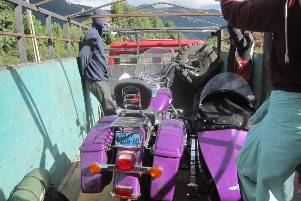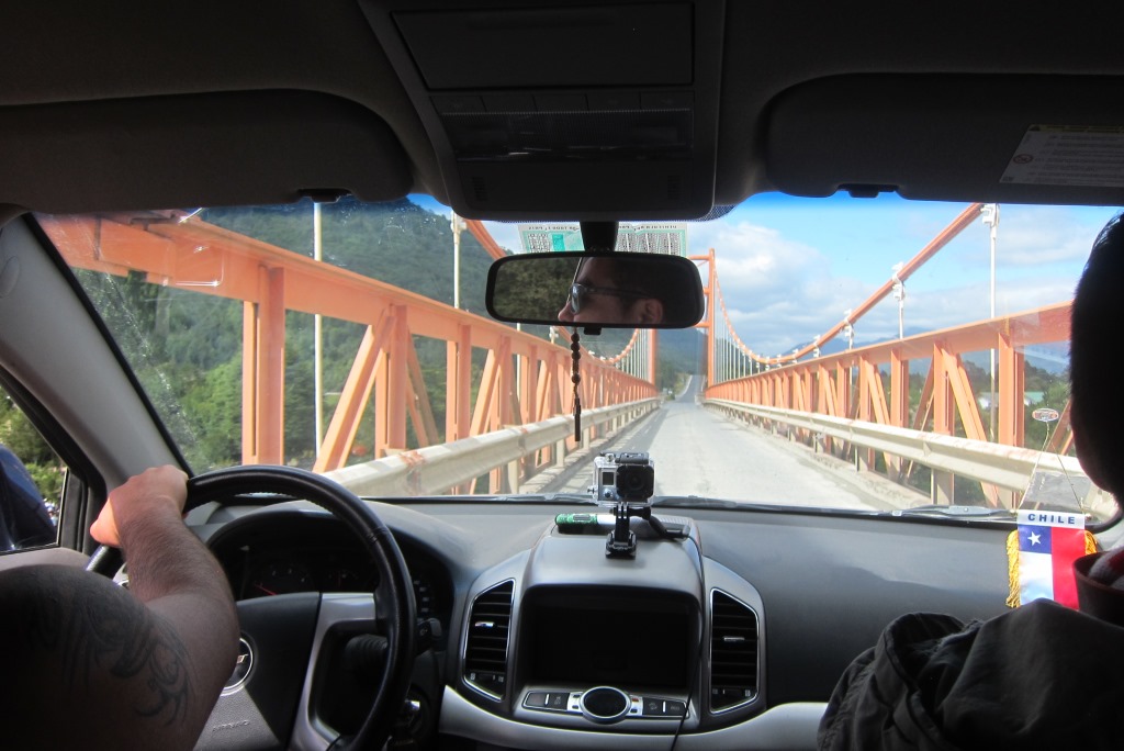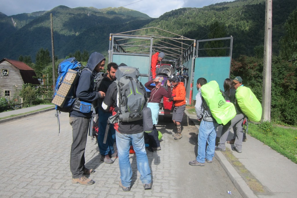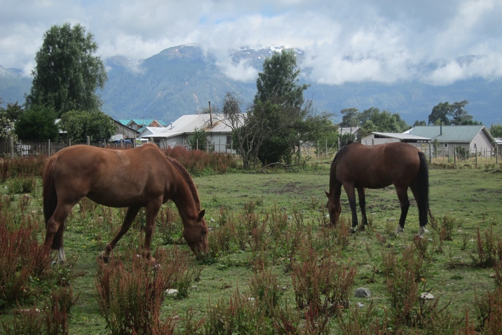 Lēnām tuvojas laiks, kad atvērs ceļu un, noskatījuši labu vietu stopēšanai, apsēžamies pagaidīt – šodien ar visu smago somu esmu nostaigājusi kilometrus desmit un jūtos sagurusi. Jā, ceļš ir vaļā un mašīnu kolonna.. priecīgi brauc mums garām. Kad tā beidzas, nopūšamies un veļam atkal somas plecos – būs vien jākāto tālāk. Pag, tur nāk vēl dažas mašīnas. Pēdējā no tām apstājas un mēs tiekam ielādēti smagā piekabē. Kopumā tās saturs izskatās šādi: kaudze ar mugursomām, astoņi stopētāji, divi velosipēdi un Harley Davidson motocikls ar blakusvāģi – diezgan jautra kompānija. Šis auto mūs aizvizina līdz vietai ar nosaukumu, kuru nekādi nevaru atcerēties – Puyuhuapi. Angļu pāris ir nolēmis nakšņot šeit un, tā kā jau ir seši vakarā, un aiz muguras septiņas noķertas mašīnas, nolemju arī es mest mieru, esmu nonākusi ļoti tuvu nacionālajam parkam, kuru vēlos apmeklēt. Atrodam mīlīgu, mājas pagalmā iekārtotu kempingu – tajā var tikt pat pie karstas dušas un elektrības kontaktiem.