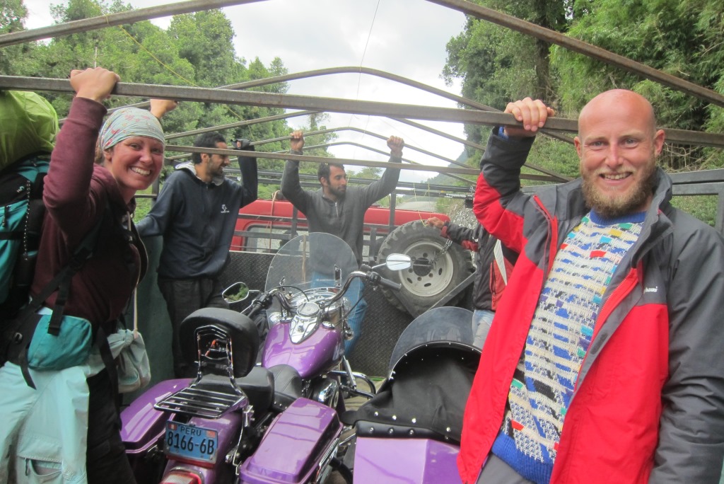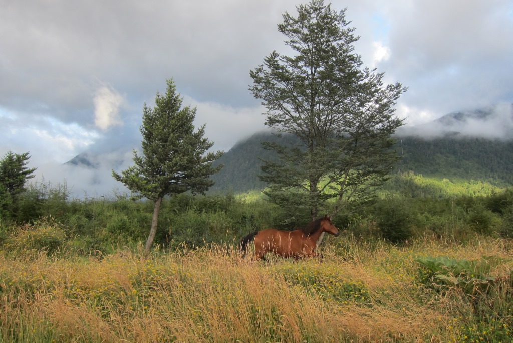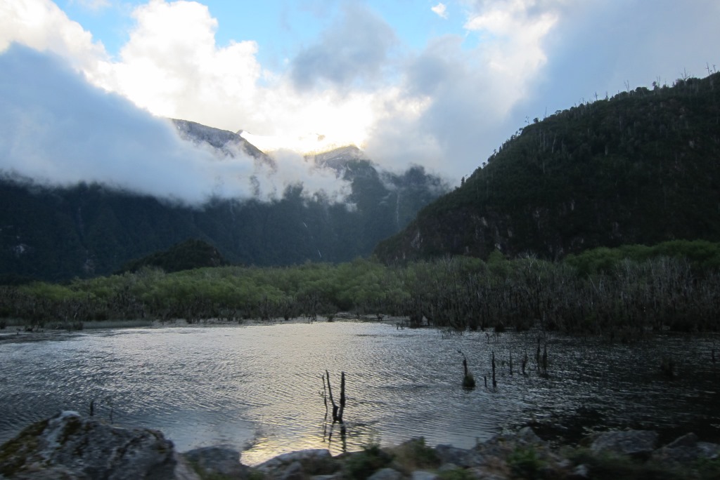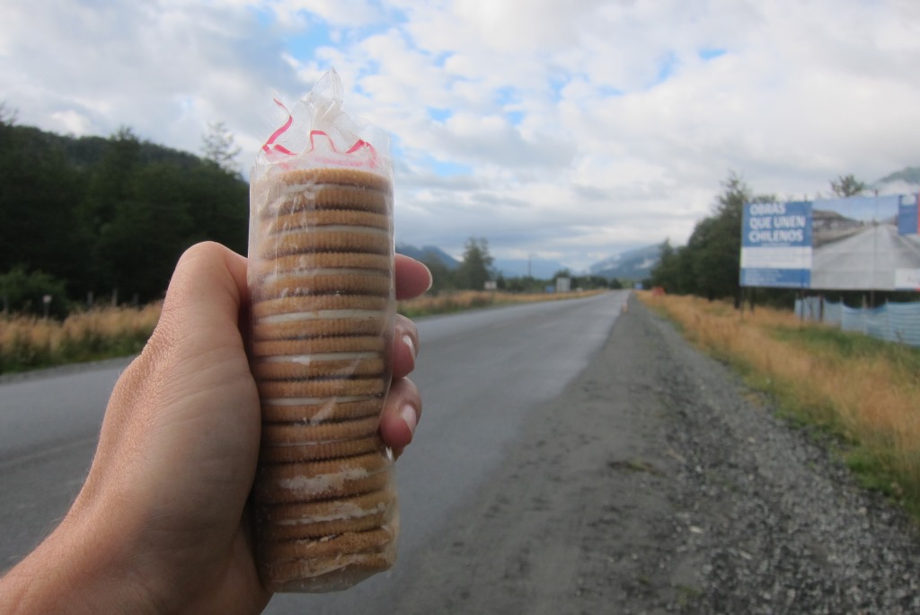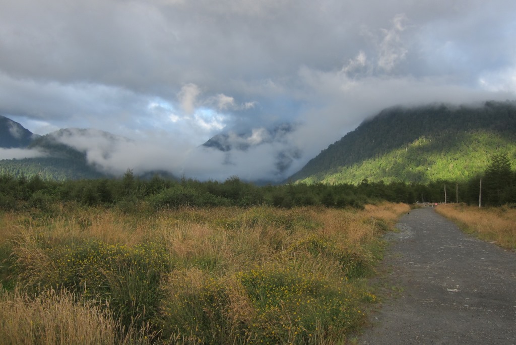 Lēnām tuvojas laiks, kad atvērs ceļu un, noskatījuši labu vietu stopēšanai, apsēžamies pagaidīt – šodien ar visu smago somu esmu nostaigājusi kilometrus desmit un jūtos sagurusi. Jā, ceļš ir vaļā un mašīnu kolonna.. priecīgi brauc mums garām. Kad tā beidzas, nopūšamies un veļam atkal somas plecos – būs vien jākāto tālāk. Pag, tur nāk vēl dažas mašīnas. Pēdējā no tām apstājas un mēs tiekam ielādēti smagā piekabē. Kopumā tās saturs izskatās šādi: kaudze ar mugursomām, astoņi stopētāji, divi velosipēdi un Harley Davidson motocikls ar blakusvāģi – diezgan jautra kompānija. Šis auto mūs aizvizina līdz vietai ar nosaukumu, kuru nekādi nevaru atcerēties – Puyuhuapi. Angļu pāris ir nolēmis nakšņot šeit un, tā kā jau ir seši vakarā, un aiz muguras septiņas noķertas mašīnas, nolemju arī es mest mieru, esmu nonākusi ļoti tuvu nacionālajam parkam, kuru vēlos apmeklēt. Atrodam mīlīgu, mājas pagalmā iekārtotu kempingu – tajā var tikt pat pie karstas dušas un elektrības kontaktiem.