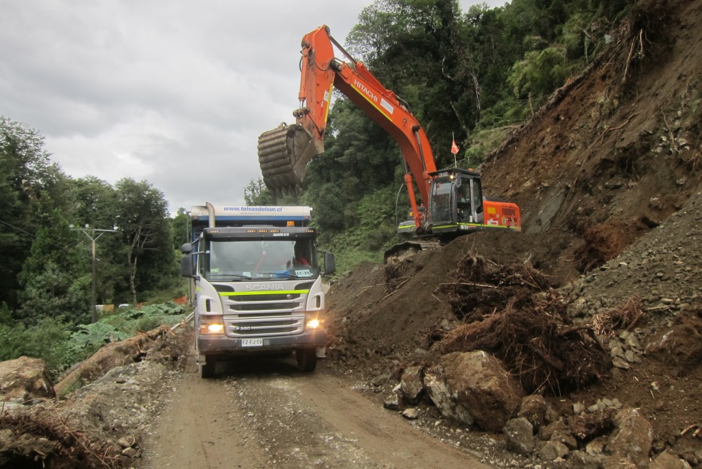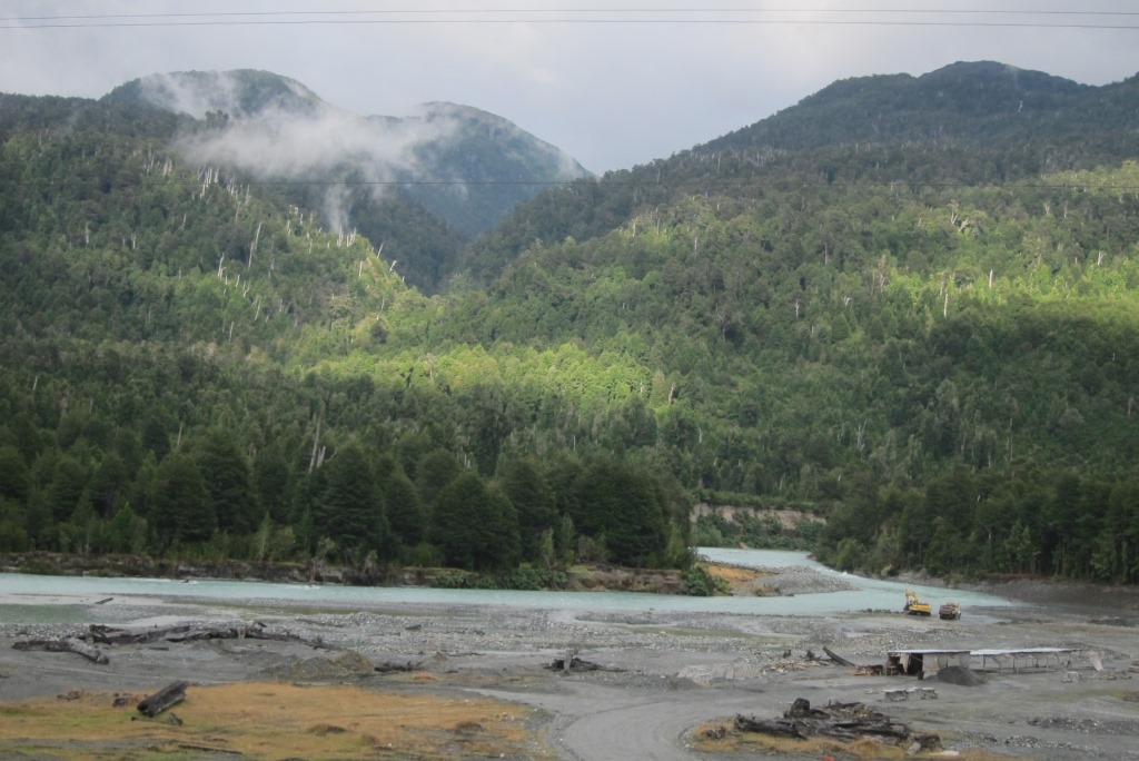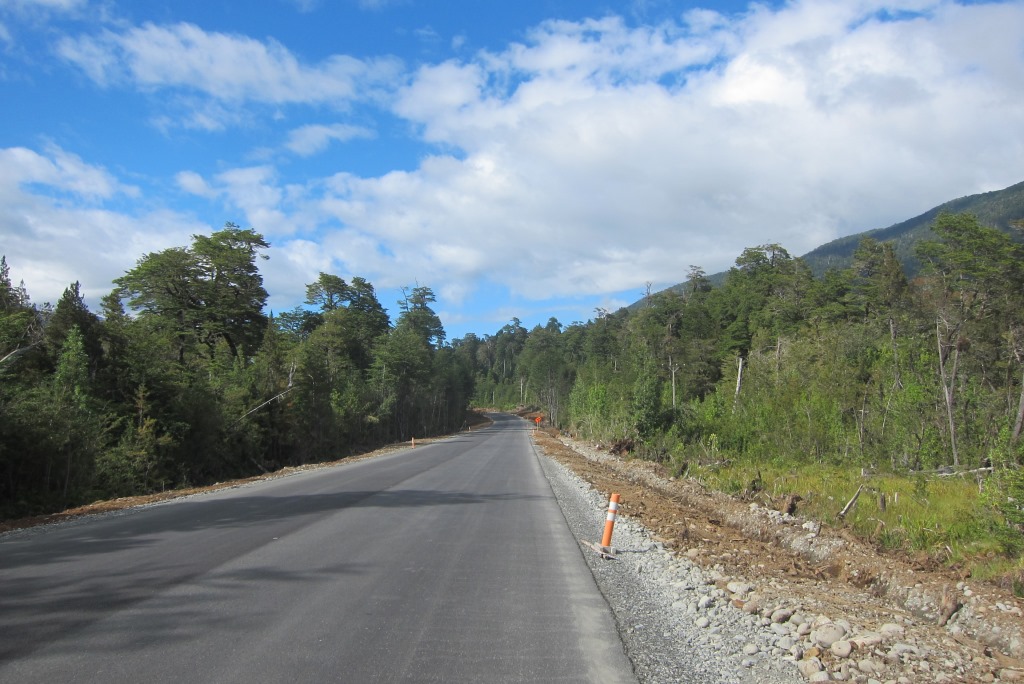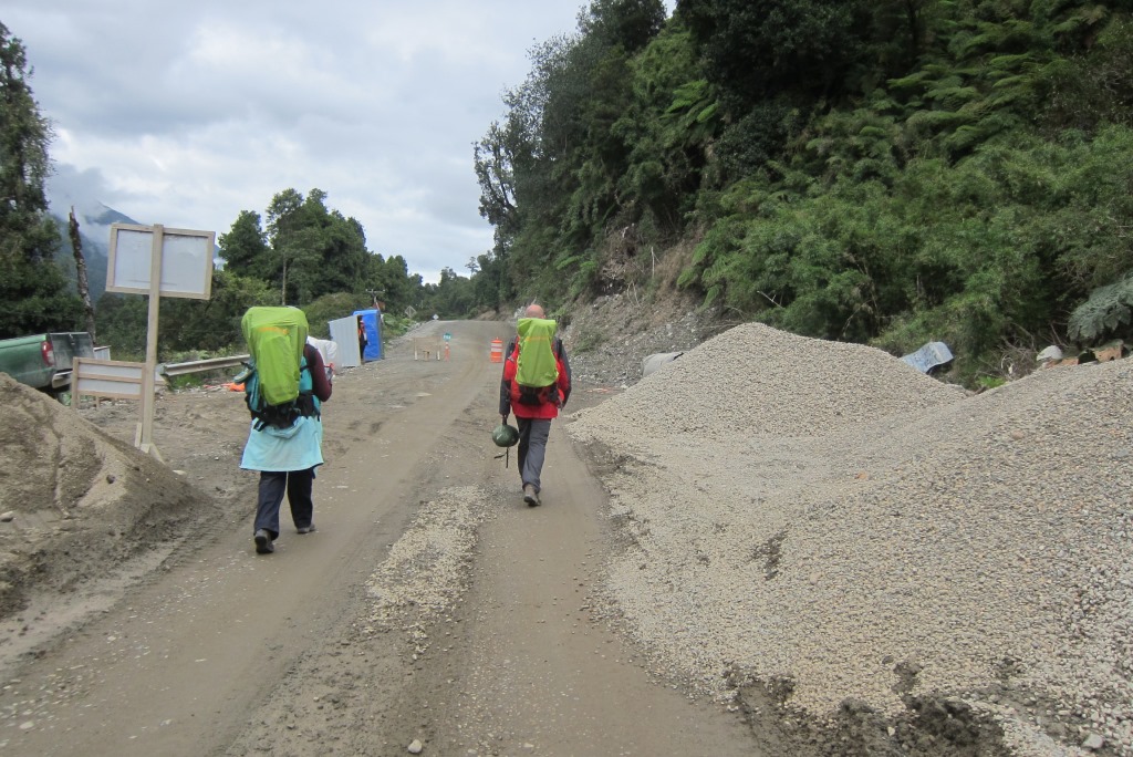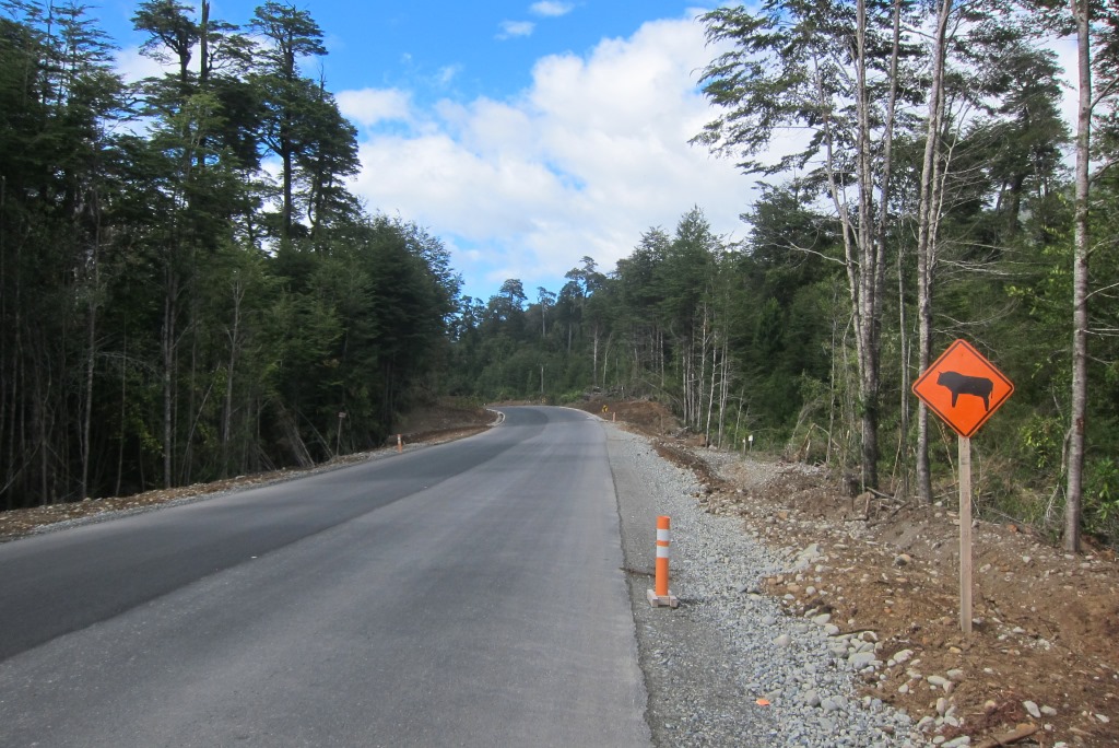 Pēc pusotras stundas brauciena esam nonākuši Santa Lucia ciematā, kur mūsu ceļi šķiras. Uz atvadām debesis uzzīmē vēl vienu varavīksni. Pateicos Sergio, atvados un dodos uz slavenā ceļa Carretera Austral sākumu. Tas gan nav tik dzīvības pilns, kā biju iztēlojusies. Aizbrauc labi ja viens auto desmit minūtēs un pagaidām visi šoferi rāda, ka mēros „mazu ceļa gabaliņu”. Pamanu, ka auto kustība notiek pārsimts metrus tālāk, kur mašīnas griežas iekšā un ārā no kāda ceļa būves uzņēmuma, un dodos ķert auto uz turieni.