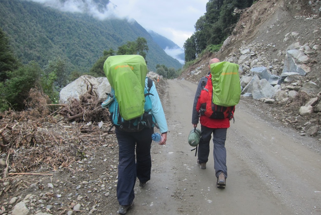 Saprotam, ka tuvākajā laikā mums neviena mašīna „nespīd” un sākam iet uz priekšu kājām. Visi strādnieki mūs priecīgi sveicina, viens pat uz mirkli aptur darbus, lai mēs varētu tikt garām. Katrā ziņā ir interesanti un esam priecīgi, ka mums ir nevis jānīkst auto rindā vai ceļa malā, bet varam izbaudīt šo mazo piedzīvojumu.