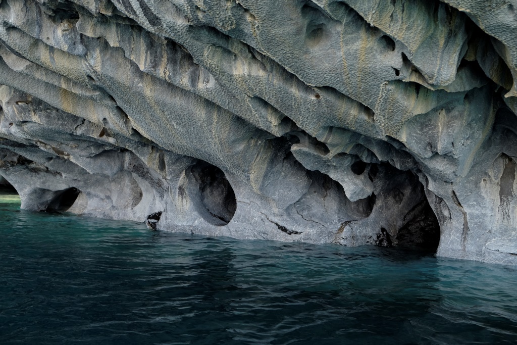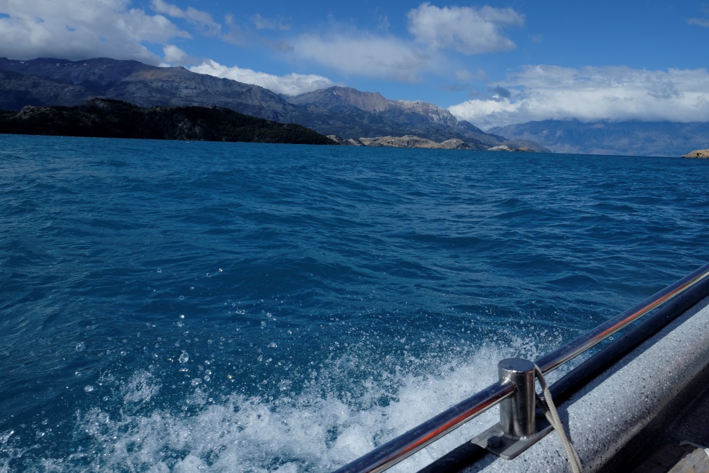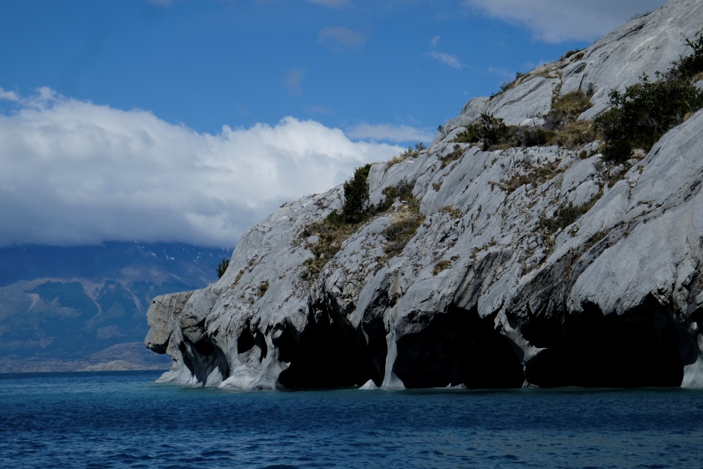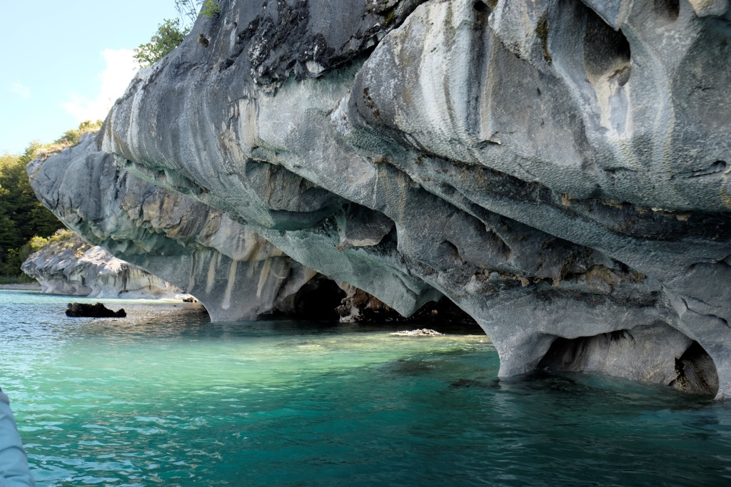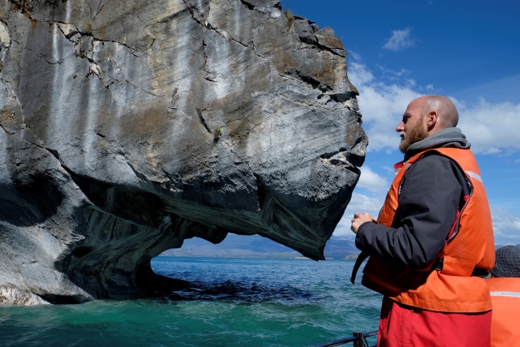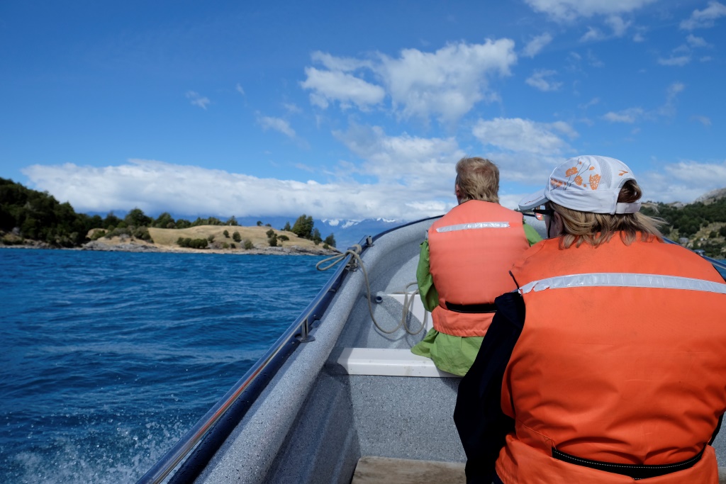 Šejienes galvenā tūristu atrakcija ir marmora alu apskate – tas notiek ar laivu piebraucot pie alām no ūdens puses. Lietus un miglas dēļ ekskursijas uz laiku bija pārtrauktas, bet tagad redzam, ka viena pēc otras ezerā parādās motorlaivas. Arī mēs ejam uz pilsētu, lai atrastu laivu, kas mūs aizvedīs līdz alām. Cena visiem kantoriem ir vienāda, 8000 peso (ap 13 USD), tāpēc izvēlamies ekskursiju, kas dodas ceļā visātrāk. Meitene aicina mani atstāt mugursomu tepat, dažreiz izbraucieni mēdzot būt diezgan slapji. Somu neatstāju, bet datoru ar vadiem gan – to man negribas samērcēt.