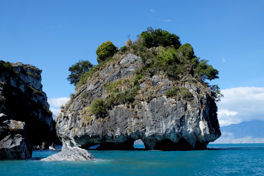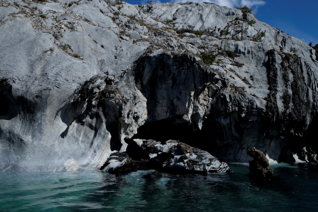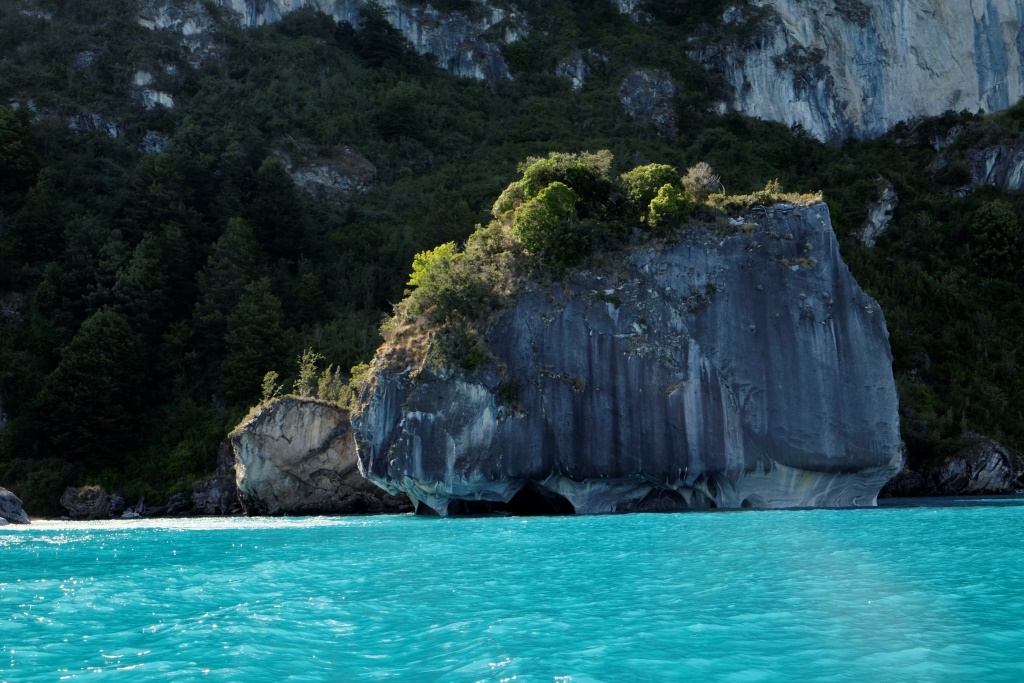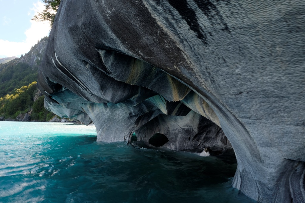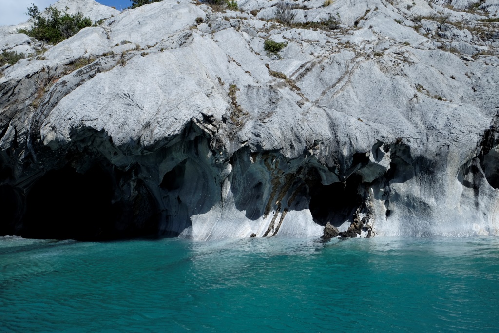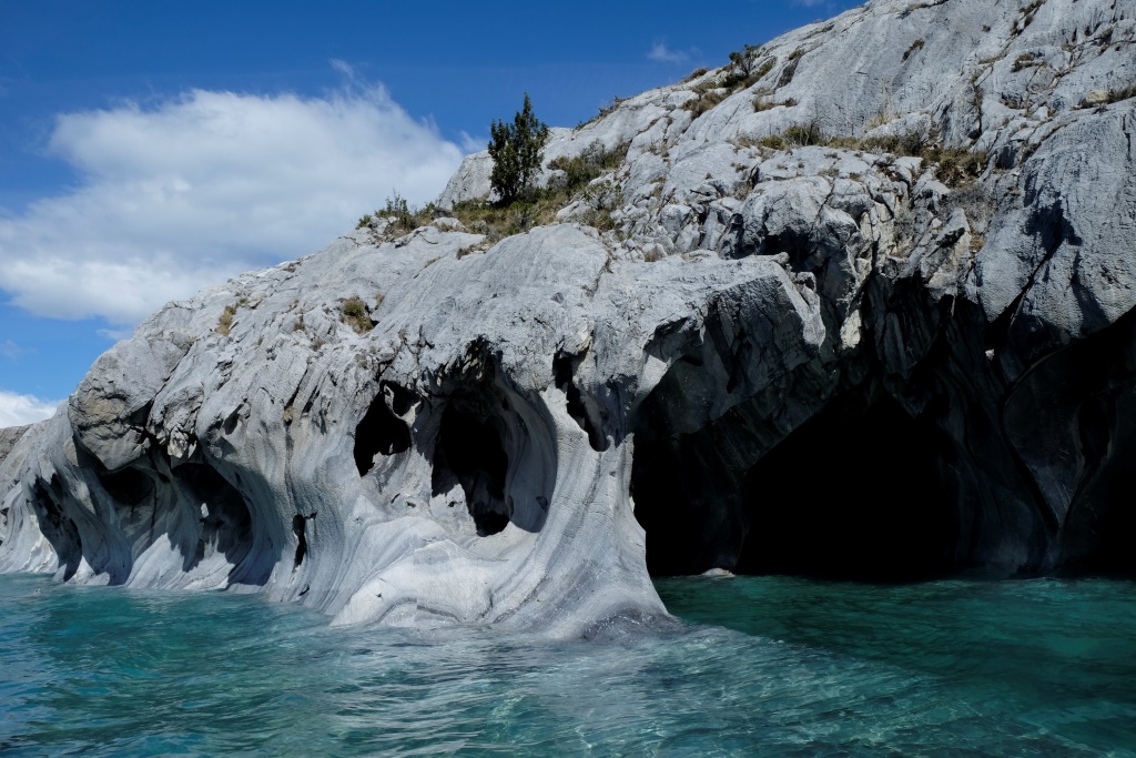 Šejienes galvenā tūristu atrakcija ir marmora alu apskate – tas notiek ar laivu piebraucot pie alām no ūdens puses. Lietus un miglas dēļ ekskursijas uz laiku bija pārtrauktas, bet tagad redzam, ka viena pēc otras ezerā parādās motorlaivas. Arī mēs ejam uz pilsētu, lai atrastu laivu, kas mūs aizvedīs līdz alām. Cena visiem kantoriem ir vienāda, 8000 peso (ap 13 USD), tāpēc izvēlamies ekskursiju, kas dodas ceļā visātrāk. Meitene aicina mani atstāt mugursomu tepat, dažreiz izbraucieni mēdzot būt diezgan slapji. Somu neatstāju, bet datoru ar vadiem gan – to man negribas samērcēt.