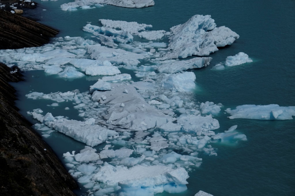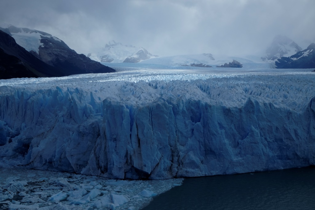 Sākumā biju domājusi, ka esmu nodrošinājusi transportu uz ledāju vienā virzienā, bet, tā kā esam norunājuši ceļot kopā arī rīt, šodien klīstam gar ledāju kopā. Salīdzinoši ar šo milzi, līdz šim redzētās ledus upes šķiet vien tādi ledāja bērniņi. Pēcpusdienas saule ir pieķērusies ledus smailēm un ik pa laikam atdalās un ūdenī ieplunkšķ kāds neliels gabaliņš. Nezinu, kas man liek uzstādīt filmēšanas režīmu, bet ar dažu minūšu starpību izdodas fiksēt video „globālo sasilšanu” – viens pēc otra ūdenī pazūd divi apjomīgi ledus kalni. Te pirmais video.