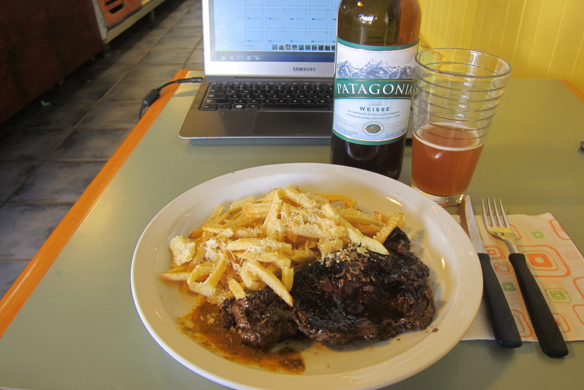Esmu arī novērojusi, ka nomāktu garastāvokli mēdz kliedēt labs ēdiens un kauss alus, tāpēc, nevarēdama pasākt neko labāku, metos pārtikas mierinājumā. Tas palīdz – pēc vakariņām nekas nav atrisinājies, bet situācija mani vairs tā nesatrauc. Nolemju rīt doties apskatīt Lielo Ledāju, kas atrodas 80 km attālumā, bet parīt doties uz Torres del Paine nacionālo parku, ko visi slavē kā īpaši skaistu esam. Pēc tam man jāizdomā, kā tikt līdz zemes malai – Ushuaia, lidmašīna ir mazliet dārgāka nekā autobuss, bet, protams, ātrāka. Ar autobusu toties var vairāk redzēt. Kārtējā dilemma, bet „par to es padomāšu rīt”.