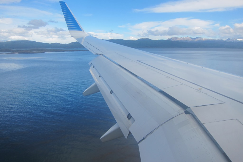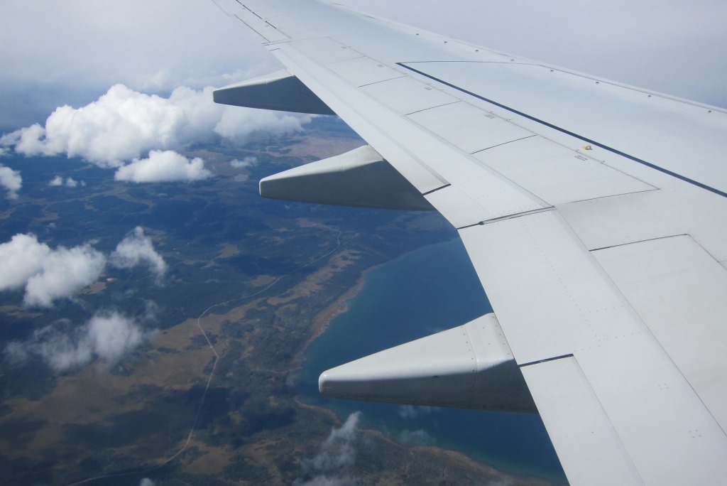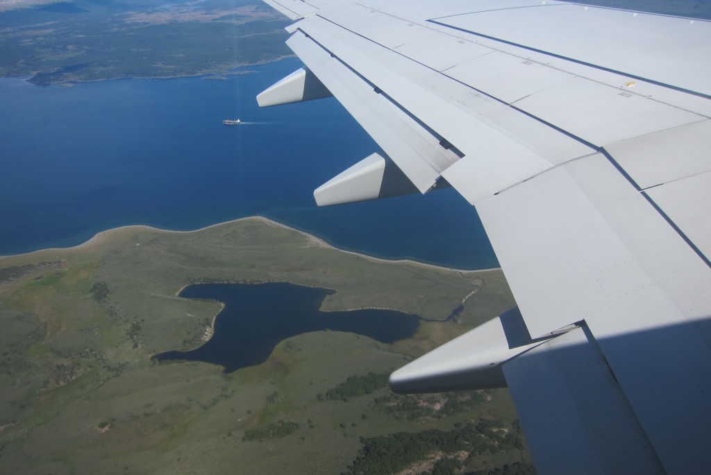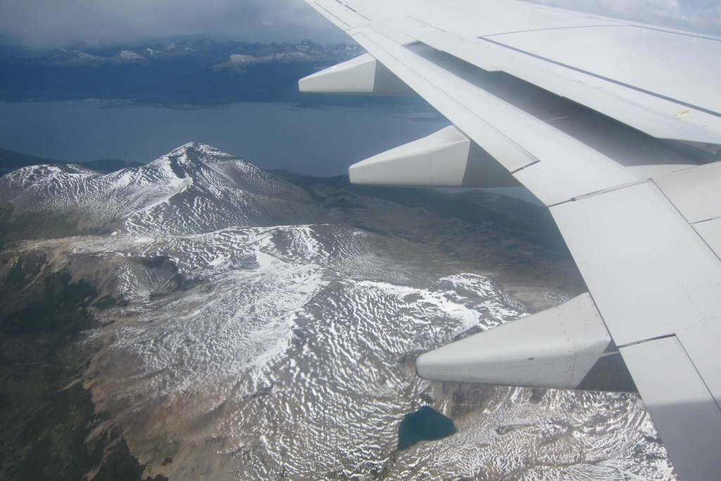 Izguļos, paēdu lēnas brokastis un tad pa dārgo braucu uz lidostu – ar taksi. Autobusā visas vietas bija aizņemtas, ar kājām neaiziesi, stopēt un riskēt nokavēt lidmašīnu negribas. Ir jocīga sajūta atkal būt lidostā pēc tik ilgas pārvietošanās pa sauszemi. Bet šeit viss norit kā pa diedziņu – check-in, drošības kontrole, īss brīdis internetam, iekāpšana, paceļamies. Patagonija ir skaista arī no mākoņu skatu punkta – īpaši kalni, kurus kāds šeit izgreznojis ar sniega pūdercukuru. Man ir dažas lidmašīnas „dungādziesmiņas”, priecīgas un mazāk priecīgas. Šodien prāts un ēnas vedina bēdīgo virzienā, dungoju Coju: