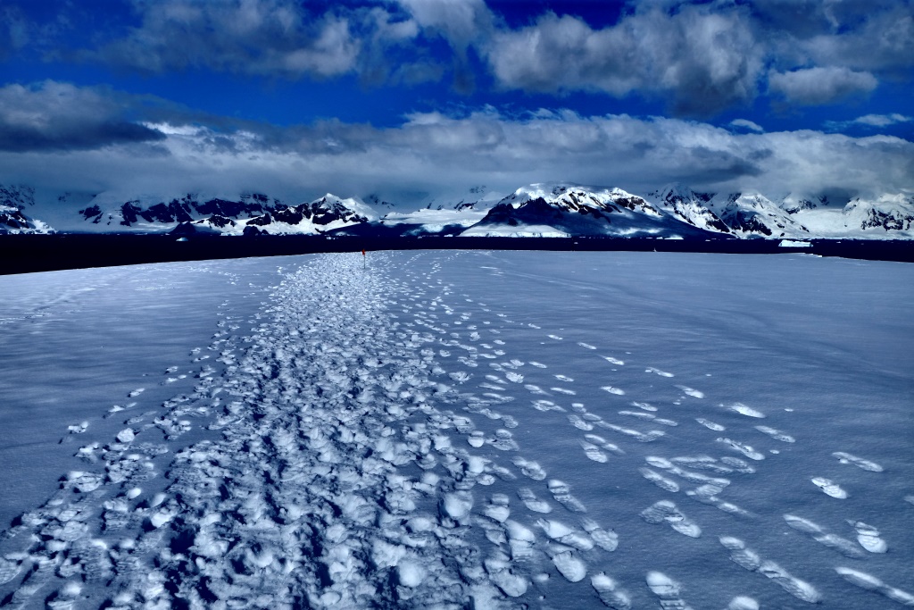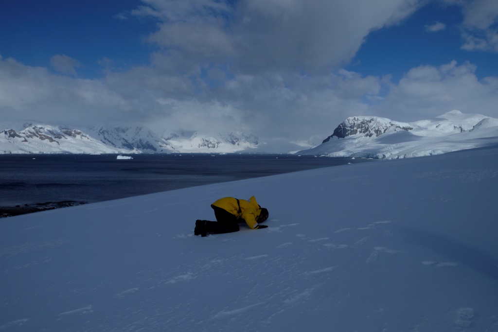 Pēcpusdienas pārgājiens ir pasakains. Vējš ir pierimis un devis vietu saulei, kas sniega laukus padara vēl baltāk mirdzošus – pat nedomā pārvietoties bez saulesbrillēm! Esmu mazliet attapusies no Antarktīdas pārsteiguma un gatava uzdevumu izpildei.