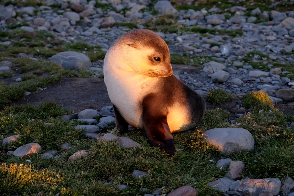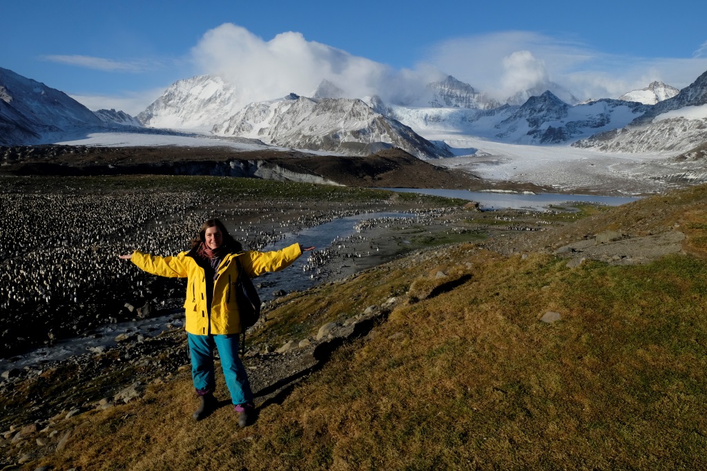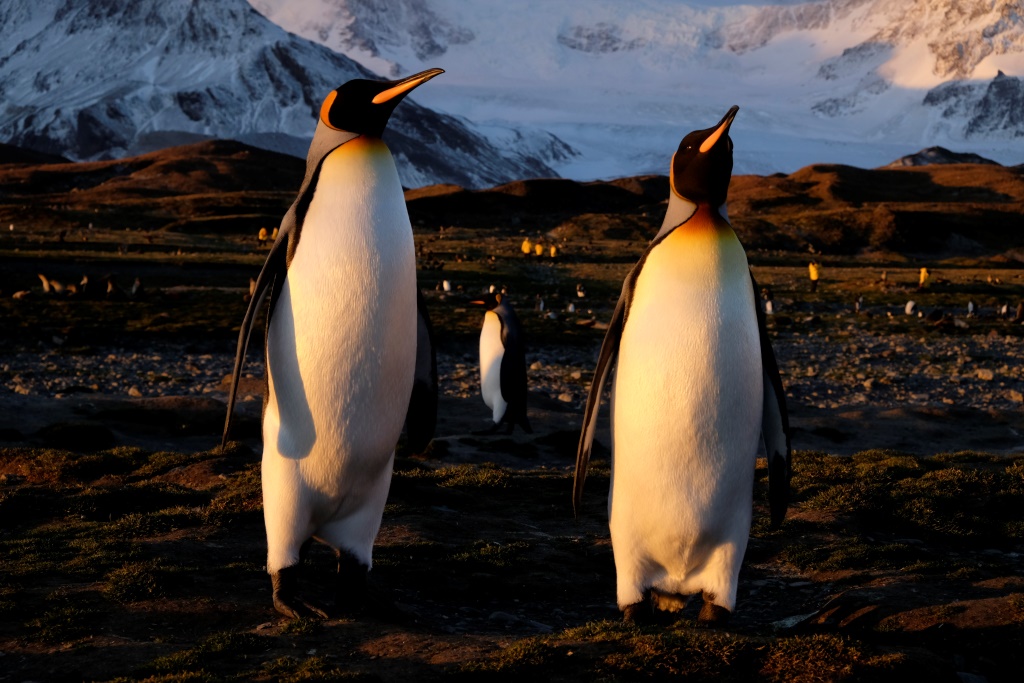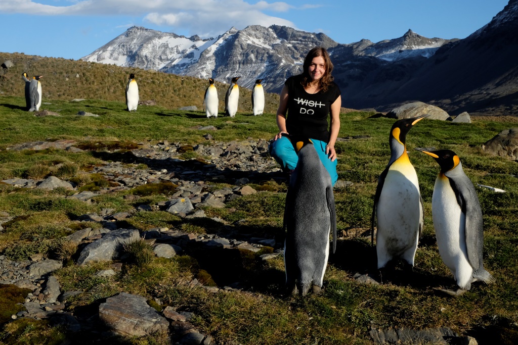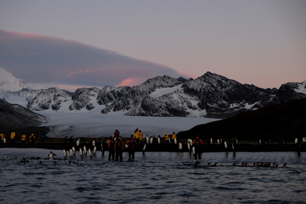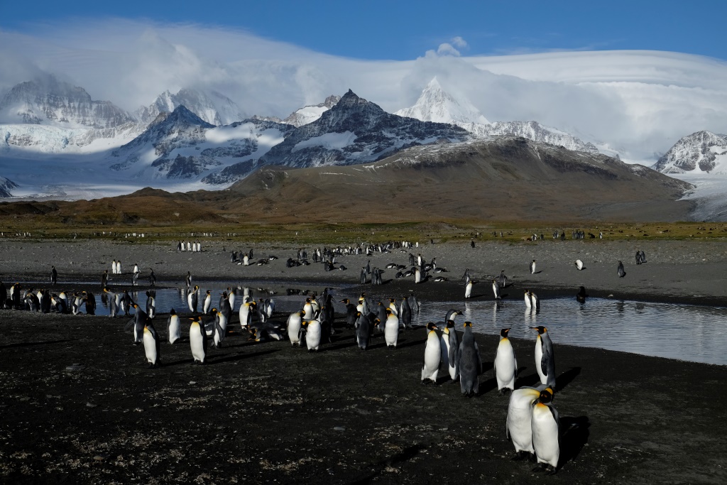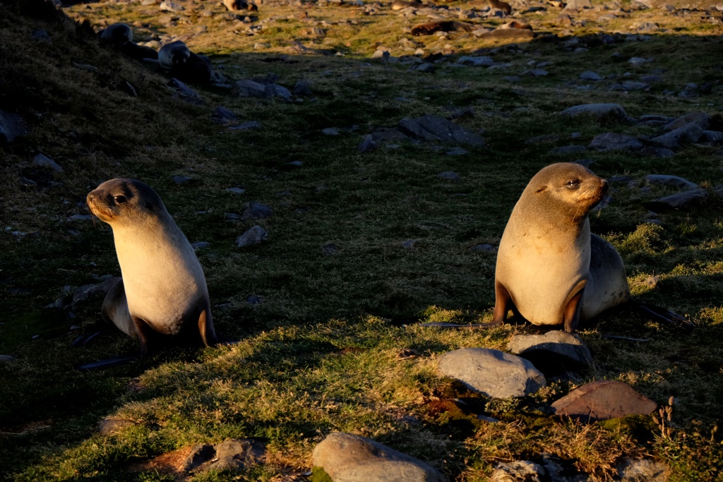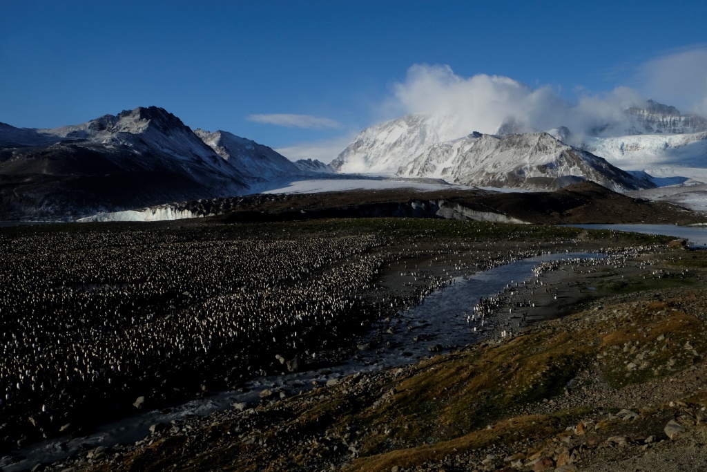 Pa roņiem pilnu pļavu dodamies pingvīnu kolonijas virzienā. Pirms ieraugām pašus putnus, dzirdam skaņu – izklausās it kā mēs tuvotos milzīgam bišu stropam. Kad uzkāpjam kalnā, ieraugām pašus putnus – mūsu skatam paveras neticams pingvīnu daudzums. Mums nav skaidrs, kā pingvīnvecākiem pēc medībām jūrā iespējams šajā troksnī un barā atrast tieši savu mazuli, lai viņu pabarotu.
