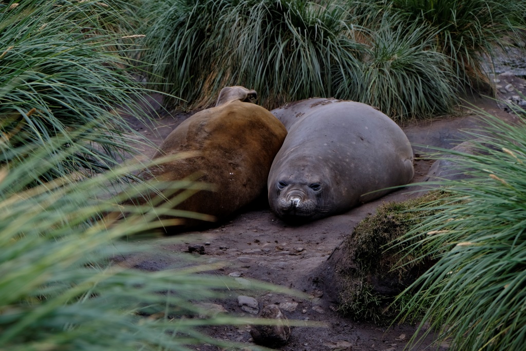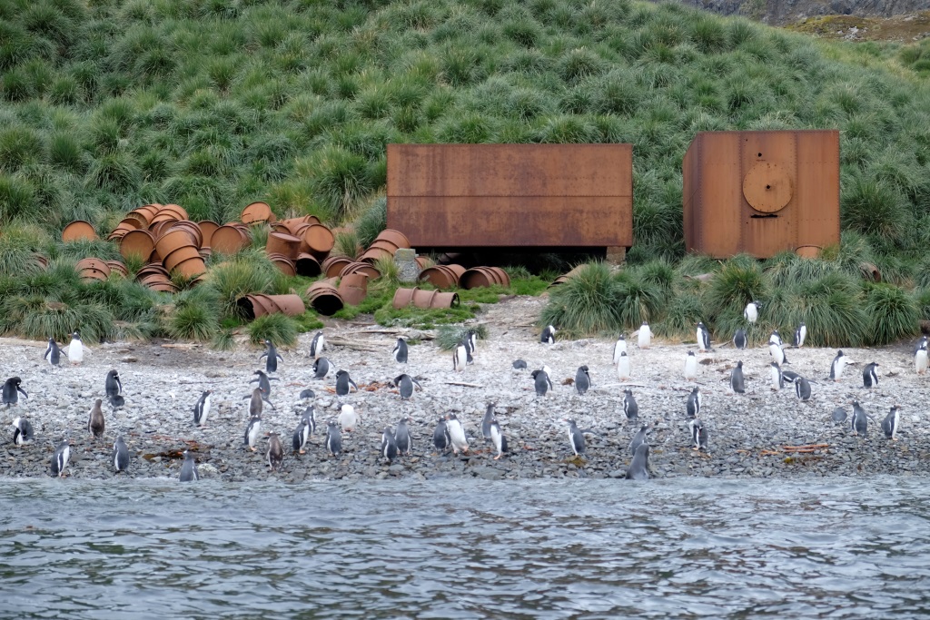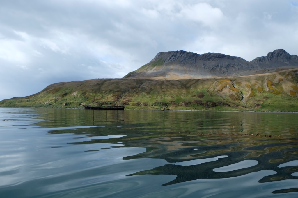 Mūsu nākamā dienas atrakcija ir izbrauciens ar zodiakiem pa neticami mierīgu ūdeni, šeit pat kajaki dabū izskrieties, kas esot liels retums pie Dienviddžordžijas krastiem. Apskatām līcī sašķiebušos vaļu mednieku kuģa vraku, kas tagad tapis par mājām ligzdojošiem putniem, fabrikas ēku karkasus krastā un roņus, arī šeit viņu netrūkst.