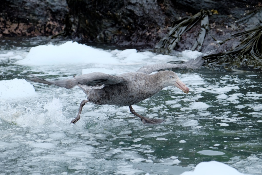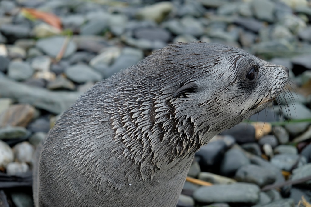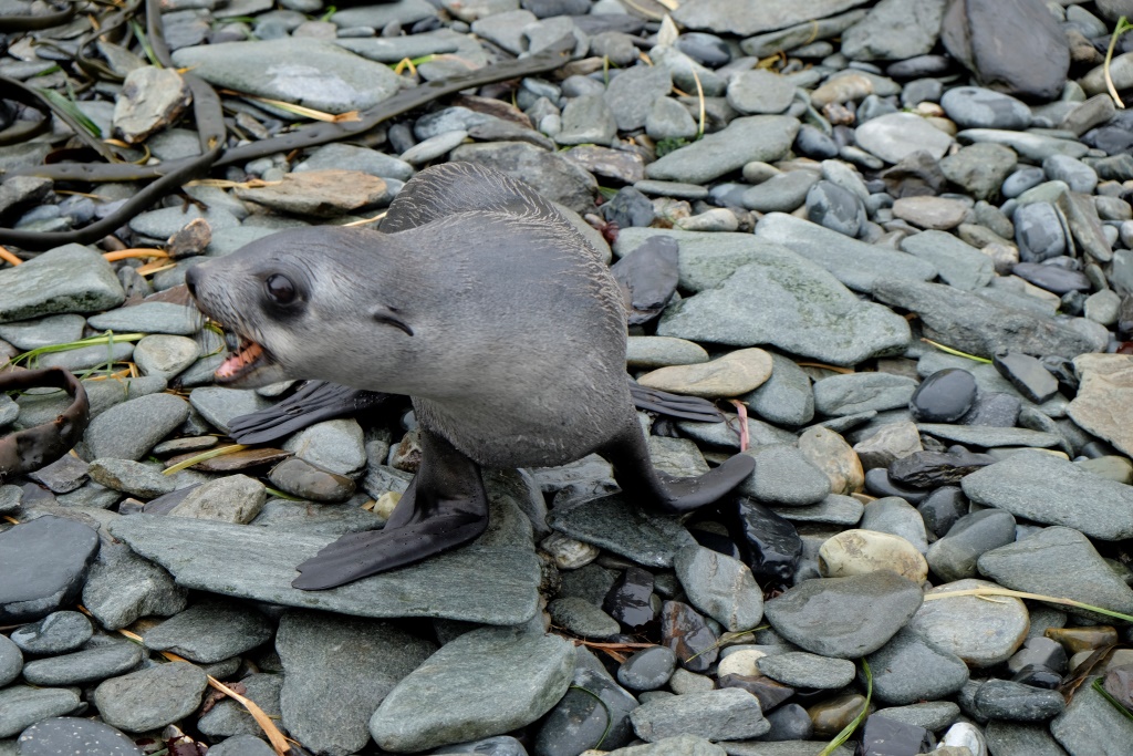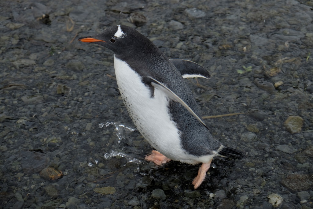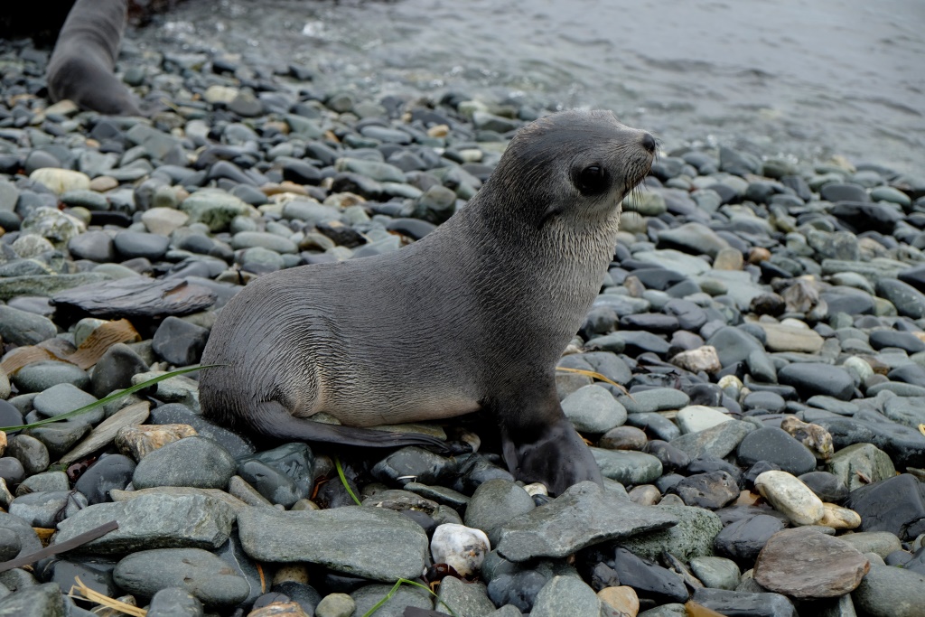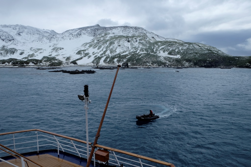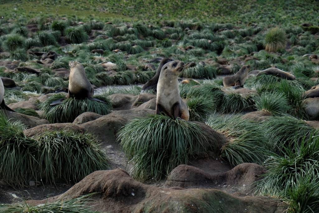 Mūsu pirmā piezemēšanās Dienviddžordžijas salā ir mazā līcī, kur satiekam roņus un jau pazīstamos džentū pingvīnus. Pēc tam tiekam vizināti zodiakos un mums ir iespēja apskatīt zeltcekula pingvīnus – šī ir vienīgā vieta mūsu ceļojumā, kur varam satikt šo pingvīnu sugu. Šodien jūra viļņojas ne pa jokam un klinšu malās augošās ūdenszāles kustas kā biezi mati uz troļļu galvas. Vienā no līčiem braucam cauri roņu baram – viņu ir tik daudz, viss ūdens ņudz kā zupas katls, krastā sēž arī balts albīnronītis.