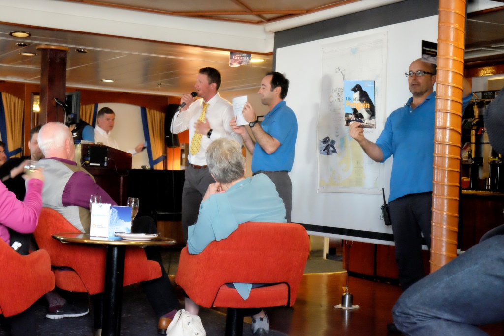 Mums priekšā ir četras garas dienas līdz Buenosairesai, bet Quark komanda, protams, neļauj garlaikoties. Pa dienu turpinās lekcijas, bet, ja es mēģinātu atstāstīt jums tās visas, nāktos iekavēt ierakstus vēl par kādu mēnesi. Bet es tik ļoti gribu atgriezties „reālajā laikā” un rakstīt par „šeit un tagad” notiekošo, tāpēc atļaušos atpakaļceļu ietvert vienā ierakstā un no lekcijām ieskicēšu tikai dažas tēmas, lai jums būtu priekšstats, par ko var uzzināt šajos ceļojumos. Sniegpārsliņu veidošanās un klasifikācija, ledāju uzbūve un pētniecība, aisbergi, kuģa vēsture, ziemeļblāzmas veidošanās, kā noķert astoņkāji, paisums, bēgums un saules aptumsums, vēju veidi, fatamorgānas, migla, mērinstrumenti utt. Atsevišķas lekcijas ekspedīcijas laikā bija par vaļiem, roņiem, pingvīniem, albatrosiem un ko tik vēl. Manas mīļākās, protams, bija par polārajām ekspedīcijām un pētniekiem, tāpēc dažas no tam arī centos atstāstīt.