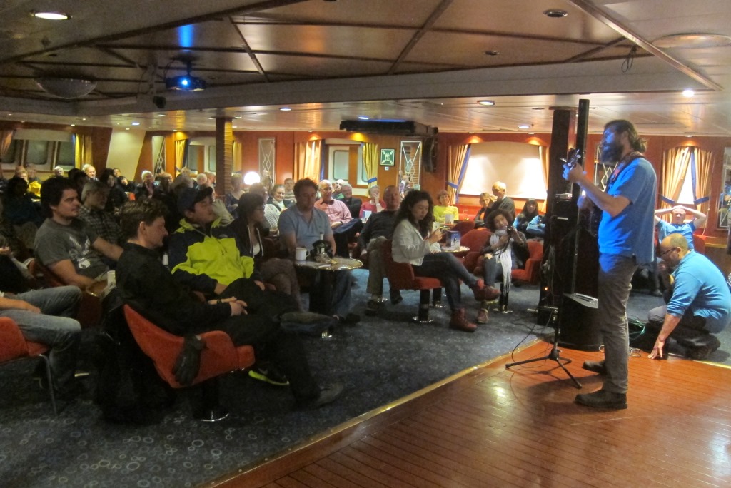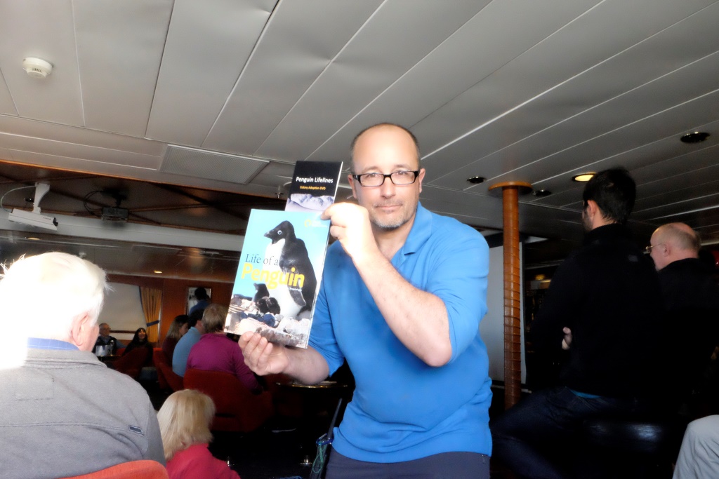Es šajā vakarā neizpaužos, bet pēc pāris dienām tomēr man iznāk stāvēt „uz skatuves” – esmu sarunājusi ar Aleksu, ka varēšu nolasīt pārējiem pasažieriem lekciju par Latviju, jaušībām un manu brīnumaino nonākšanu uz šī kuģa. Es pat nevaru pateikt, kāpēc īsti to daru. Bet, ja man atnāk kāda doma, kas pēc tam naktīs neļauj gulēt, es nevaru rīkoties citādāk, kā vien to piepildīt. Savā ziņā sajūta bija ļoti līdzīga tai, kad piedzima Pingvīns. Esmu diezgan uztraukusies, jo no pārējiem pasažieriem lekciju vēl ir lasījis tikai austālis Kevins – viņš raksta jaunu grāmatu par Ernestu Šekltonu un pāris viņa laika biedriem. Mēs ar Kevinu pavadījām diezgan daudz laika sarunās un varu apgalvot, ka viņa zināšanas ir tik plašas, ka viņš droši varētu ieņemt Lorija vēsturnieka posteni, jo Lorijam šis ir pēdējais brauciens pirms došanās pensijā (starp citu, ieteicu to Aleksam). Citiem vārdiem sakot – Kevins ir vienā līgā ar šejienes izcilajiem speciālistiem.