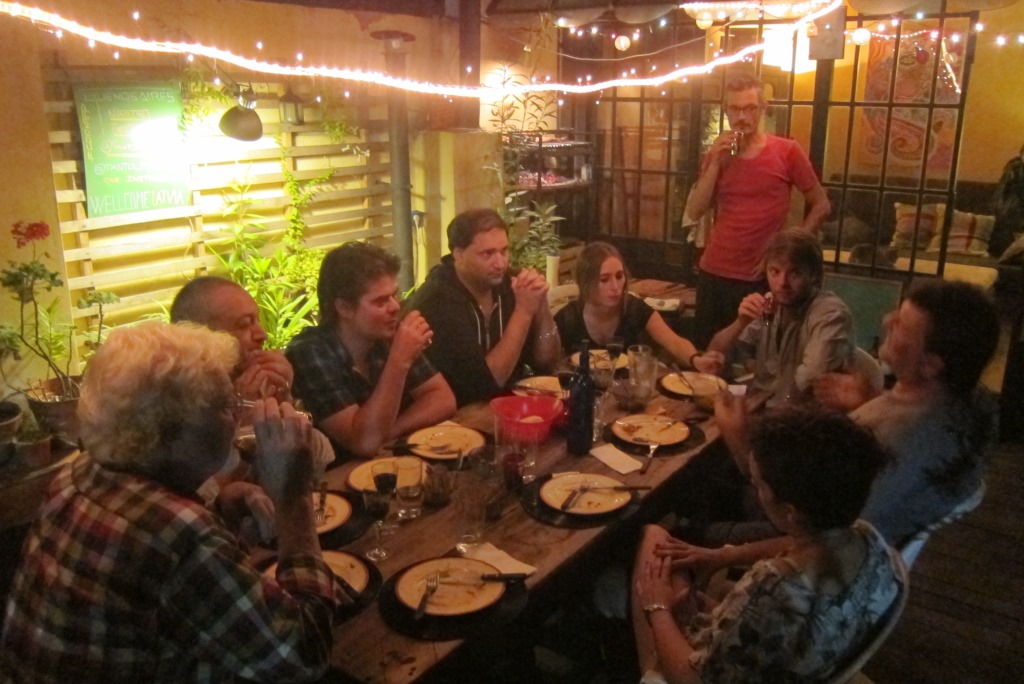 Pāris stundas nošņākusi, ceļos augšā un dodos uz centru. Šovakar esmu sarunājusi atvadu vakariņas. Iniciators bija Dunkans, bet vēlmi pievienoties izteica arī Karims un Rafaēls, tad nu dosimies ieturēties visi kopā. Vērīgs lasītājs atcerēsies puisi Tomu no Buenosairesas un viņa sievu, kurus satiku ar nelielu jahtu atgriežoties no Villa Angostura apburtā meža. Toma izveidotais uzņēmums Cookapp nodarbojas ar iespēju paēst pie cilvēkiem mājās. Puse no ēst gatavotājiem ir profesionāli pavāri, otra puse – kulinārijas entuziasti. Toma izstrādātā aplikācija palīdz satikties ēst gatavotājiem (kurus viņi pirms tam pārbauda) un izsalkušajiem. Esmu sazinājusies ar Tomu un viņš mums ir rezervējis vietu pie viena no viņaprāt labākajiem Buenosairesas ēst gatavotājiem – Marijas un Manuela.