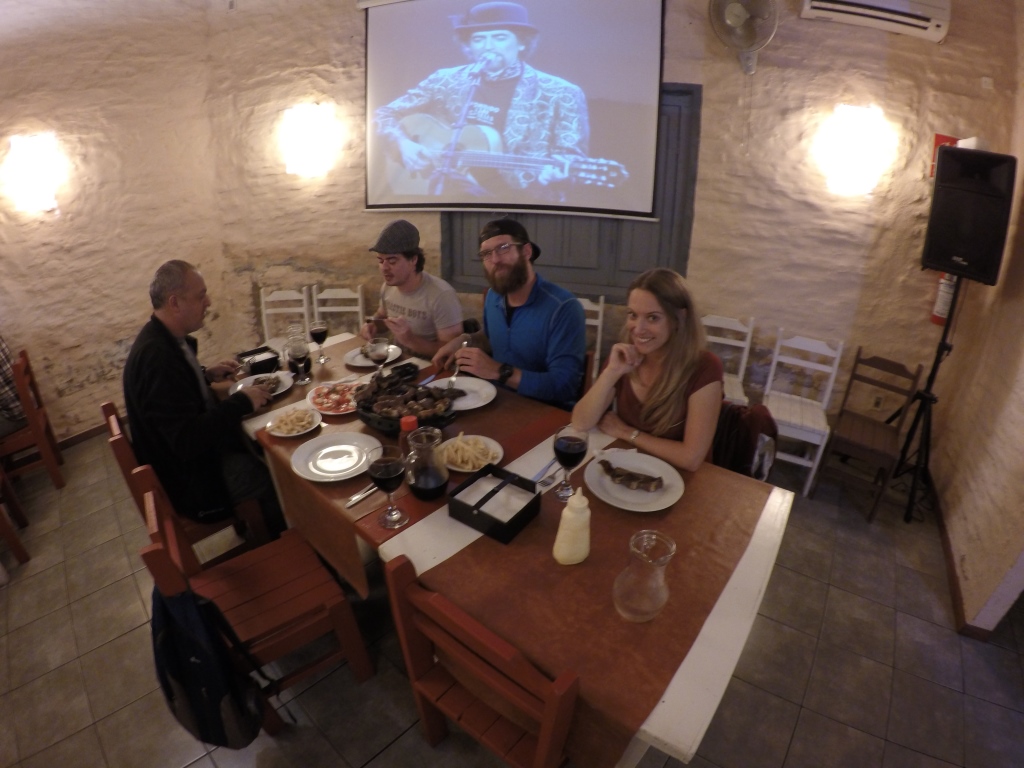 Nolikuši somas, braucam atpakaļ uz pilsētu un dodamies vakariņot uz vietu, ko mums ieteica kā labāko pilsētā. Un tā ir lieliska – pasūtām visi kopā grila pannu. Kad mums to atnes, noelšamies – maltīte izskatās lieliski. Tur ir ne tikai gaļa, bet arī dažādi subprodukti un desu veidi, tai skaitā mums tik pazīstamā asinsdesa. Man gan mūsējā iet pie dūšas labāk, bet arī šai nav ne vainas.