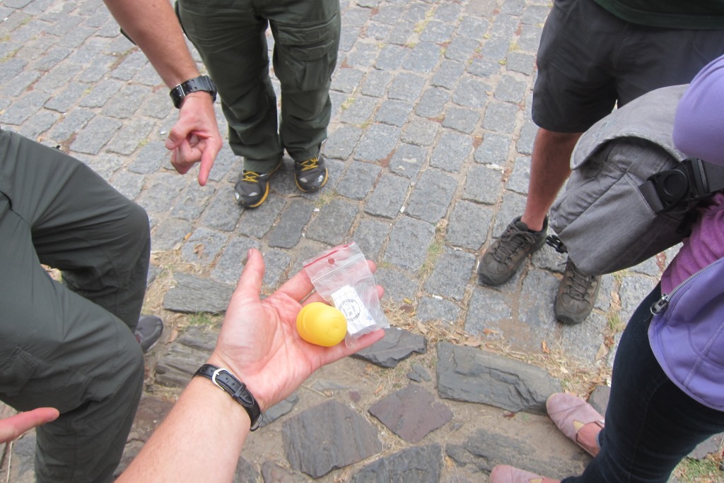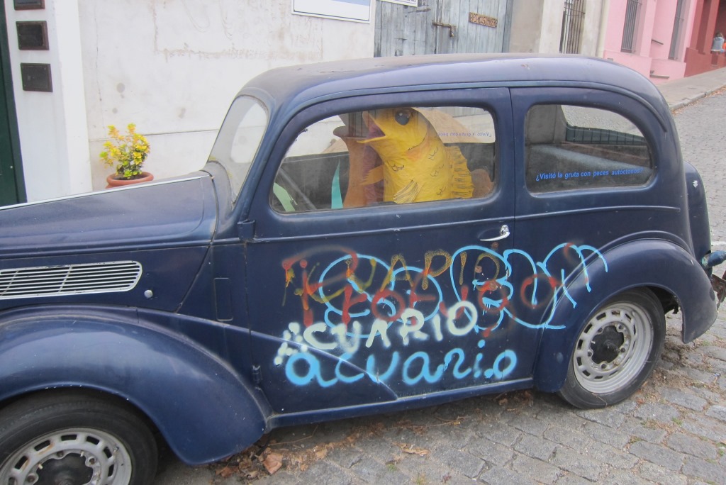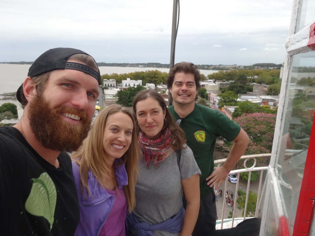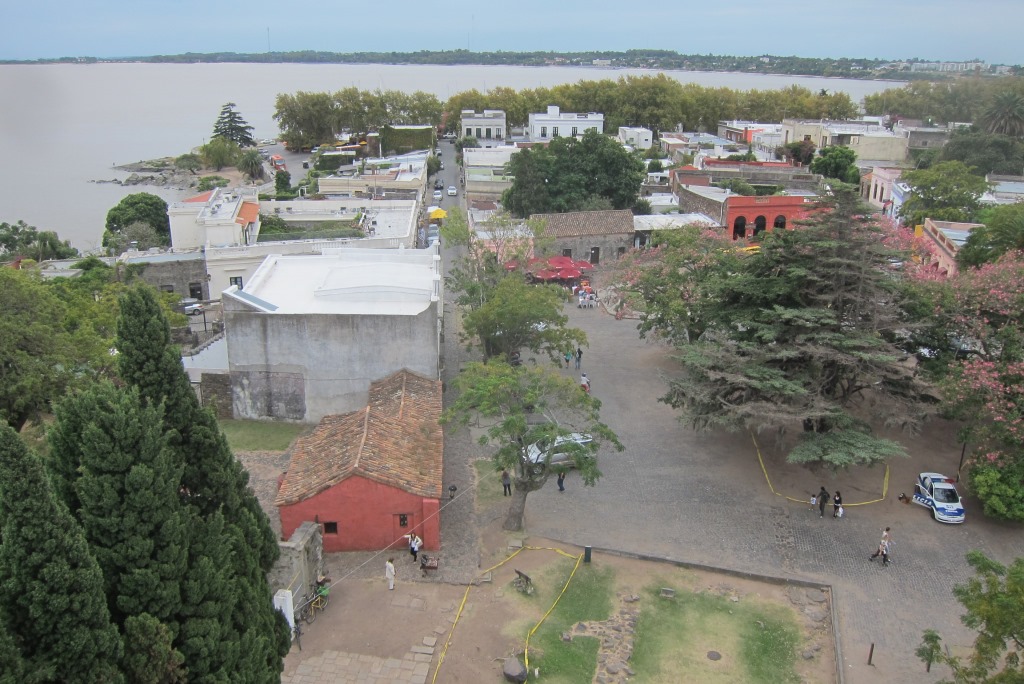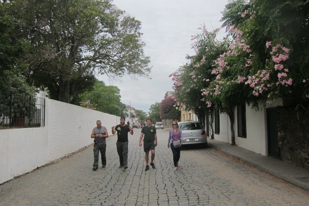 Iekārtojušies hostelī, ejam uz bankomātu pēc vietējās naudas – 1 USD dolārs ir aptuveni 25 Urugvajas peso, atkal jāpārstellē smadzenes un citu naudas vērtību. Tad dodamies apskatīt pilsētu – tās vecpilsēta ir pavisam neliela, izstaigājam senās ieliņas krustu šķērsu. Uzkāpjam arī augšā bākā un aplūkojam pilsētiņu no augšas. Gribu arī „atzīmēties” Urugvajā un atrast pirmo slēpni. Tam jābūt noslēptam senā mūrī, esmu ielūkojusies teju katrā šķirbā, bet slēpnis nedodas rokā. Ceļabiedri man aktīvi palīdz, bet beigās Rafaēls, kas uz mūsu darbošanos noraugās no malas un attāluma, norāda uz dzeltenu, aizdomīgu priekšmetu. Kā tad, tas ir īstais! Pirmais slēpnis Urugvajā – check!