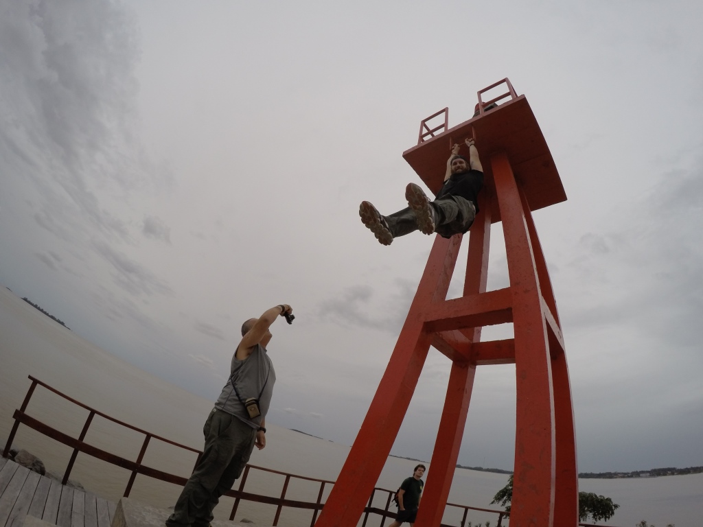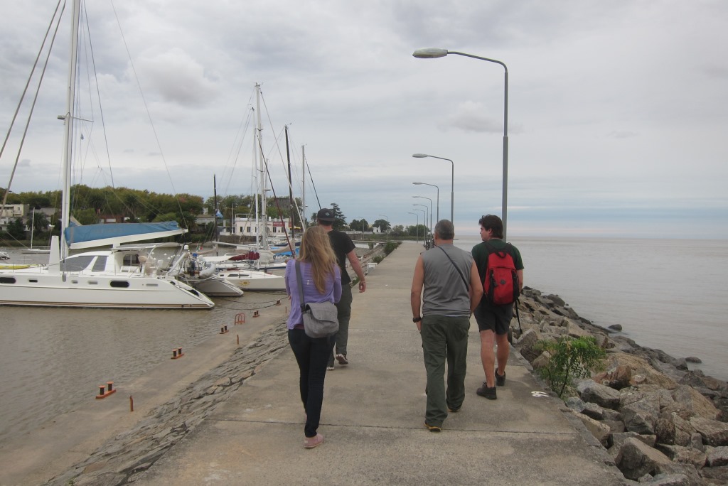 Prāmis uz Urugvaju iet vienu stundu – ārpus telpām iziet nevar un mēs katrs ieslīgtam savos darbos. Pirmo nakti mēs pavadīsim šeit pat, Colonia pilsētā, kurā mūs ir nogādājis prāmis. Pirmais darbs ir atrast hosteli un tikt vaļā no smagajām somām. Mana ir viena no mazākajām un vieglākajām, visiem puišiem ir palielas somas, bet Džeimijai neliels koferis un vesels lērums ar maisiņiem. Koferim ir nolūzuši riteņi un Džeimija pārvietojas ar gana iespaidīgu troksni, šļūcinot sudrabaino kasti pa asfaltu.