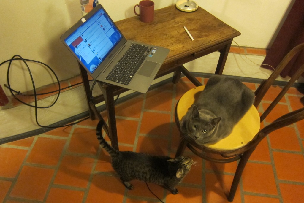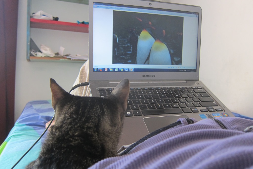 Dienu pirms aizbraukšanas uz Urugvaju, trīs Čārlija kaķi beidzot ir pieņēmuši mani par savējo. Nāk ciemos, mēs kopā šķirojam pingvīnbildes un kravājamies Urugvajas braucienam.