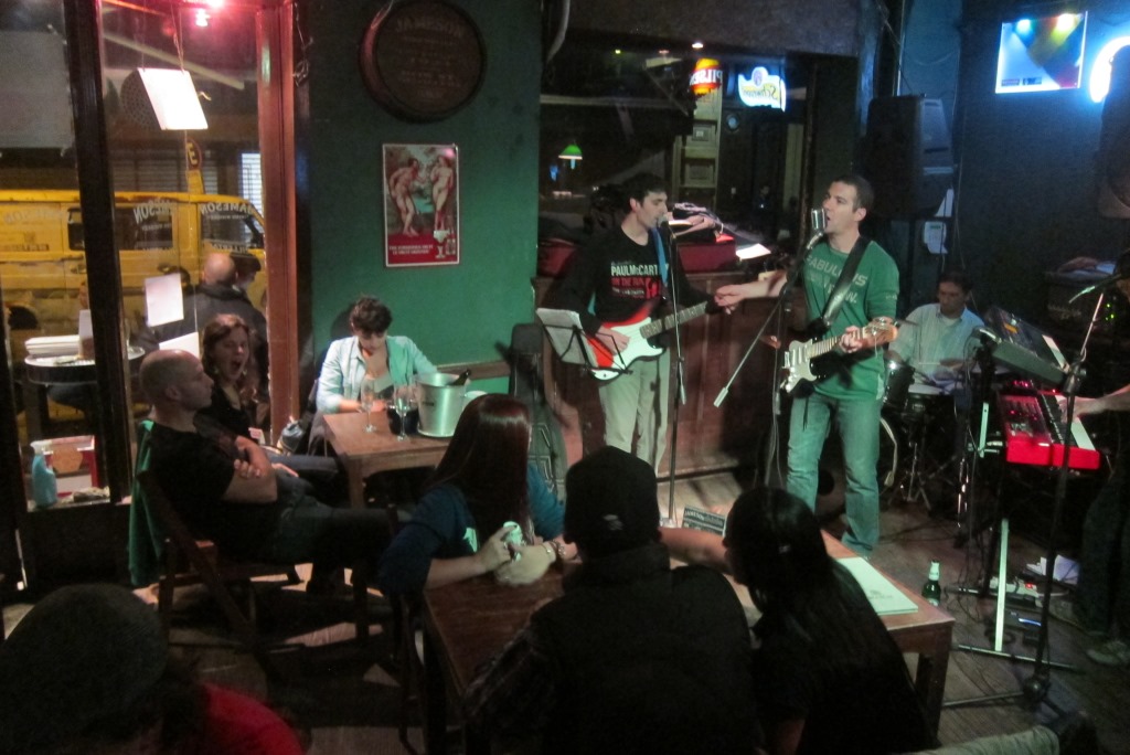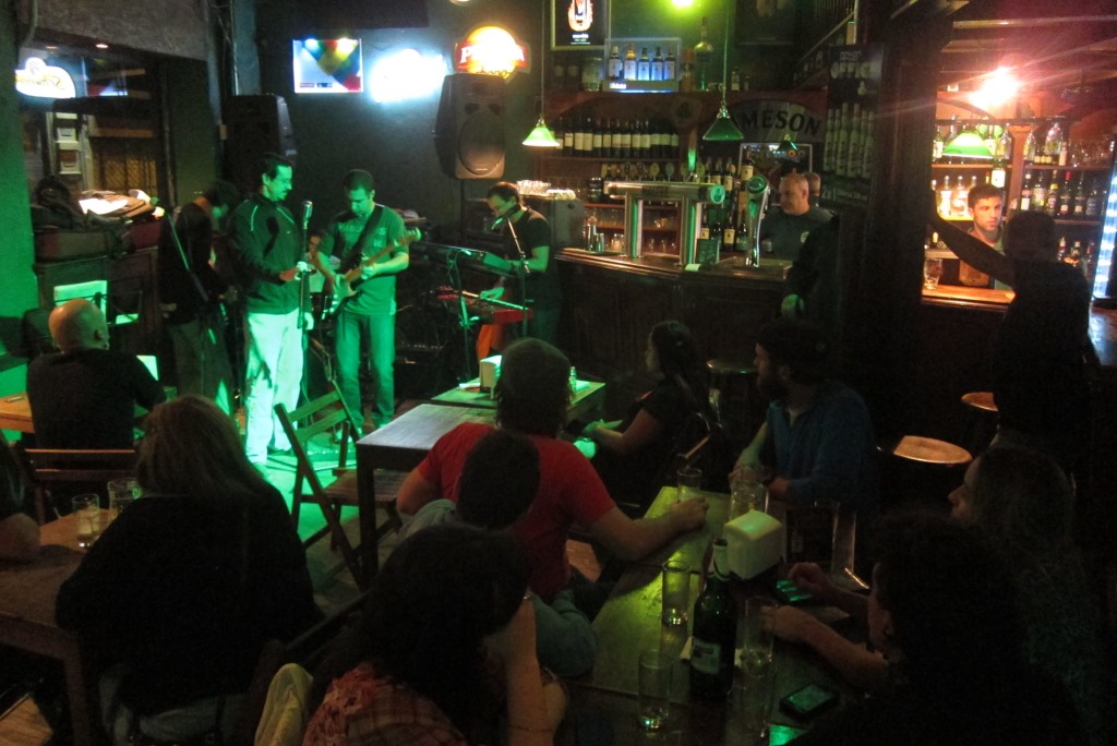 Aktīvā lēkāšana ir uzdzinusi mums apetīti un dodamies ielās atrast ko ēdamu. Netālā kafejnīcā pasūtām diezgan neveselīgas vakariņas, bet šovakar esam pelnījuši atjaunot enerģiju. Pēc ieturēšanās, Karims un Džeimija jūtas saguruši un dodas atpakaļ uz hosteli, bet es ar Rafaēlu un Brendonu, apsildīt degunu Montevideo naktsdzīvē. Pirmais hostelī ieteiktais bārs mūs neuzrunā, bet vietējais īru krogs gan – tur riktējas grupa, tūlīt varēs klausīties dzīvo mūziku. Paņemam pa alum un esam gatavi koncertam. Es aizeju līdz labierīcībām, bet nākot laukā no sirsniņmājas, diezgan strauji veru durvis un iebliežu ar tām pa galvu meitenei, kas pie spoguļa cenšas uzlabot smukumu ar acu tušu. Atvainojos kā vien mācēdama. Meitene nedusmojas un mēs šķiramies kā draudzenes. Krogā izrādās, ka mēs sēžam pie blakus galdiņiem un Karolīna aicina mūs pievienoties. Sabīdām galdiņus kopā un drīz jau esam ieslīguši sarunās ar vietējiem, jaunieši ļoti labi runā angliski. Karolīna gan apgalvo, ka tas esot tikai alus nopelns. Drīz vien noklausos sirdi plosošus mīlas stāstus, tādus, kurus vieglāk uzticēt svešiniekam kā draugam. Fonā skan roka klasiskas gabali, pārsvarā no Queen un Pink Floyd repertuāra. Īsāk sakot, kad ap četriem rītā beidzot slājam mājās, konstatējam, ka šis bija varen izdevies vakars.