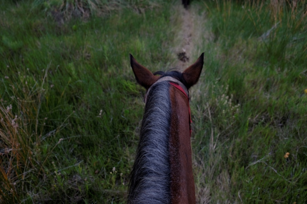 Pēc divdesmit minūšu gaidīšanas ceļa galā parādās bariņš zirgu ar pavadoni. Kad esam iepazinušies ar Fabianu, viņš iztaujā mūs par līdzšinējo pieredzi, tad brīdi skatās uz katru no mums, lai izvēlētos piemērotāko zirgu. Es tieku pie liela, mazliet iesirma zēna ar zvaigzni pierē, Rosinjo vārdā. Straujākā, balta kumeļa mugurā, uzlec Brendons, mēs šo ķircinām un saucam par princi. Rafaēls tiek pie melna zirga, bet Džeimija pie šokolādes krāsas ķēves ar mazliet negantu raksturu.
