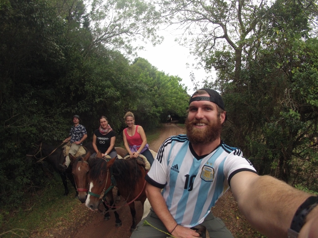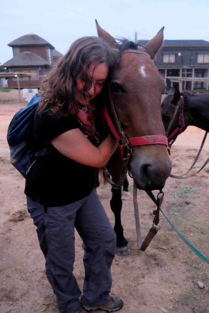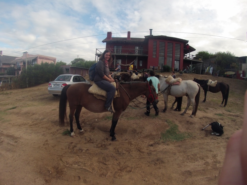Četros pēcpusdienā atkal dodamies uz centrālo hosteli, esam pieteikušies izjādei ar zirgiem. Karims šoreiz izlēmis nepiedalīties, bet pārējie ir gatavi piedzīvojumam. Brendons, kurš, kā jau minēju, ir uzaudzis zirgu fermā, gaidot rikšotājus, pats dīžājas kā jauns kumeļš. Arī Džeimijai un Rafaēlam ir salīdzinoši liela jāšanas pieredze. Atšķirībā no manis. Esmu Latvijā bijusi zirga mugurā reizes trīs, bet visas no tām rātni pastaigājoties pa meža takām. Esmu viegli nobijusies, jo šis solās būt citādāks pasākums.