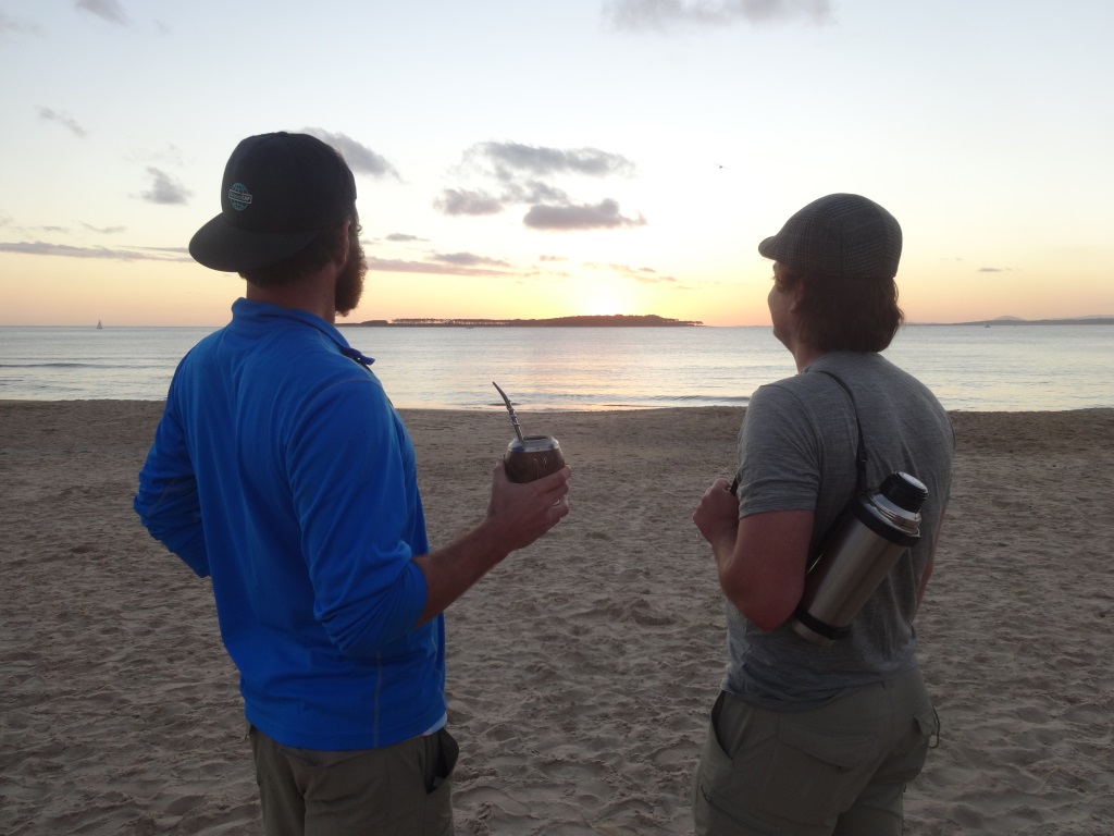 Pirms meklējam naktsmājas, vēlreiz piestājam okeāna krastā, lai vērotu saules iebrišanu tajā. Malkojam matē dzērienu, kas ir mūsu brauciena neiztrūkstoša sastāvdaļa, un baudām izrādi. Kad debesis sāk zaudēt krāsu gammu un satumst, braucam uz hosteli. Pirmais mūs neuzrunā, bet otrais ir gana labs. Noliekam mantas, aizejam apēst dienišķās vakariņas un atgriežamies hostelī uz nelielu vakarēšanu. Brendons ir iegrimis basketbola spēles tiešraidē, mēs, pārējie sitam kārtējo Karima iemācīto kāršu spēli. Sākumā ir doma doties ielās arī šajā kūrortpilsētā, bet sagurums ņem virsroku un dodamies vien uz savām istabiņām.