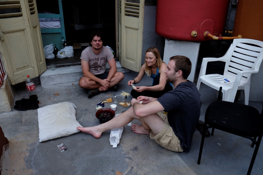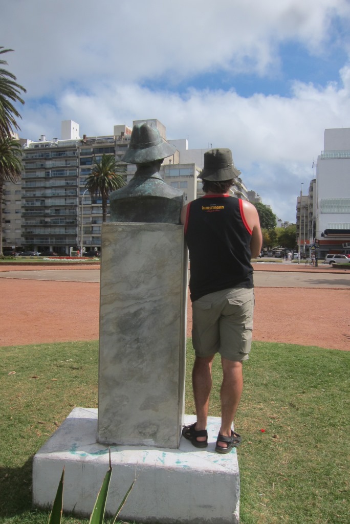 Ieturam atvadu pusdienas un tad Džeimija dodas uz prāmi, lai kuģotu atpakaļ uz Buenosairesu un sēstos lidmašīnā, bet mēs ar Rafalēlu kāpjam autobusā un laižam atpakaļ uz Montevideo. Biju cerējusi atrast palikšanu caur kaučsērfingu, bet tas man neizdevās, tāpēc nolēmām vien palikt tajā pašā hostelī, kur piestājām turpceļā. Sākumā mums piešķir vietu četrvietīgā istabā, bet tā ir maza, pelējumu smakas pilna istaba bez logiem un labierīcībām. Mēs paši būtu par slinku pārcelties, tomēr nākamajā naktī šī istaba ir aizņemta un mums piedāvā vietu sešvietīgā istabā hosteļa augšstāvā, uz kuru ved šauras un stāvas metāla kāpnes. Bet pati istaba ir lieliska – gaiša, ar tualeti un dušu, bet pats galvenais – ar jumtu, kas ir tāda kā privātā terase. Mums priekšā ir amerikāņu pāris – Makss un Ērika, kas tikko sākuši ceļot. Mēs saprotamies lieliski un vairākas dienas klīstam pa Montevideo kopā ar viņiem.