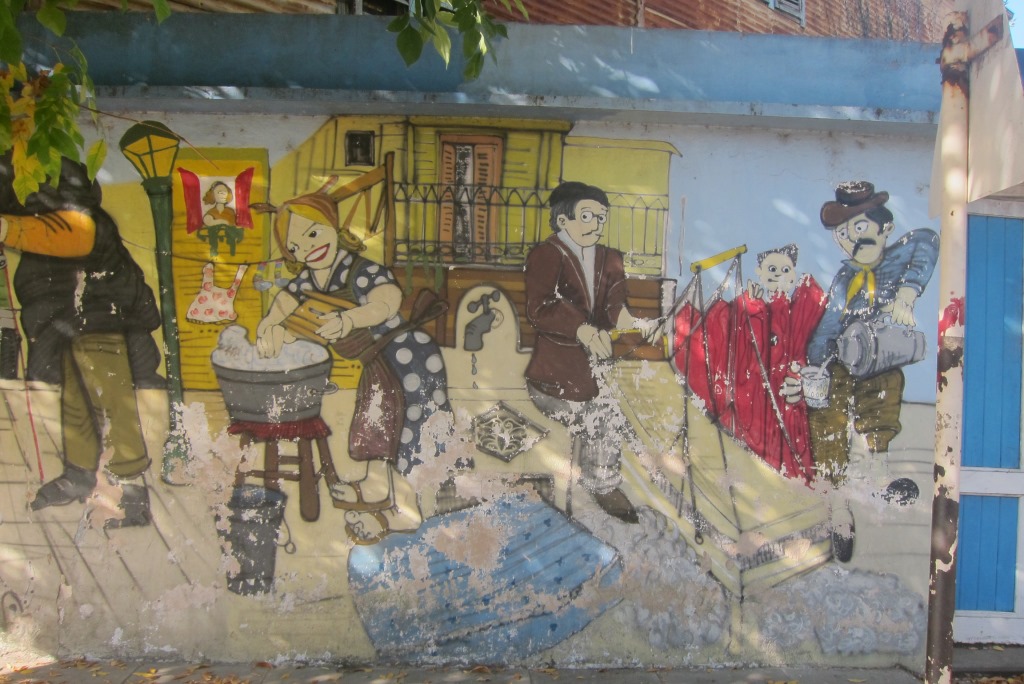 Nākamajā dienā, kārtīgi izgulējušies, dodamies pastaigā pa pilsētu. Ir svētdiena un Čārlijs vēlas man parādīt Buenosairesu „ārpus tūrisma takām”, mums pievienojas arī divi viņa draugi. Sākam ar relatīvi tūristiskās vietas „La Boca” apskati, kur tuvējās ostas piesaistīti, mājas būvēja emigranti, izmantojot cinka plāksnes un pārpalikumus no kuģu krāsām, tāpēc bieži vien katrs mājas stūris ir citā krāsā, piešķirot rajonam priecīgu un bohēmisku auru. Bet mēs ilgi neuzkavējamies tā centrā – Čārlijs mūs vedina tālāk, pastaigāties gar upi un pa klusām ielām. Viens no viņa draugiem ir sabijies un visu laiku cenšas pierunāt Čārliju atgriezties ļaužu pilnākās vietās. Man gan viss reāli patīk, uz sienām ir daudz zīmējumu un ielas pilnas ar svētdienas mieru. Mēs apskatām nomaļu dzelzceļa staciju, senas angļu stila būves un Lanin ielu, kurā ēku fasādes rotātas maziem flīžu mozaīku gabaliņiem. Pie katra no objektiem, Čārlijs, tēlodams gidu, paziņo: „Esam ieradušies pie mūsu nākamā apskates objekta, jums ir piecas minūtes, lai uzņemtu foto” vai kaut ko tamlīdzīgu. Kādā brīdī mums pievienojas vēl viens draugs ar velo – es to aizņemos un aši aizminos gabaliņu tālāk pa centrālo ielu, lai apskatītu iespaidīgu baznīcu. Uh, tik forši ir ātrumā traukties pa rudens lapu pilnajām ielām. Kādā mazā ieliņā tiek tirgoti istabas augi. „Čārlij, izvēlies vienu, es gribu uzdāvināt puķi tavam dārza pagalmam, lai tu mani atcerētos.” Viņš izvēlas visjocīgāko augu ar maziem, oranžiem ziediņiem, uzceļ dāvanu plecos, nobučo mani uz vaiga un saka: „Es tevi atcerētos arī bez puķes, bet liels paldies”.