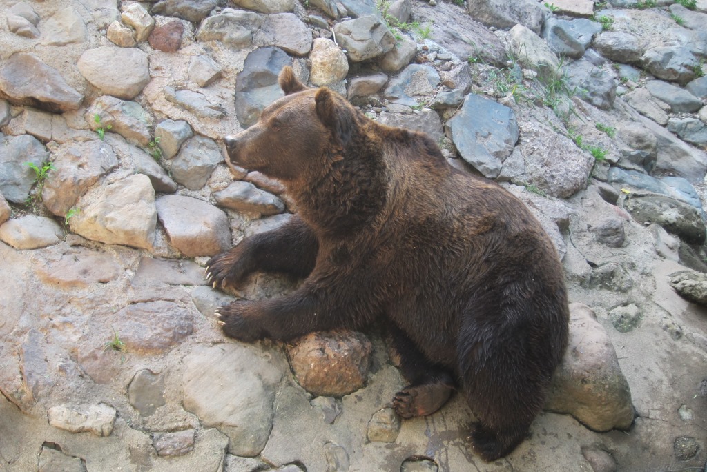 Ar pērtiķiem gan mēs abi esam labi pazīstami no Āzijas ceļojumiem un zinām, ka mīlīgā paskata dzīvnieciņi mēdz būt arī visai uzmācīgi, jo īpaši, ja tavā rīcībā ir pārtika. Nez kāpēc popkorna, ar kuru esam nolēmuši nosist izsalkumu, tirdzniecības vieta atrodas tieši blakus pērtiķu krātiņam, kas nav visai „hermētisks” un attiecīgi daži biedri vienkārši cilpo riņķī. Ieraudzījuši mūs tuvojamies ar šiem labi pazīstamajām popkorna tūtām, zvēruļi uzsāk nepārprotamu kustību mūsu virzienā. Mēs saskatāmies un apgriežamies par 180 grādiem – labāk notiesāsim baltos našķus blakus lāčiem.
