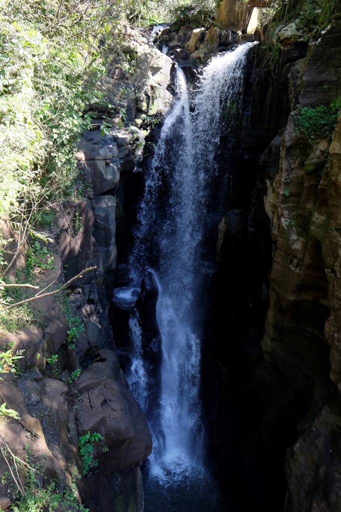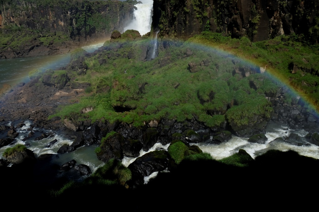 Atjaunojuši spēkus, ejam uz nākamo taku. To šeit ir diezgan daudz un no katras paveras mazliet cits skats – var apskatīt ūdenskritumus no dažādiem leņķiem un augstumiem. Vienojamies ar Rafaēlu, ka mums vislabāk patīk skati no zemāka punkta, tāpēc nokāpjam līdz pašai upei. Saule uzzīmējusi lietus pilieniņos pilnu varavīksnes loku, uzspodrinājusi baltās ūdens šaltis un iekrāsojusi ūdeni vienā zaļajā tonī, bet kokus citā. Mēs stāvam un veramies šajā skaistuma pārbagātībā, ir gandrīz vai par daudz visa kā vienā punktā. Jā, Liena Muraškina, šī ir Īpaša Vieta, gaidi pastkartīti! 🙂 Paldies!