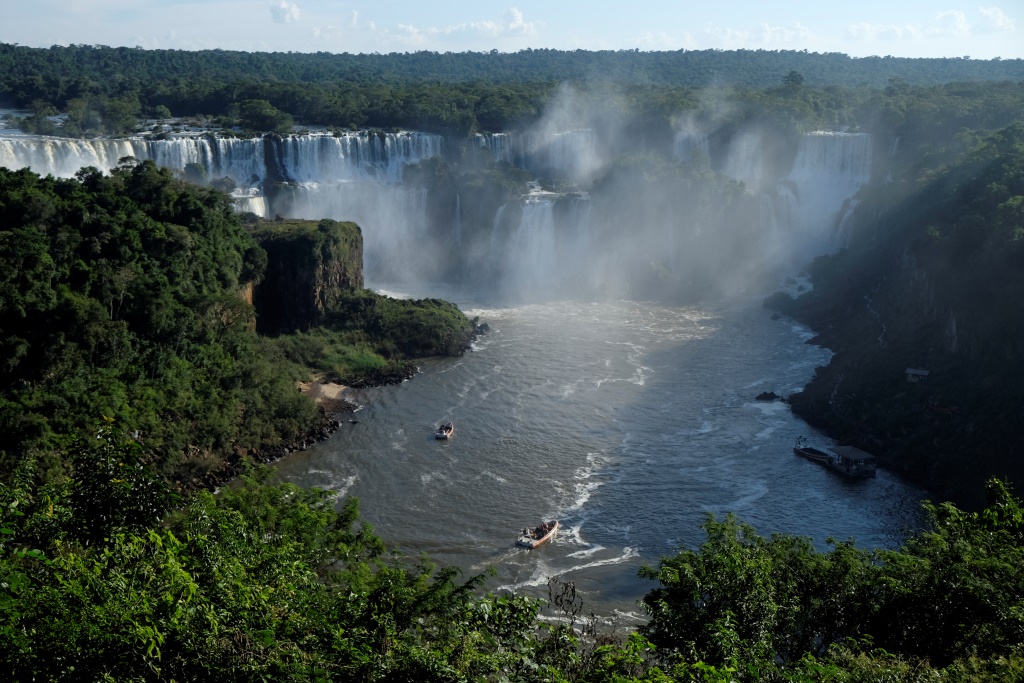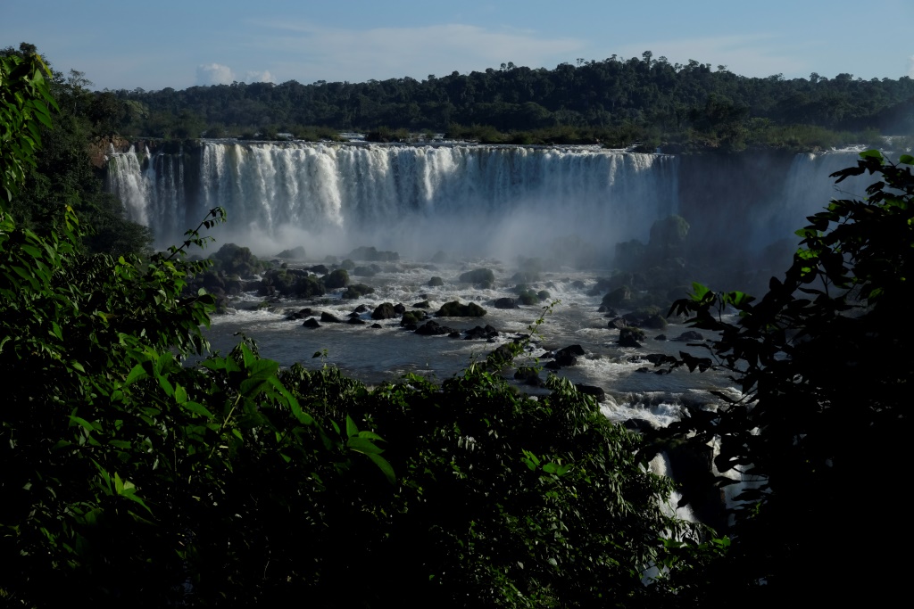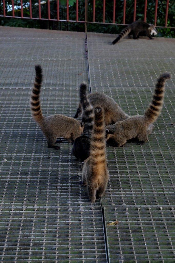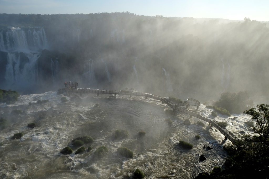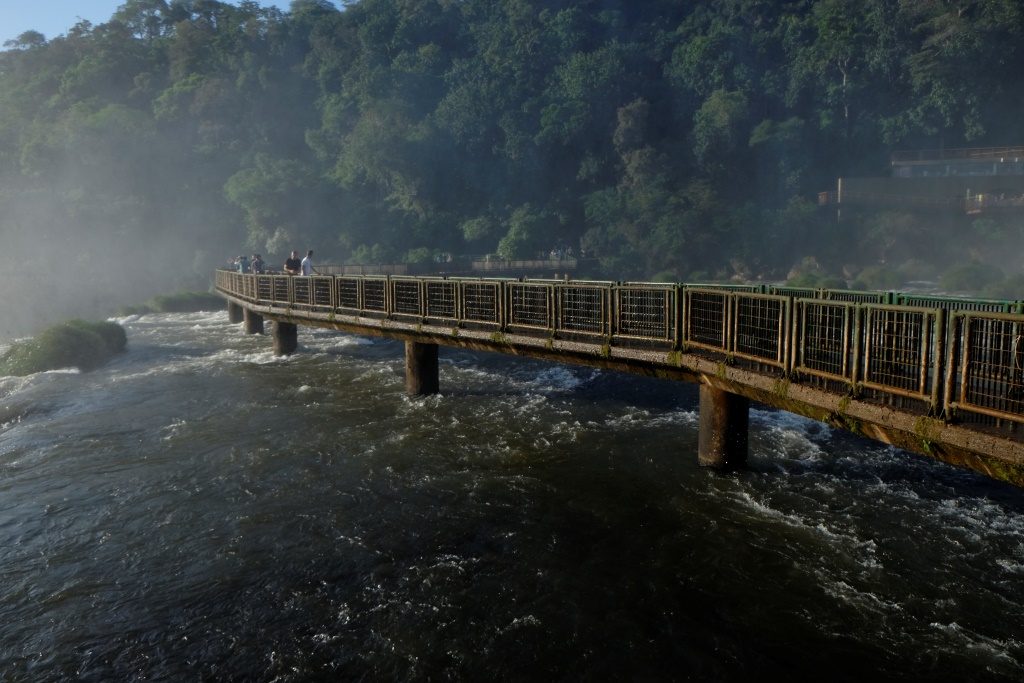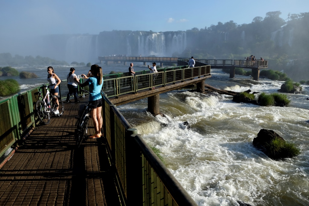 Pirms četriem esam galā, sarunājam tikšanās vietu un es sēžos nacionālā parka transfēra autobusā, kas nogādā tūristus pie pastaigu takām un ūdenskritumiem. Šeit ir viena galvenā taka, kas ved gar upi un no kuras var redzēt ūdens tērces. Ko mēs darām šādās situācijās? Salīdzinām, protams! Argentīnas puse piedāvā lielāku daudzveidību, garākus pārgājiena maršrutus un attiecīgi skatu punktus, bet šejienes, Brazīlijas puse, ļauj piekļūt ūdenskritumiem daudz tuvāk. Viss ir koncentrētāk un iespaidīgāk. Lūk, jums ieskatam trīs īsi video.