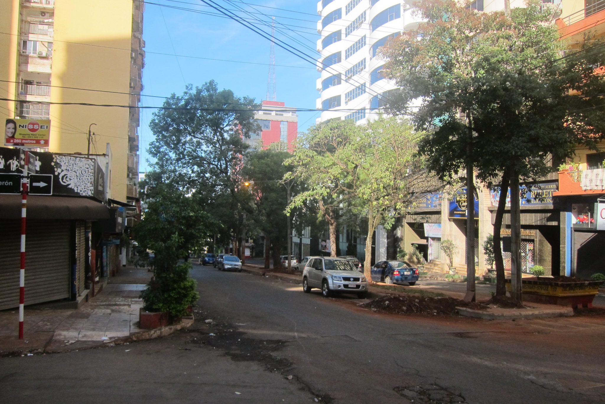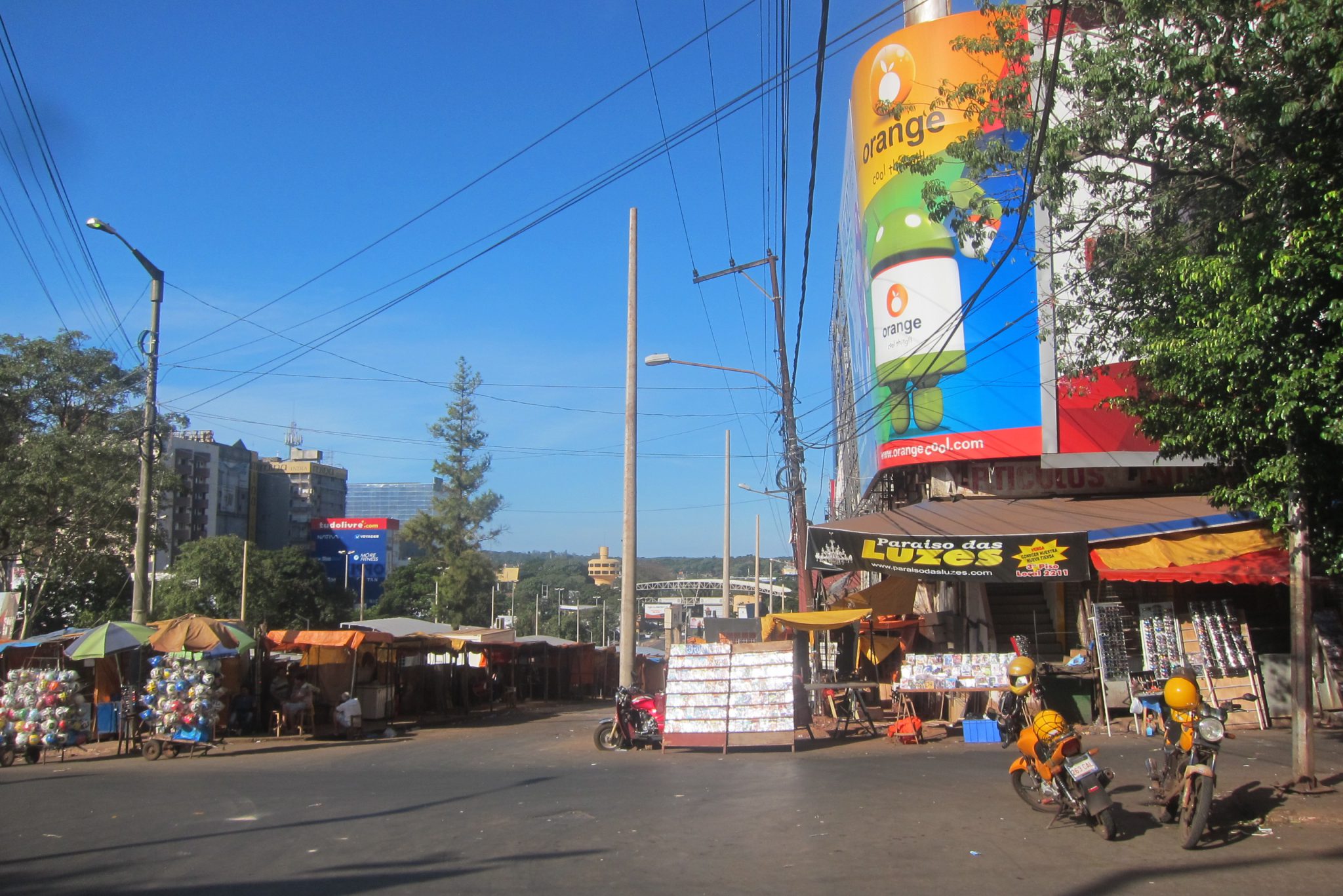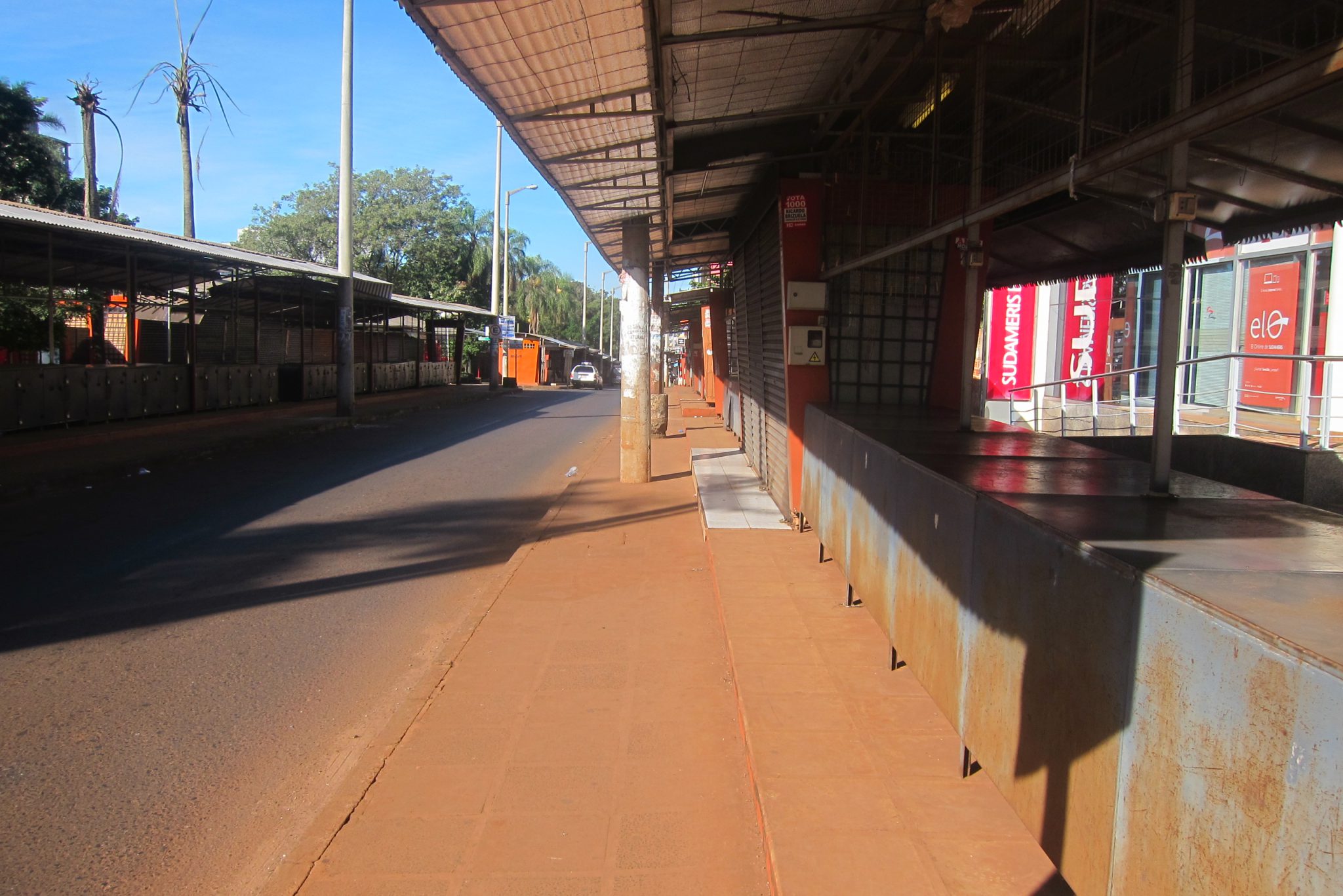 Nu neko, neraža, jādodas atpakaļ. Izskatās arī, ka autobusu satiksme šodien ir „piegriezta”, pirmais transports parādās tikai pēc 40 minūtēm. Kamēr gaidīju autobusu, man kaut ko vēstīja netālu apstājies Itaipu firmas mašīnā sēdošs šoferis, varbūt pat piedāvāja aizvest, bet man kaut kādas nianses neiepatikās, tāpēc atļāvos ignorēt personāžu. Autobuss mani aizved atpakaļ uz pilsētu, nolemju pastaigāt vismaz pa to. Kas tev deva – viss ir ciet, pilsēta ir kā izmirusi. Nekādi dižie apskates objekti šeit tāpat nav, pilsētas lielākais šarms ir tirgošanās un kolorītie cilvēki, bet šodien te nav ne viens, ne otrs. Labi, pāris nīkas bodītes ir vaļā un atrisinu vienu no savām problēmām – nopērku USB vadu, esmu savējo pazaudējusi vai ļoti labi noslēpusi.