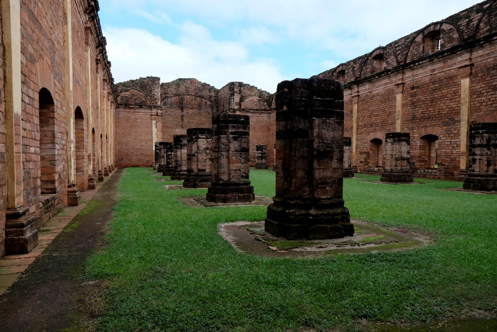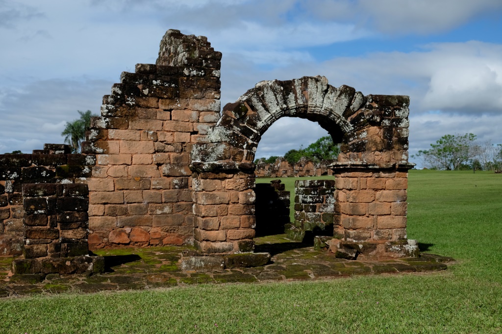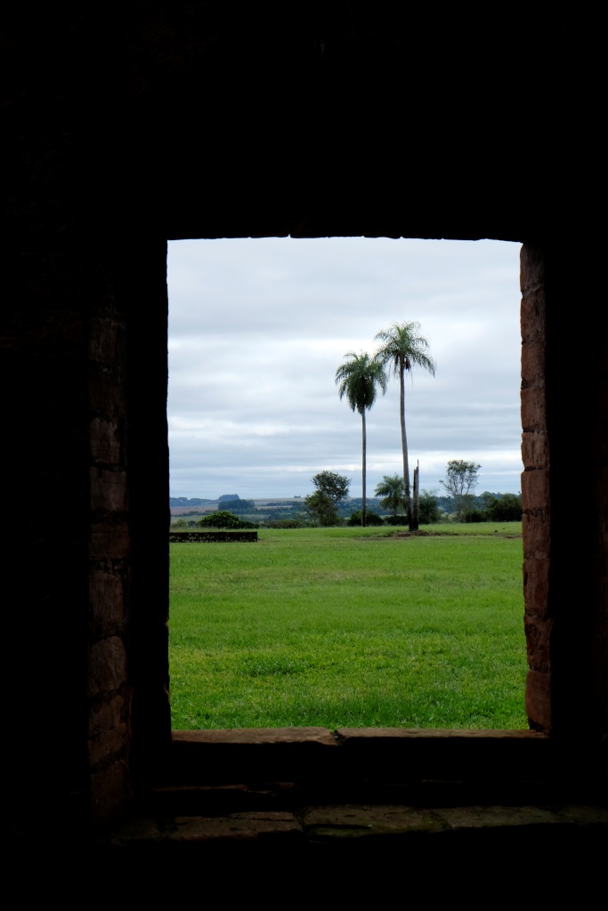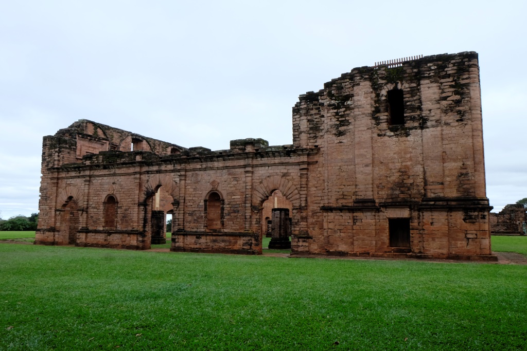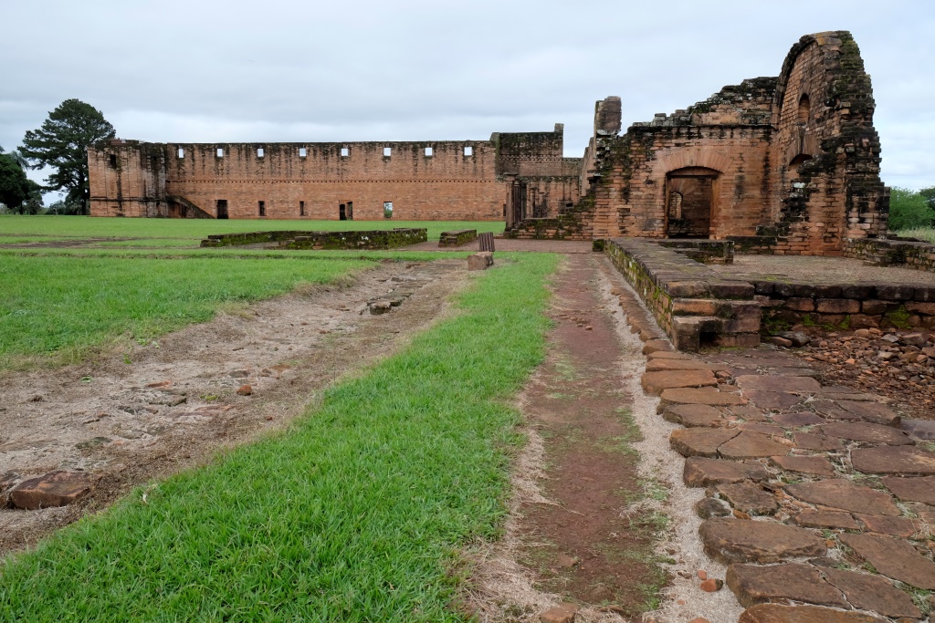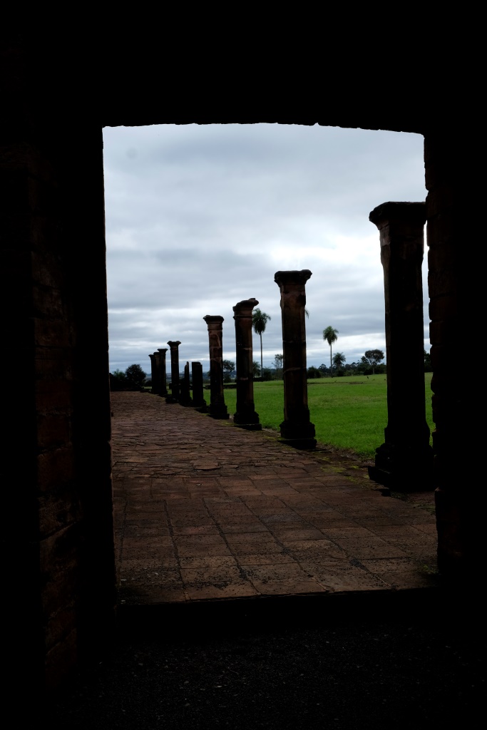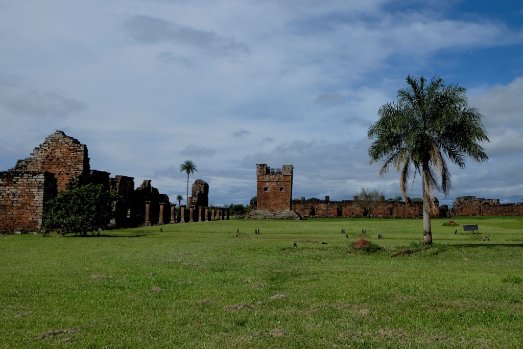 Kad esmu beigusi rakstu darbus, arī lietus ir beidzis savējos, un varu doties ārpus pilsētas. Šejienes būtiskākā tūristu atrakcija ir jezuītu misiju drupu apmeklējums. Divas no tām atrodas vienā virzienā, šodien ceru apskatīt abas. Līdz pirmajām tikt ir pavisam vienkārši – autobuss nepilnas stundas laikā aizved līdz Trinidādes ciematam, tur drusku jāpasoļo kājām un klāt esmu. Bez mani šeit ir vēl tikai daži cilvēki, var bildēt uz nebēdu. Lēnām parādās saule, debesis ir baltu mākoņu pilnas, zāle zaļa – īsāk sakot, ir ļoti skaisti, staigāju apkārt un meklēju leņķus, esmu sajūsmā par šo vietu. Kad nu esmu visus kaktus izložņājusi, dodos uz otro apskates vietu – tā ir 12 km attālā ciematā, kas saucas Jēzus. Vispār Paragvaja ir ļoti reliģioza valsts, teju puse no apdzīvotajām vietām nes kāda reliģiska tēla vārdu.