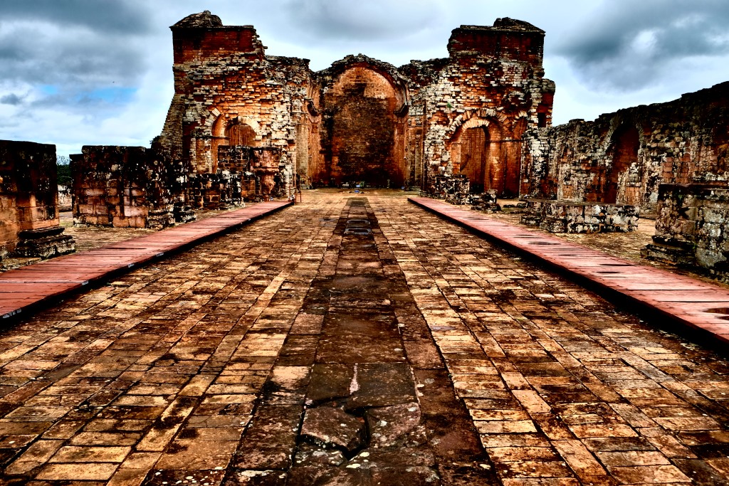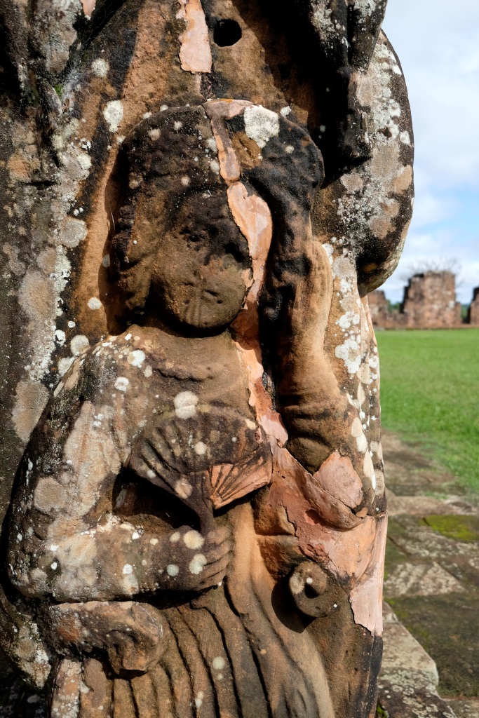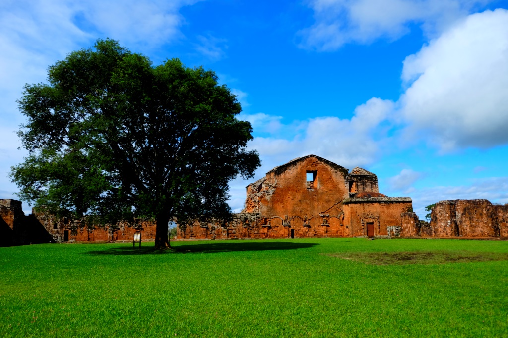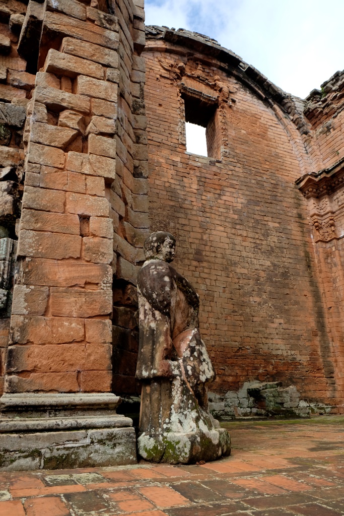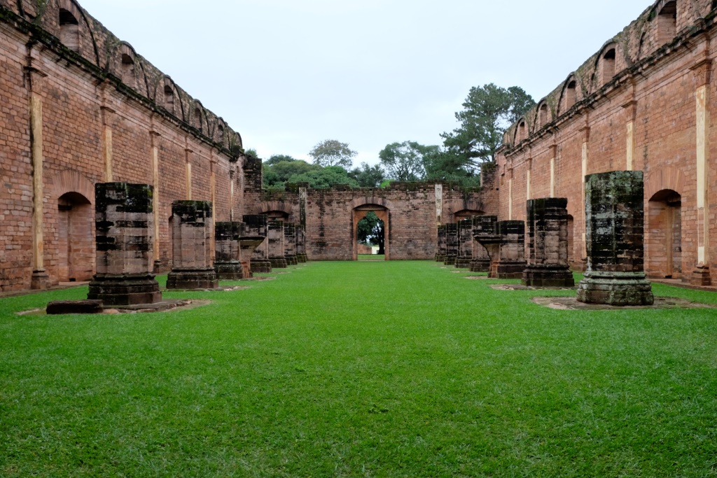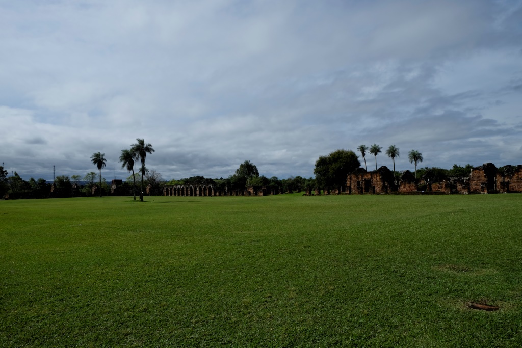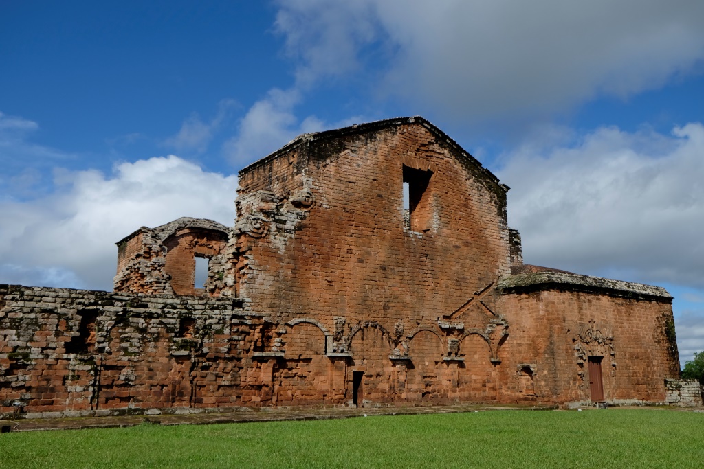 Kad esmu beigusi rakstu darbus, arī lietus ir beidzis savējos, un varu doties ārpus pilsētas. Šejienes būtiskākā tūristu atrakcija ir jezuītu misiju drupu apmeklējums. Divas no tām atrodas vienā virzienā, šodien ceru apskatīt abas. Līdz pirmajām tikt ir pavisam vienkārši – autobuss nepilnas stundas laikā aizved līdz Trinidādes ciematam, tur drusku jāpasoļo kājām un klāt esmu. Bez mani šeit ir vēl tikai daži cilvēki, var bildēt uz nebēdu. Lēnām parādās saule, debesis ir baltu mākoņu pilnas, zāle zaļa – īsāk sakot, ir ļoti skaisti, staigāju apkārt un meklēju leņķus, esmu sajūsmā par šo vietu. Kad nu esmu visus kaktus izložņājusi, dodos uz otro apskates vietu – tā ir 12 km attālā ciematā, kas saucas Jēzus. Vispār Paragvaja ir ļoti reliģioza valsts, teju puse no apdzīvotajām vietām nes kāda reliģiska tēla vārdu.