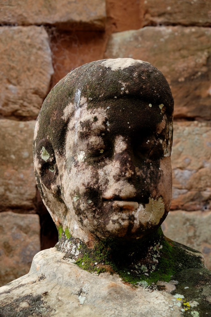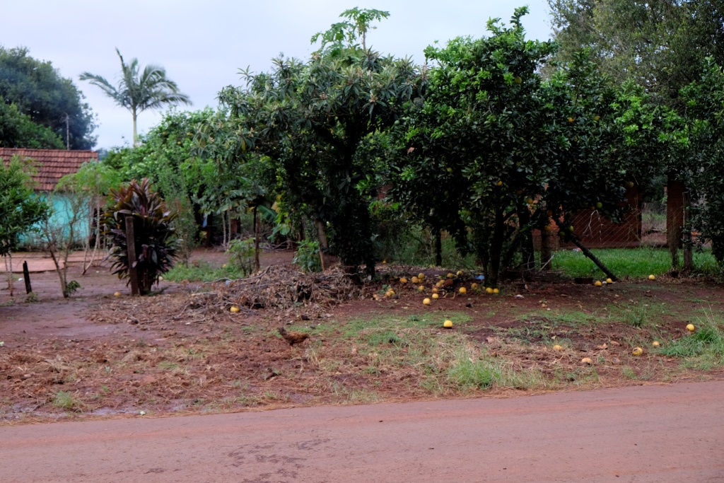 Beigusi objekta apskati un bildēšanu, domāju, kā nokļūt atpakaļ. Pirmā doma, ka pie drupām varētu būt kāds transports, neapstiprinās. Labi, iešu cauri ciematam un mēģināšu uz šosejas nostopēt kādu auto, citu iespēju es neredzu. Pastaiga pa ciematu ir īsts šovs. Centrālās ielas ir asfaltētas, bet tās klāj sarkanu dubļu kārta, ko atstājušas auto riepas un cilvēku soļi no mazajām sānu ieliņām. Ik pa laikam garām pabrauc kāds auto vai moto, bet kopējā ciemata atmosfēra ir pilnīgs miers. Bērni kailām un netīrām kājām spēlē volejbolu, visos krūmos rosās vistas un cāļi, zirgi un govis gremo aso sētmales zāli, ceļa malās zeļ apelsīnu, mandarīnu un pomelo koki, citrusu augļi mētājas pa zemi, tie šeit ir tādā pašā vērtē kā mums āboli rudenī. Cilvēki nopēta mani kā citplanētieti, drusku baidos vilkt ārā fotoaparātu, lai arī ļoti kārojas. Pašā ciemata galā tomēr nenociešos un noknipsēju pāris kadrus.