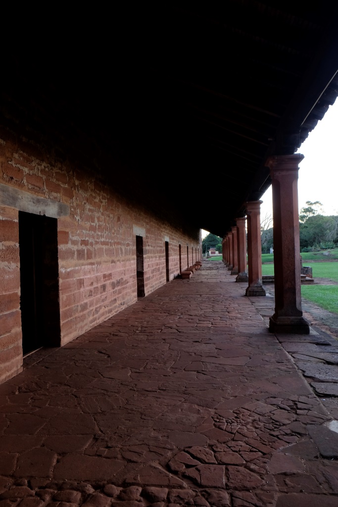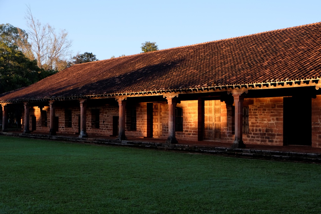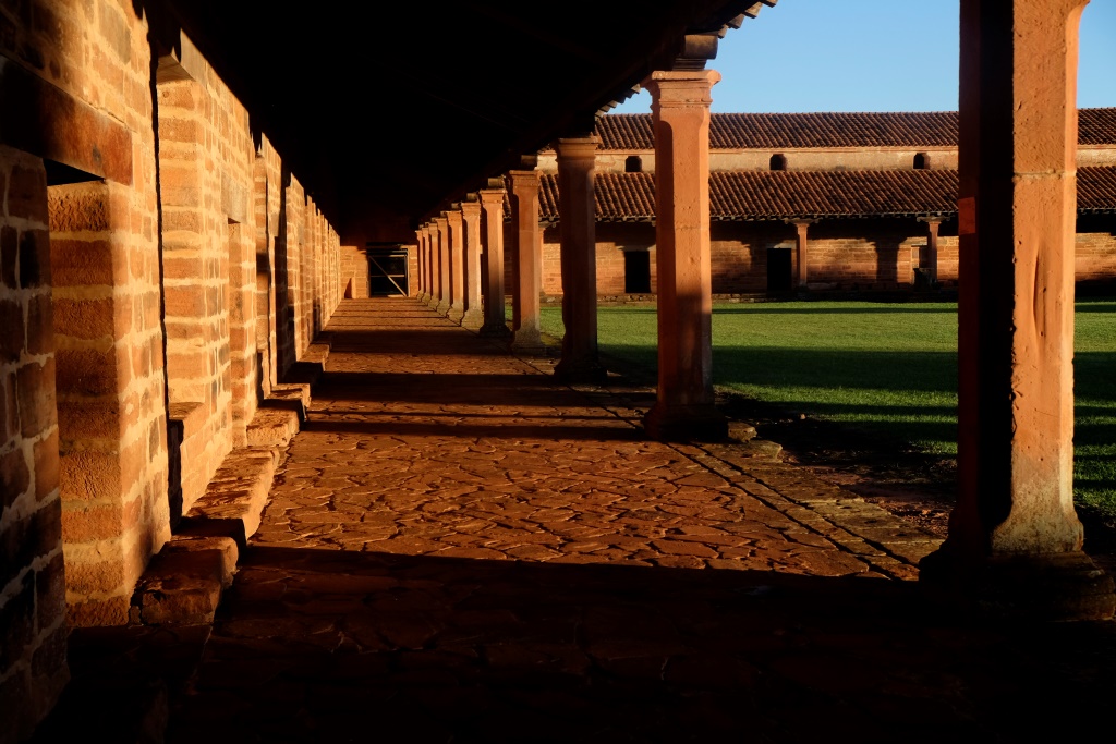 Ap puspieciem beidzot esam galā, šoferis izlaiž mani pie drupām un norāda, kur ir ieeja. Ceru, ka objekts būs vēl vaļā, citādi būtu diezgan muļķīgi. Jā, viss ir vaļā, darbinieki iesaka vispirms apskatīt misiju un pēc tam atgriezties šeit, astronomijas centrā. Es pat tieku pavadīta līdz drupām un nodota gida Ramona rokās. Laimīgā kārtā viņa spāņu valoda ir viena to tām, ko es diezgan labi saprotu. Vakara saulē akmens ēkām ir īpašs mirdzums, teju vai priecājos, ka esmu šeit tieši šajā diennakts laikā. Vairāk kā stundu mēs staigājam riņķī – Ramons stāsta, ka šajā vietā vēl pirms 11 gadiem funkcionējusi skola; ļauj uzrāpties ēkas bēniņos, kur žāvēta matē; demonstrē saules pulksteni; parāda milzīgu pagrabu, kur glabājies proviants; skaidro, kā savulaik tapuši jumta seguma materiāli – cilvēku augšstilbi izmantoti kā formas.
