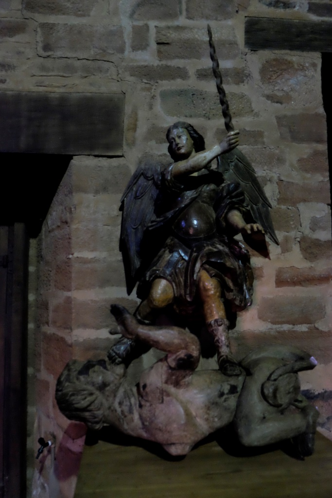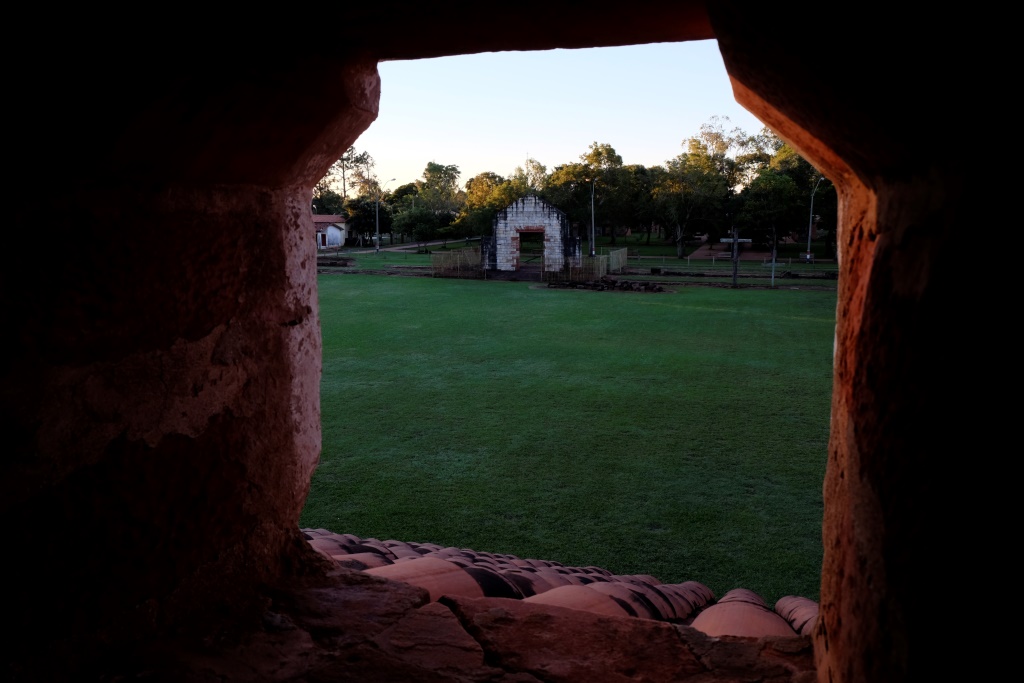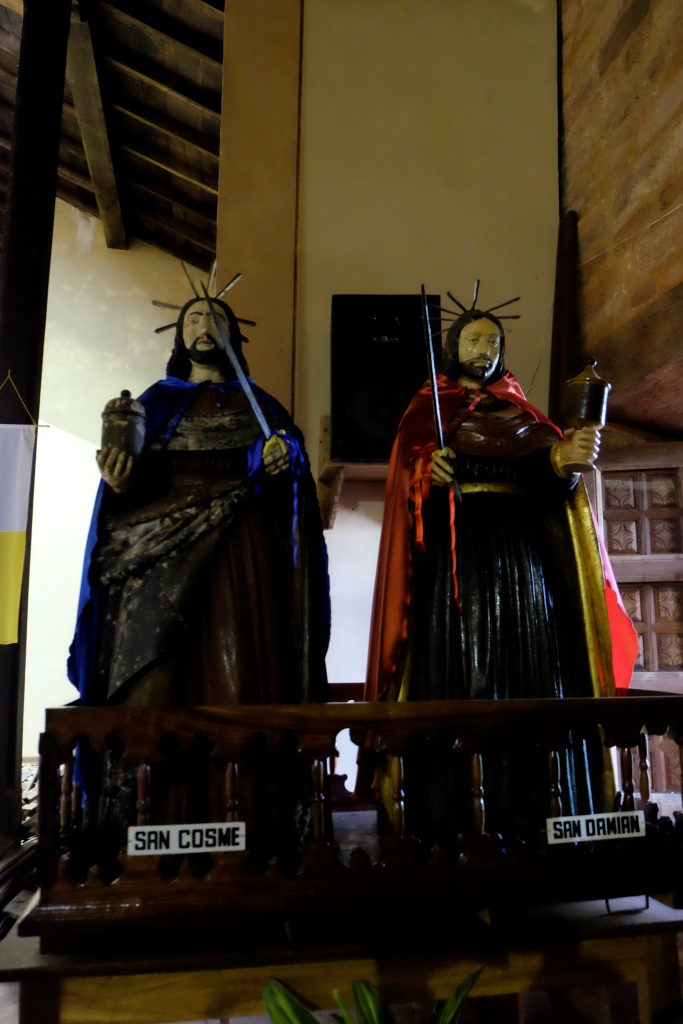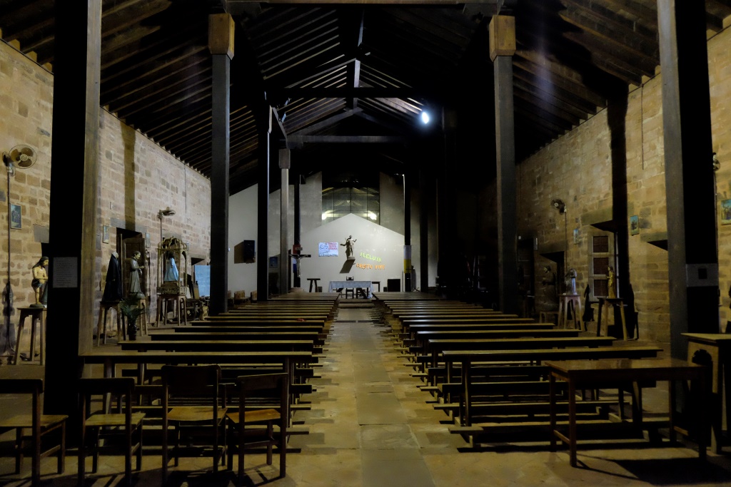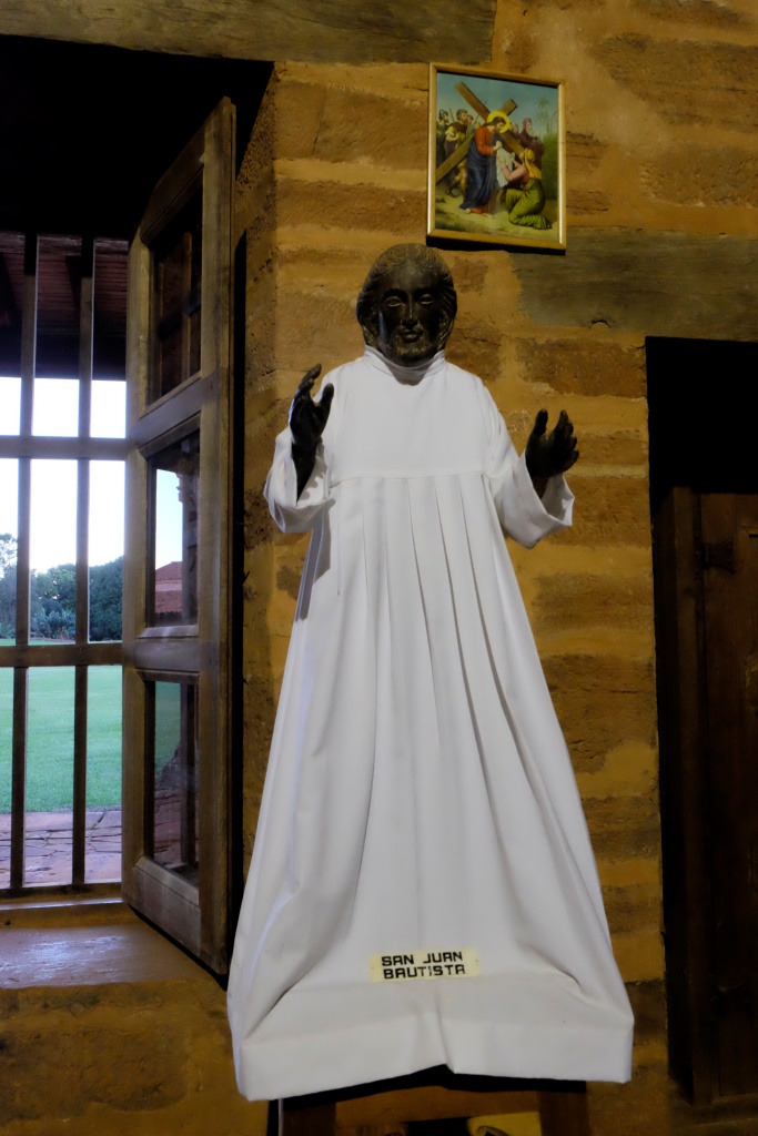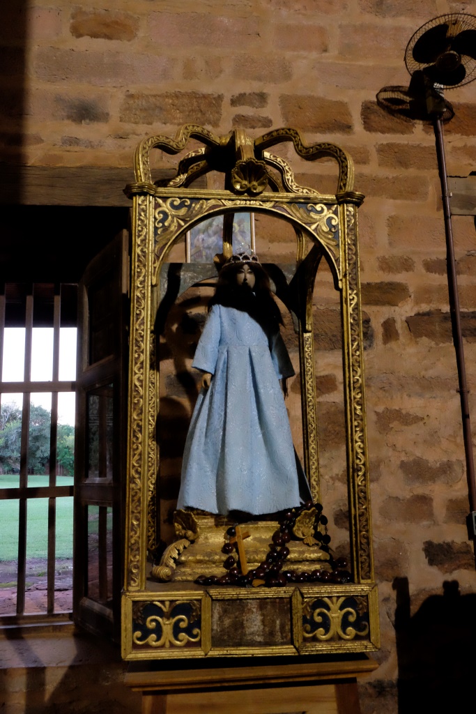 Pēc tam ieejam baznīcā, kas joprojām funkcionē, un Ramons iepazīstina ar katru tajā esošo koka tēlu. Viņš norāda, ka daudzu šejienes svēto sejās saskatāmi guarānī vaibsti, lai to apliecinātu, viņš nostājas blakus vienam no tēliem un uztaisa nopietnu seju, pēc tam smejamies abi. Viņš rāda arī trīs krēslus, kas vairs netiek lietoti, jo tie sāk brukt kopā, bet piebilst, ka šejieniešiem tie ir svarīgi, īpaši vidējais, jo savas vizītes laikā uz tā sēdējis Romas pāvests Jānis Pāvils II.