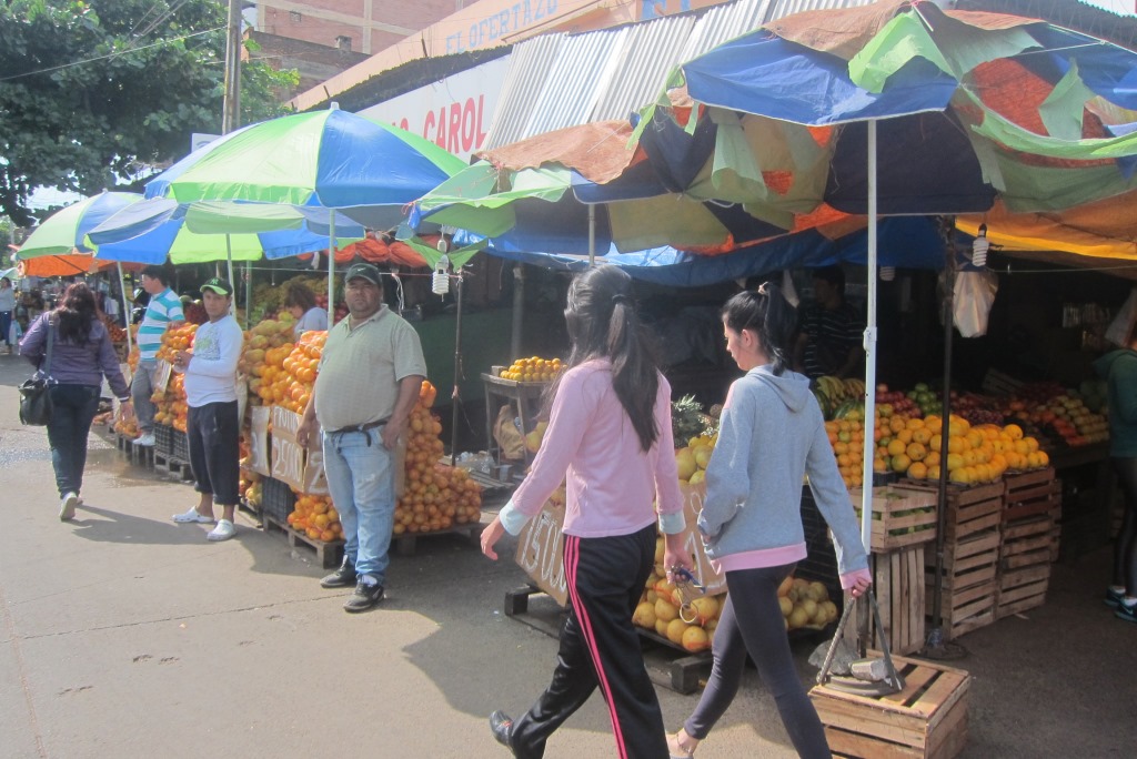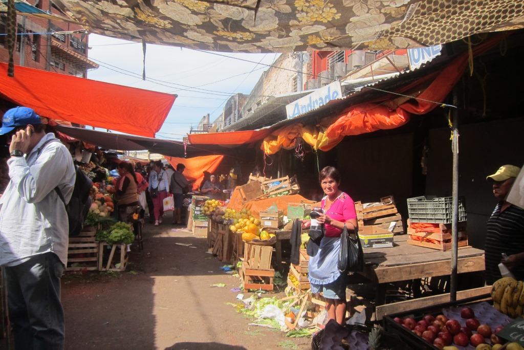 Tad mēs dodamies iekarot tirgus. Man atkal līdzi ir mazais fotoaparāts, bet Marjoleina tomēr ņem līdzi lielo kameru, kas izskatās (un droši vien arī ir) vēl dārgāka par manējo. Sākam ar Mercado 4 – tas ir milzīgs tirgus, kas stiepjas n-to kvartālu robežās un, šķiet, ka te var nopirkt pašu vellu. Garšvielu un garšaugu iela, pinumi, lietotas un jaunas drēbes, apavi ar visām iespējamām firmas markām, dzīvas un mākslīgas puķes, vadi un štepseļi – „just name it!”. Dzīvs cālis maksā tikpat cik vienas pusdienas – 2 USD, svaigi spiesta sulas glāze – 0,65 USD, kleita – 10 USD. Es mazliet tērgāju ar pārdevējām, lielākā daļa ir ļoti atsaucīgas – dod mums nogaršot sieru, stāsta par dzirām, kas likvidē teju visas veselības likstas.