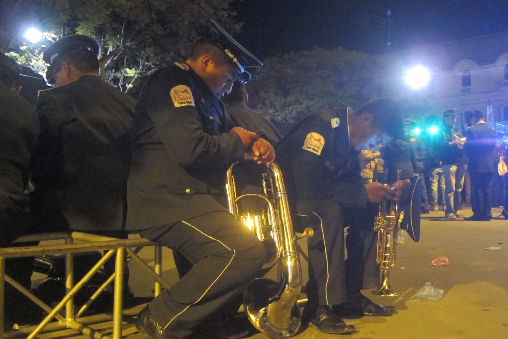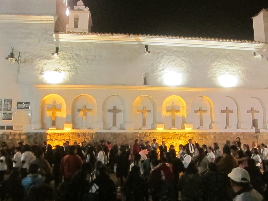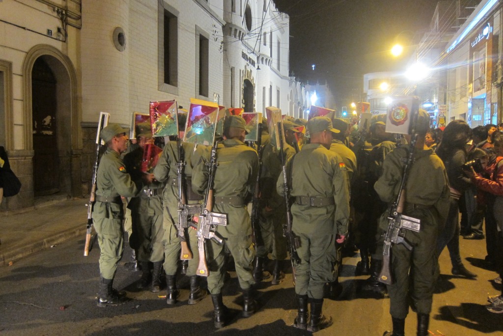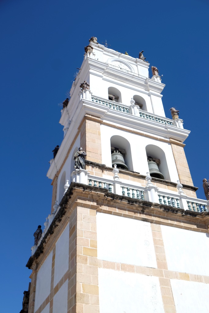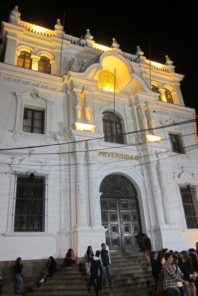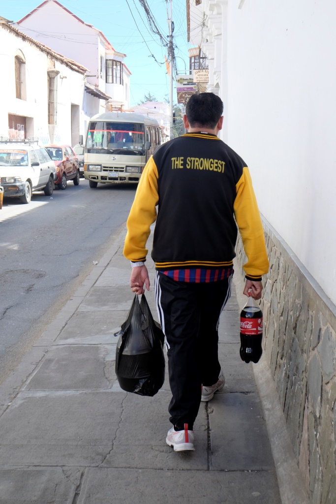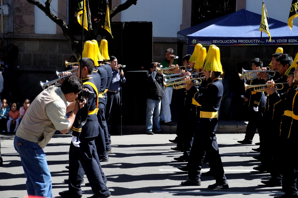 Mēs pamostamies no tauru pūtieniem un bungu rīboņas. Atveram balkona durvis un vērojam kā pa mūsu ielu soļo spilgti sarkanos tērpos ģērbti jaunieši ar mūzikas instrumentiem un karogiem – tā ir daļa no šodien notiekošās parādes. Esam pasnauduši vien pāris stundas, bet drusku možāki jūtamies. Un izsalkuši. Tāpēc viens no pirmajiem mūsu uzdevumiem ir atrast brokastis. Pa ceļam apskatām pilsētas centrālo laukumu, baltās baznīcas un citas ēkas – Sukre tiek dēvēta arī par balto pilsētu. Sev par kaunu atzīšos, ka biju dziļi pārliecināta, ka Bolīvijas galvaspilsēta ir La Paz, izrādās nē – tā ir Sukre. La Paz gan ir faktiskā galvaspilsēta, arī valsts vadība atrodas šajā pilsētā. Mirkli pavērojam parādi, bet, neredzēdami tai ne galu, ne malu, izspraucamies brīvākā brīdī cauri skatītāju pūlim un ejam uz tirgu. Tur sapērkamies visādus kārumus – maizi, sieru, augļus un dārzeņus, tad dodamies uz netālu parku, lai to visu skaitā atmosfērā pārvietotu mūsu vēderos.