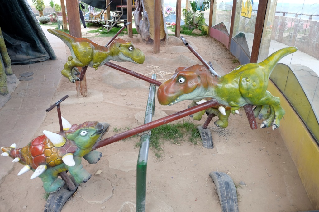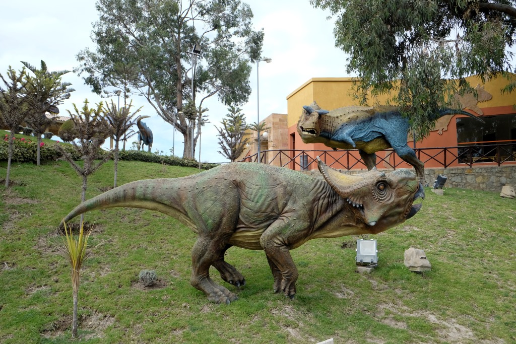 Šodien dodamies aplūkot pilsētas nomalē esošu dinozauru parku. Taksis mums izmaksā nepilnu dolāru no galviņas par vairāk nekā 5 km rāpšanos kalnā, tāpēc atļaujamies šādu komfortu. Īsi pirms galamērķa sasniegšanas mums gan nākas uzgaidīt minūtes desmit, kamēr taksists salej kūpošajā radiatorā ūdens divlitreni un temperatūras lampiņa uz paneļa mazliet nomierinās. Radiators šādi esot jāpalutina reizi dienā.