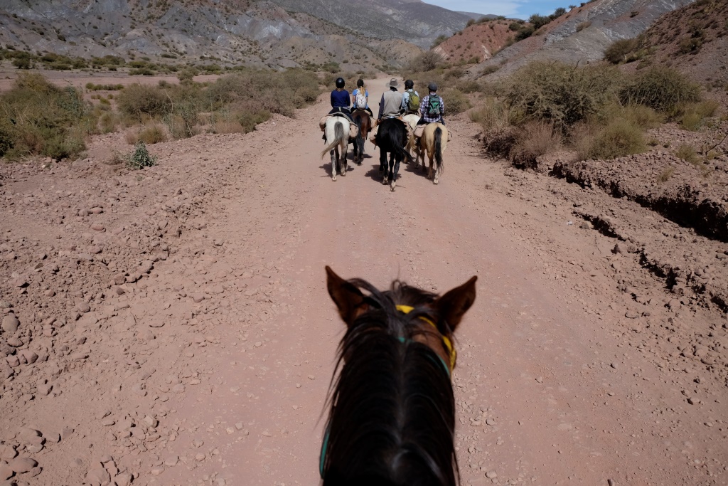 No rīta pamostos ar galvassāpēm. Sasodīts, kāpēc tieši šodien, kad esmu sarunājusi 7 stundu pārgājienu zirga mugurā. Man vispār galva gandrīz nekad nemēdz sāpēt (tfu-tfu-tfu) un šoreiz nesaprotu, vai šai nepatīk lielais augstums virs jūras līmeņa vai vakardienas salšana. Cerot, ka pie vainas ir augstums, sadzeros kokas lapu tēju un vēl aizbāžu aiz vaiga krietnu sauju. Tāda pusapdullusi ierodos aģentūrā, sēžamies džipā un braucam uz vietu, kur mīt zirgi. Pirms došanās ceļā, izstāstu par savām galvassāpēm un prasu, vai ceļa vidū varēšu pieteikto 7 stundu pasākumu nomainīt pret 5 stundu. Tas man tiek atļauts.
