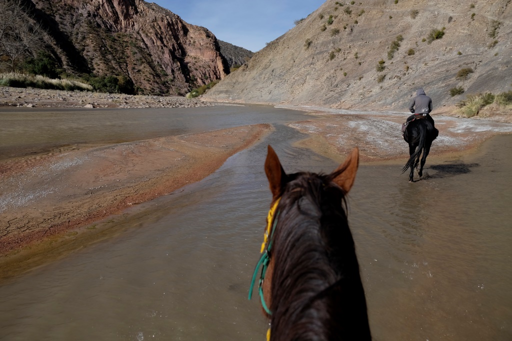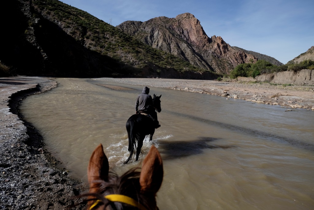 Tālāk mūsu ceļš vijas gar upi, kura itin bieži jāšķērso. Šoreiz ir tā, ka nevis „baidās manis kumeliņis”, bet man pašai ir bail – viena lieta ir soļot pa zemi, kur visi šķēršļi redzami, cita – brist pāri duļķainai upei, kuras dibens nav pazīstams un dziļums nav zināms. Man. Izskatās, ka zirgi šo maršrutu zina no galvas, tāpēc brien ūdenī bez mudināšanas. Pieaugušie zirgi soļo rātni, bet Medus dauzās kā pusaudzis – paskrien uz priekšu, tad pagaida, izmanto katru iespēju kaut ko apēst – kādu sakaltušu zāles kumšķi, cukurniedres stiebru, kukurūzas lauka pabiras. Ja viņš ierauga citus zirgus, noteikti aizskrien līdz viņiem apsveicināties.
