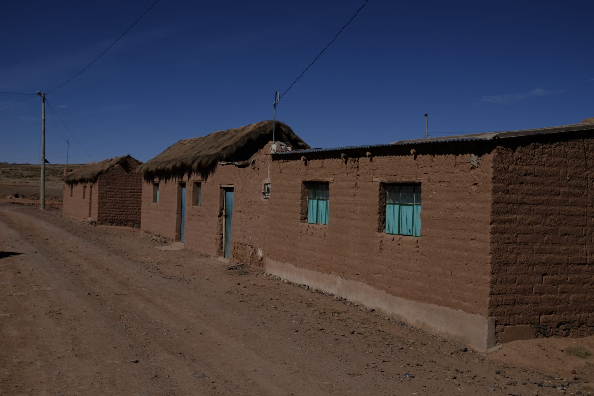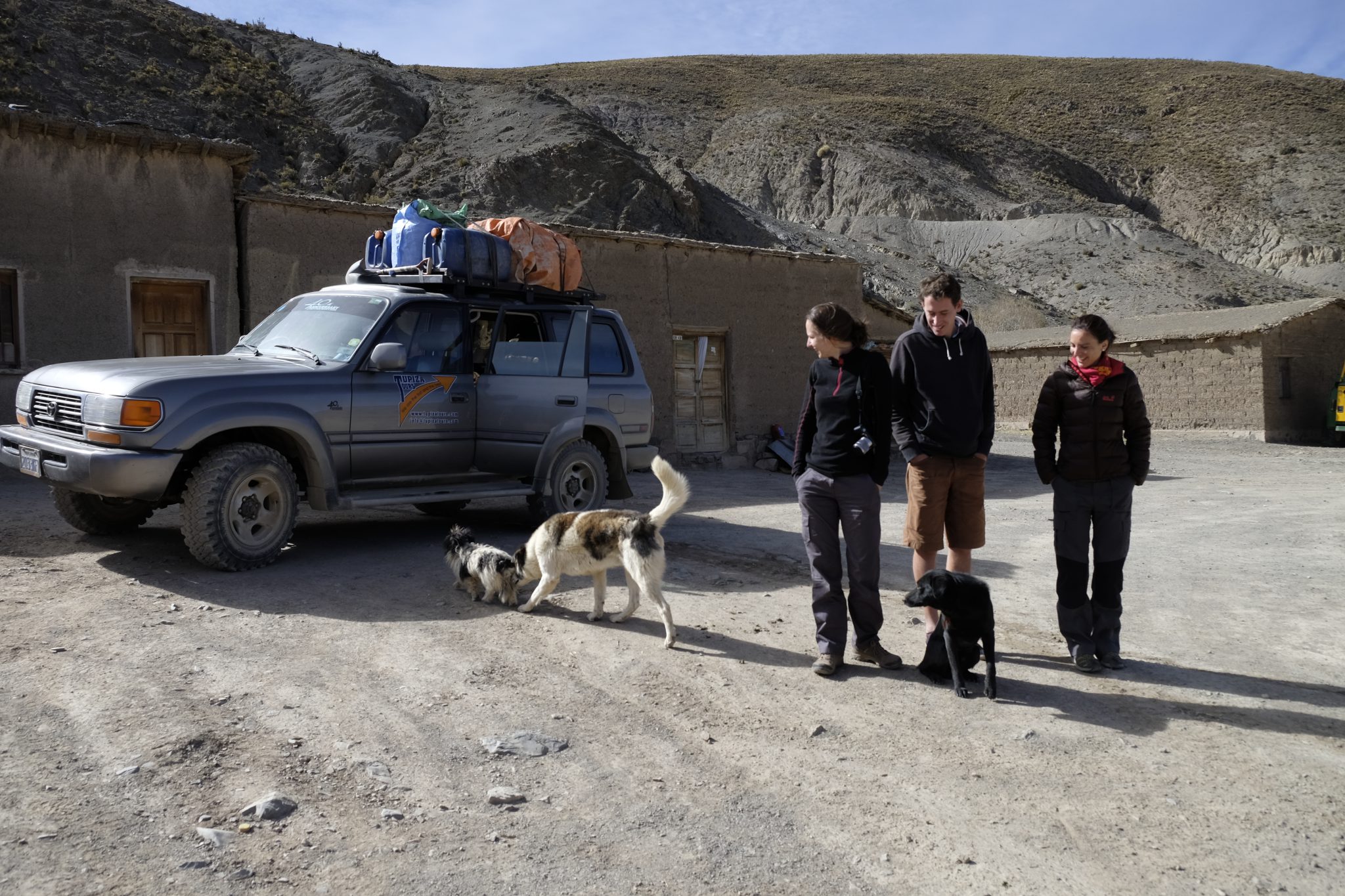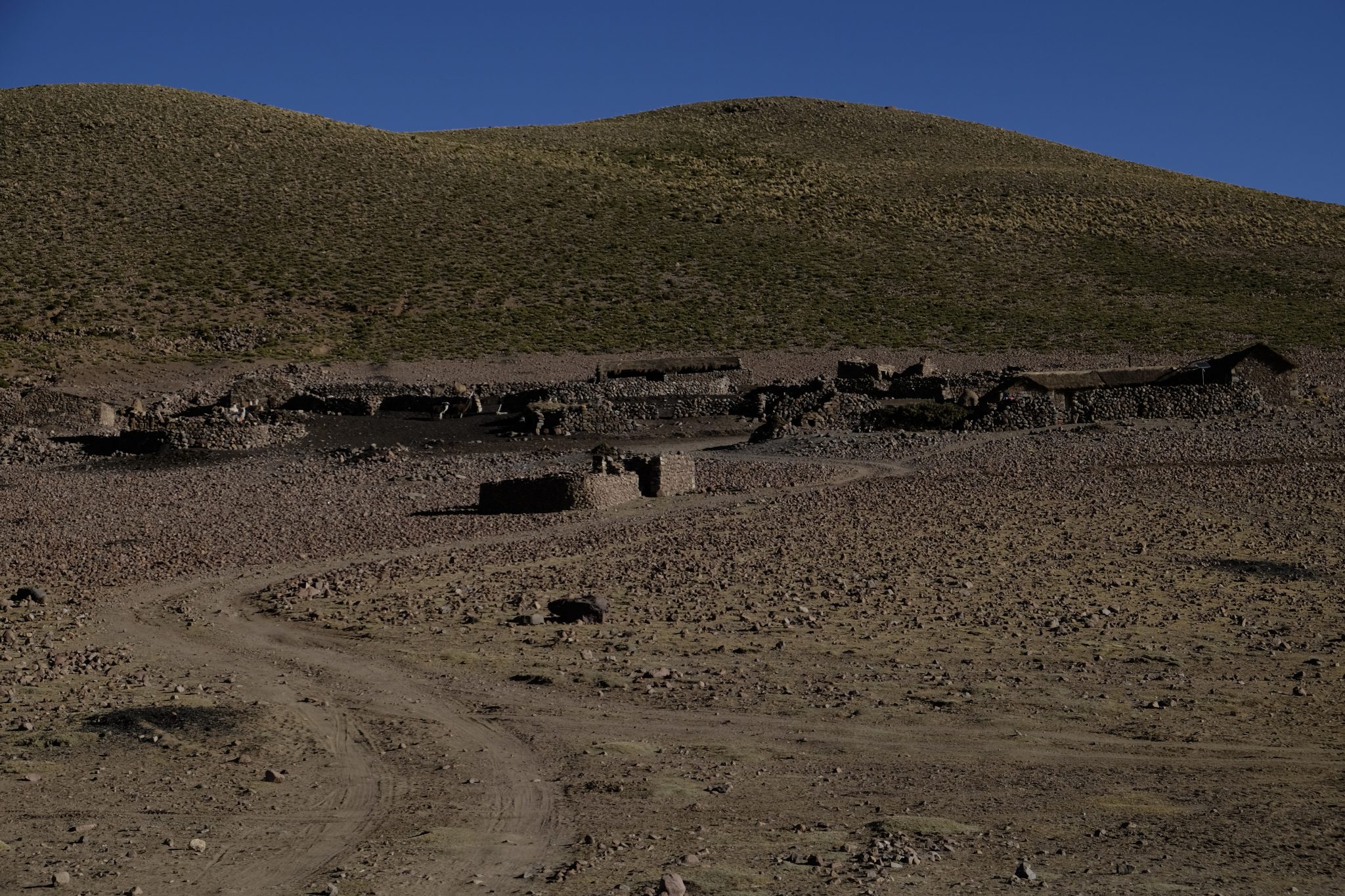 Ik pa laikam vienmuļajā ainavā parādās kāds kleķa namiņš vai tā drupas. Tāpat kā strausi un lamas, kuru ausis rotā dažādu krāsu pušķīši – lai saimnieks pa gabalu varētu atpazīt savējās. Pēcpusdienā pieturam pie apjomīga ciemata drupām, tur mūs sagaida ļoti īpatnā spāņu valodā runājošs gids. Un ir nenormāli auksti. Konstatējusi, ka no gida teiktā neko nesaprotu, kāpju ielejā, lai slēptos no vēja un pabildētu skaistos akmeņus vakara saulē. Pēc tam francūži man sniedz īsu atstāstu par dzirdēto. Ciemats būvēts 16. – 17. gadsimtā, tajā un dažos apkārtējos ciematos kopumā dzīvojuši aptuveni 1600 cilvēku, pārsvarā kalnrači. Pirms 150. gadiem apkaimes kalnos izbeigušies derīgie izrakteņi un līdz ar to arī ciemati pārvērtušies drupu kaudzēs, kuras varam apskatīt šobrīd.