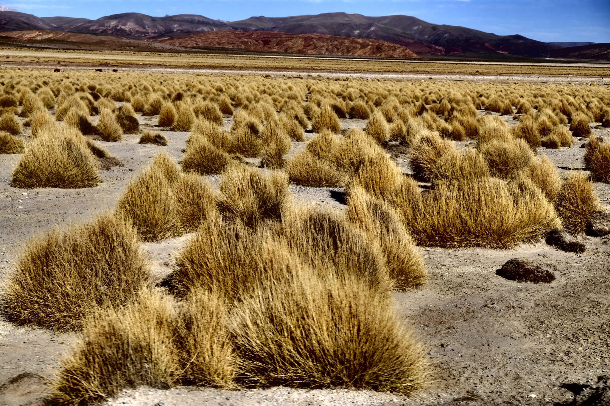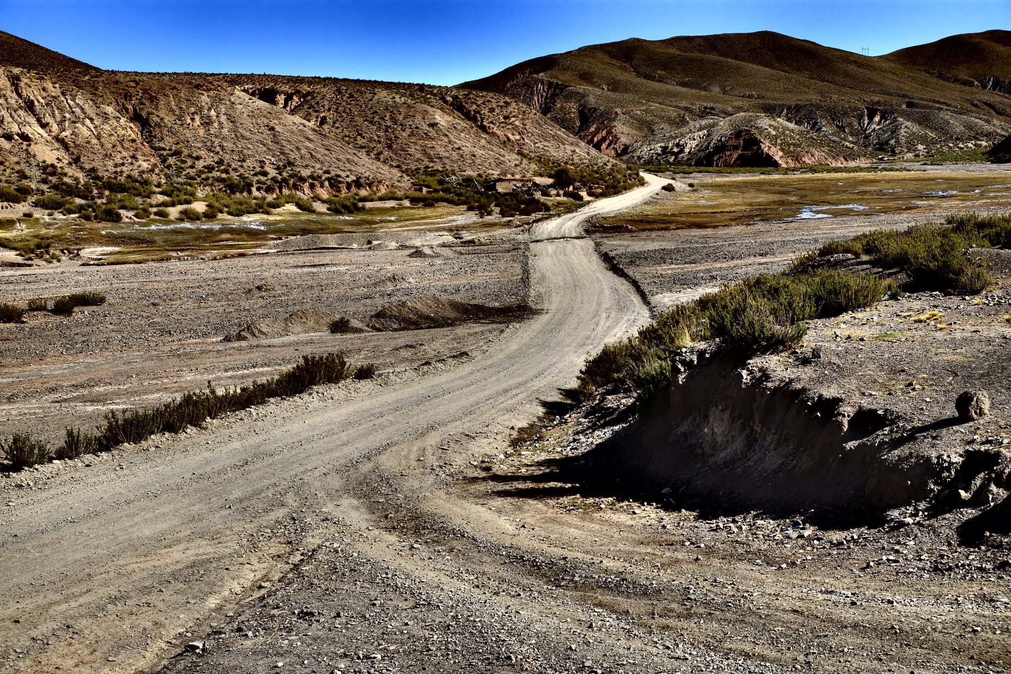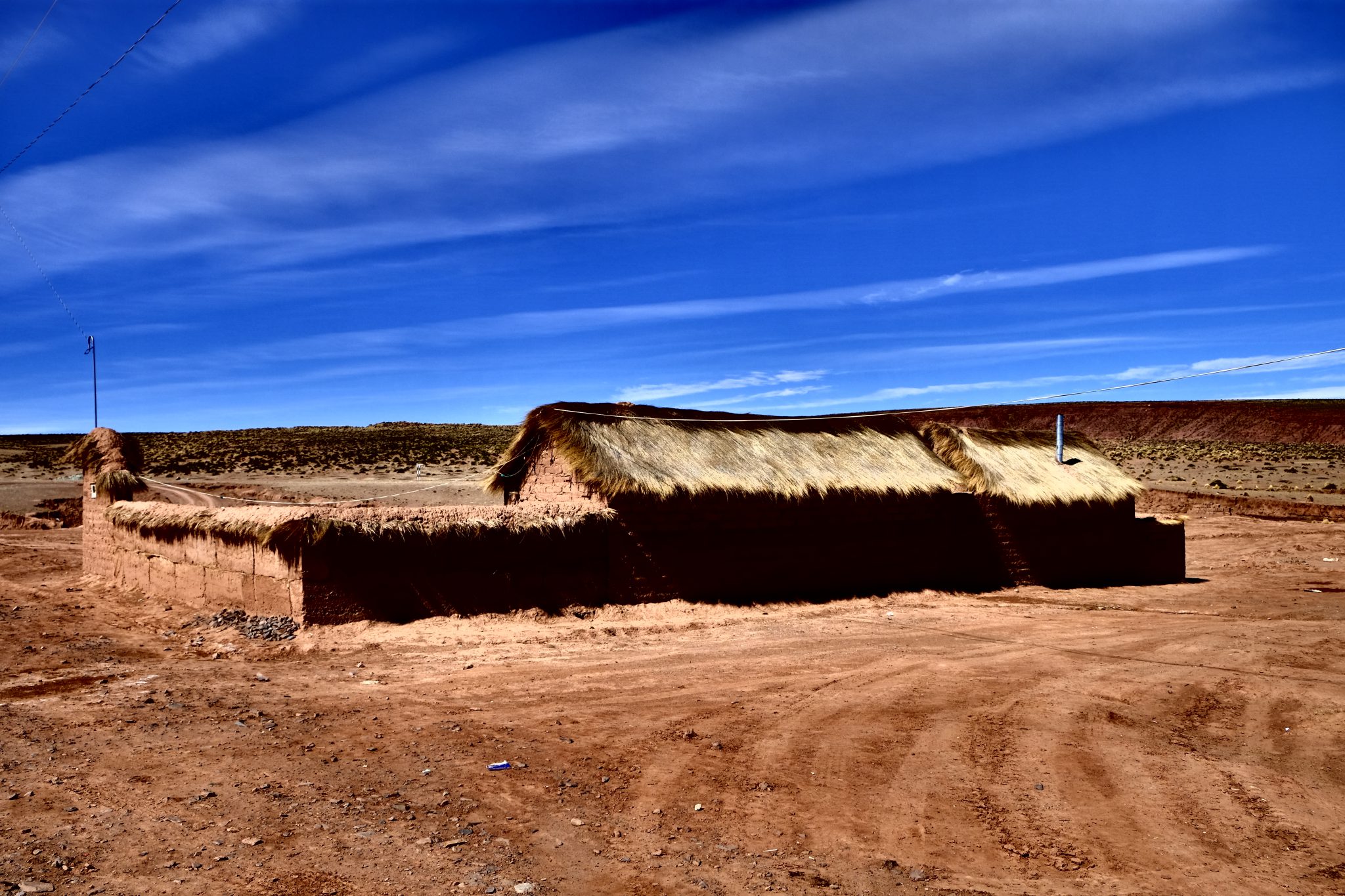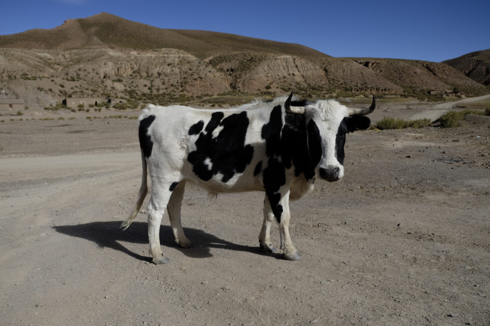 Ik pa laikam vienmuļajā ainavā parādās kāds kleķa namiņš vai tā drupas. Tāpat kā strausi un lamas, kuru ausis rotā dažādu krāsu pušķīši – lai saimnieks pa gabalu varētu atpazīt savējās. Pēcpusdienā pieturam pie apjomīga ciemata drupām, tur mūs sagaida ļoti īpatnā spāņu valodā runājošs gids. Un ir nenormāli auksti. Konstatējusi, ka no gida teiktā neko nesaprotu, kāpju ielejā, lai slēptos no vēja un pabildētu skaistos akmeņus vakara saulē. Pēc tam francūži man sniedz īsu atstāstu par dzirdēto. Ciemats būvēts 16. – 17. gadsimtā, tajā un dažos apkārtējos ciematos kopumā dzīvojuši aptuveni 1600 cilvēku, pārsvarā kalnrači. Pirms 150. gadiem apkaimes kalnos izbeigušies derīgie izrakteņi un līdz ar to arī ciemati pārvērtušies drupu kaudzēs, kuras varam apskatīt šobrīd.