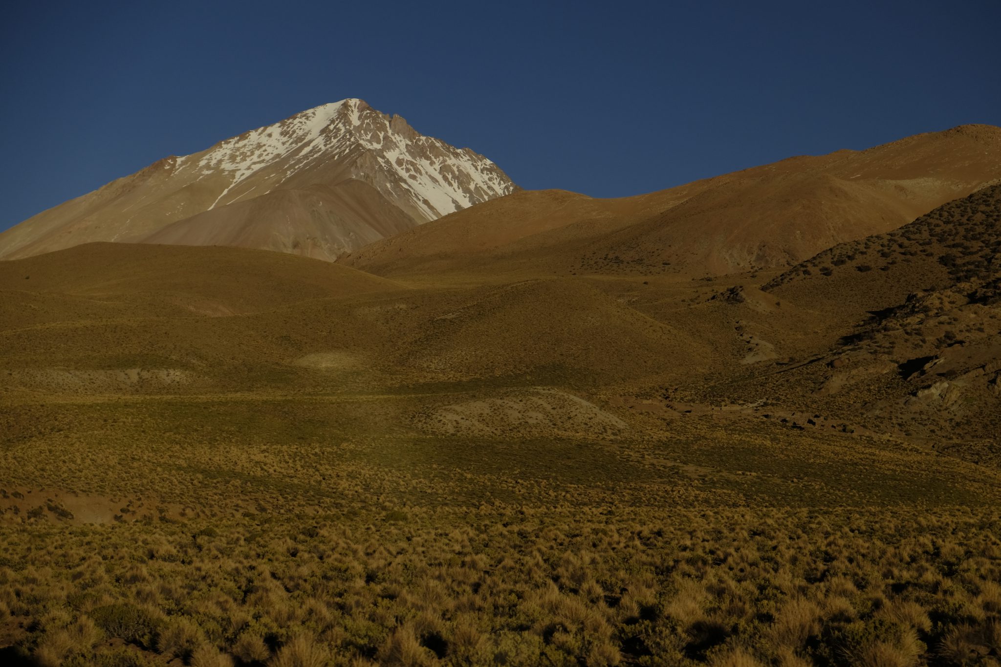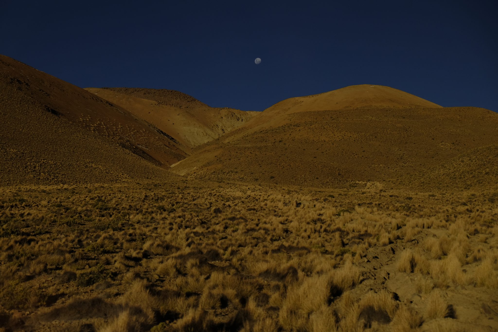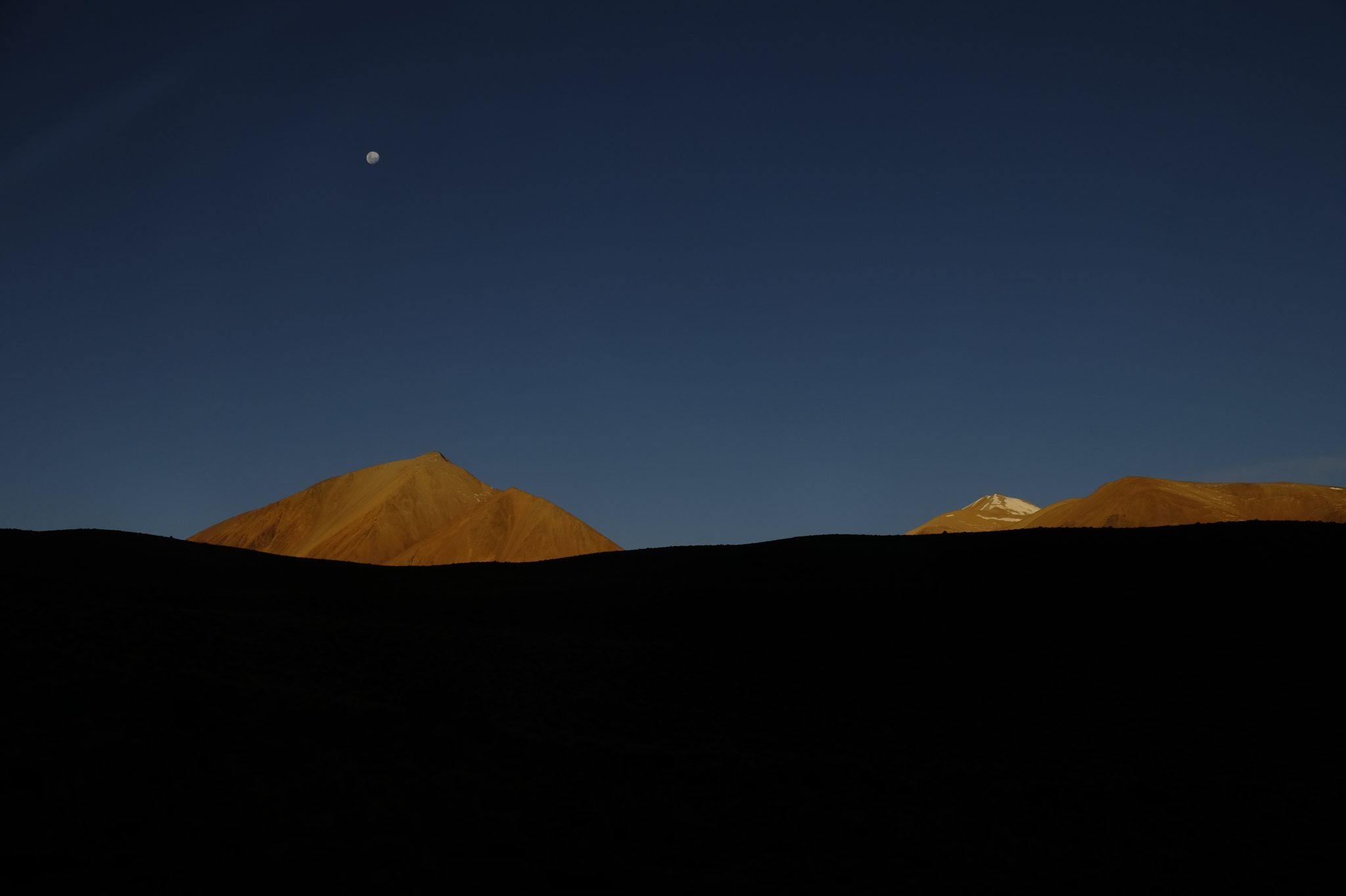 Vakara saulē sniegotie un sarkanie kalni izskatās vienkārši satriecoši. Īsi pirms tumsas iestāšanās vēl piestājam, lai nobildētu kādu lagūnu, tad kalni lēnām ietinas tumsā, dodot vietu apbrīnošanai zvaigznēm un teju apaļajam mēnesim. Apaļš paldies sen sen nākušam atbalstam no Baibas Bičevskas – silti sveicieni no aukstiem kalniem!