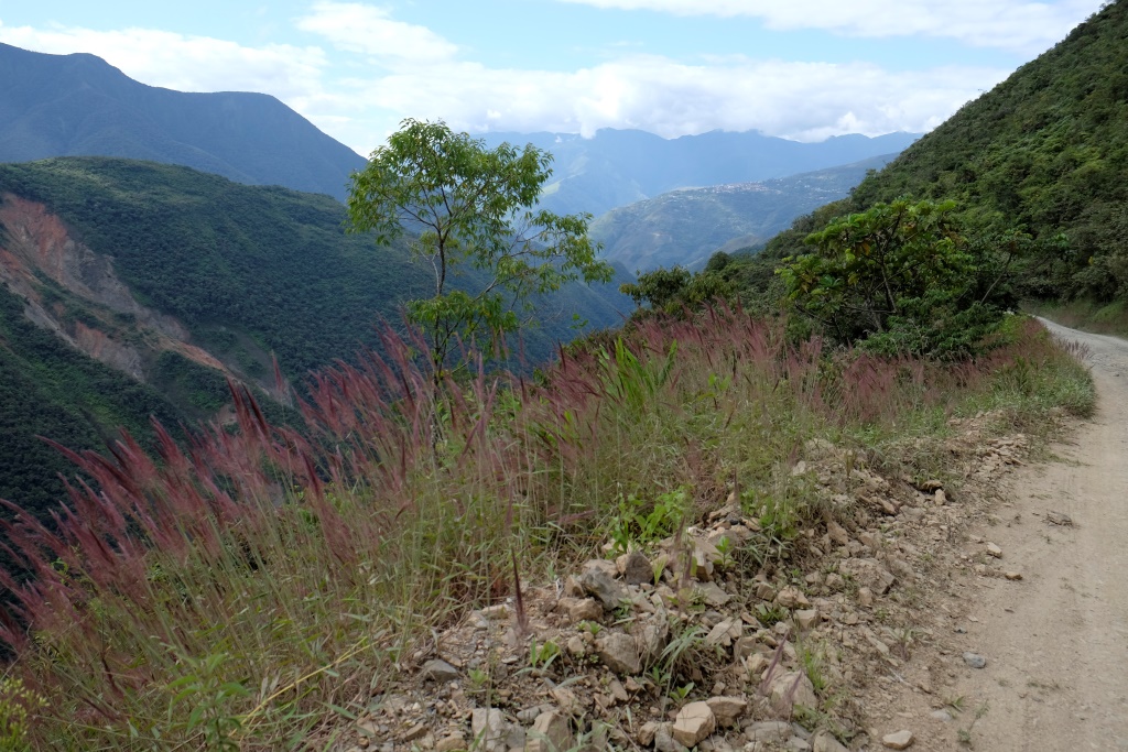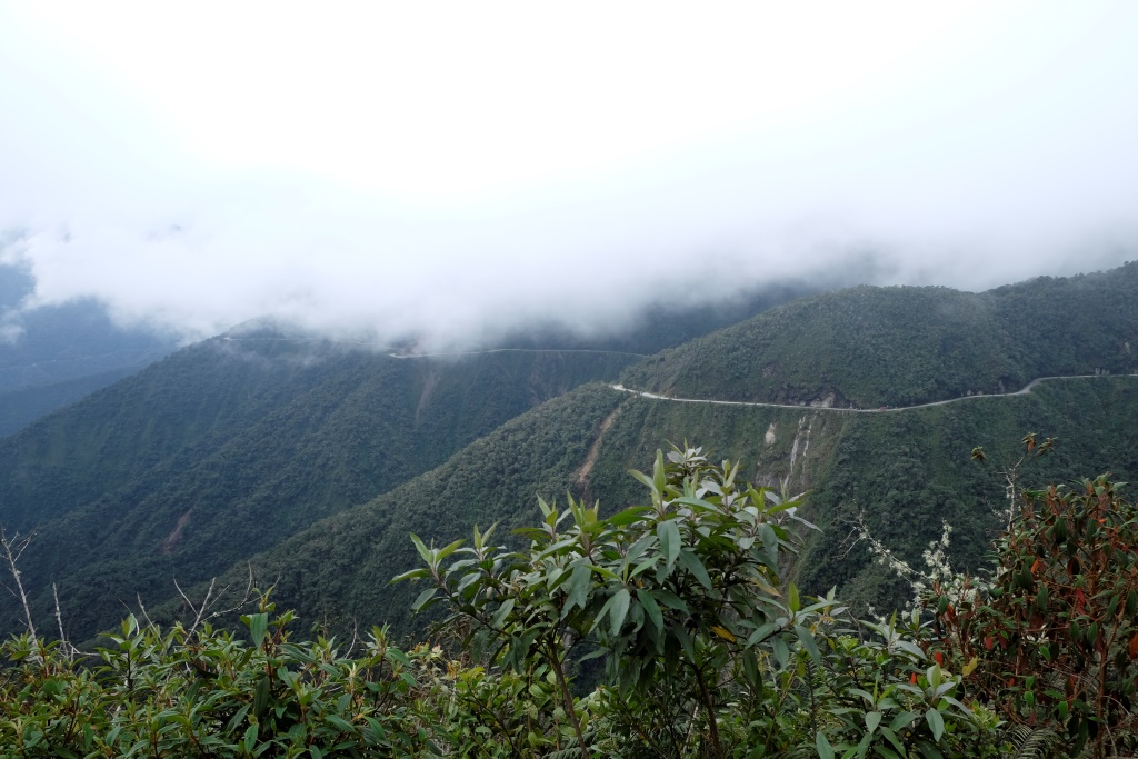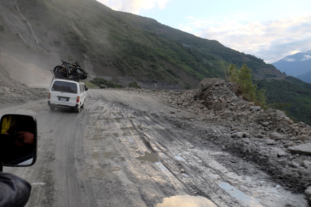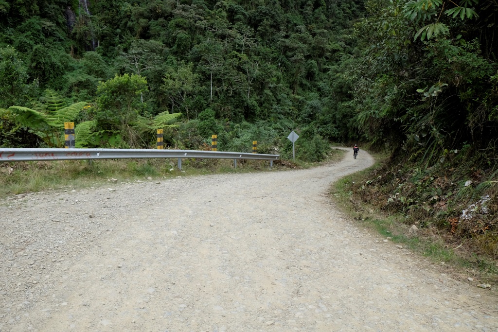Pirmais, nepilnu stundu garais nobrauciens, ir pa asfaltētu ceļu. Ritenis ripo labi, pat pārāk labi, bremzes ir mans labākais draugs. Ātrums tāpat ir gana jestrs, ik pa laikam garām pabrauc kāds auto, kuru ķiveres dēļ nevar dzirdēt (spogulīšu, protams, riteņiem nav), nevarētu teikt, ka es jūtos mega droši. Bet tieši tāpēc nepārspīlēju ar ātrumu un viss ir labi. Pēc šī posma, kas domāts velosipēda iepazīšanai, tiekam pie pāris našķiem, tad mazu gabaliņu atkal pavizināmies busiņos, līdz tiekam izkrauti mākonī – šeit sākas slavenais Nāves ceļš.