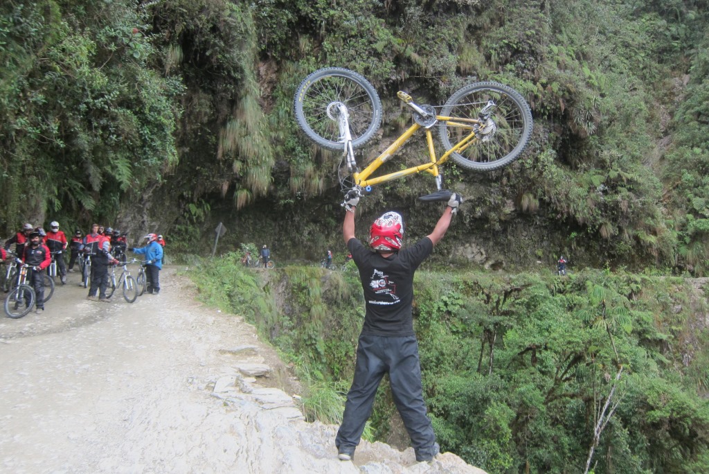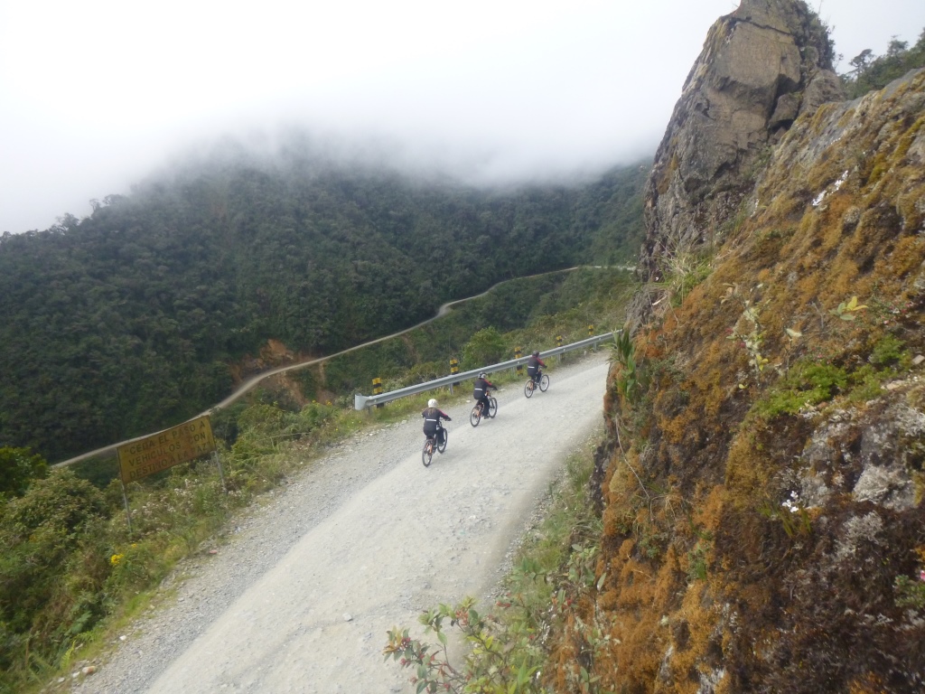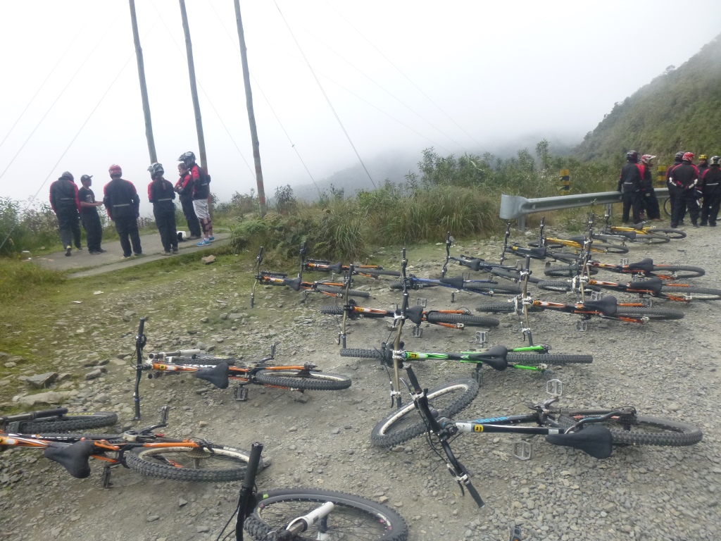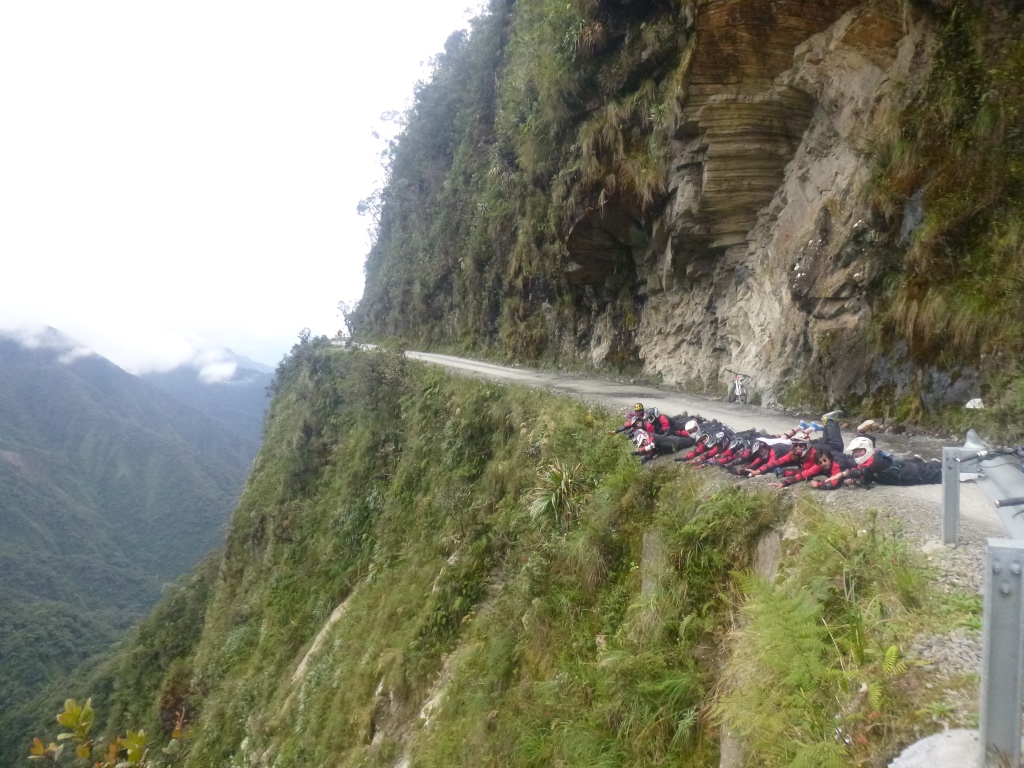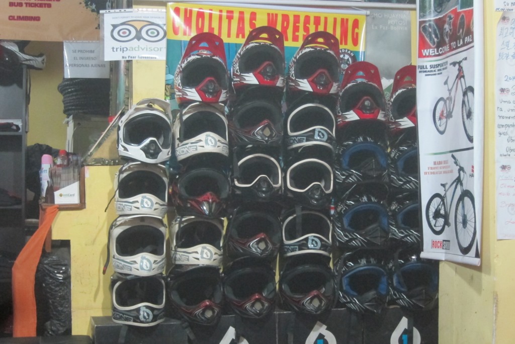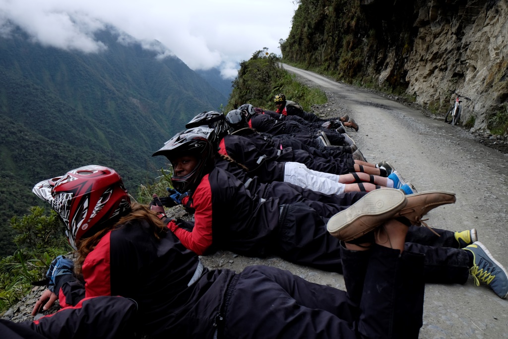 Esmu dzirdējusi, ka rūpīgi jāizvēlas ceļojumu aģentūra, jānoskaidro, cik cilvēku piedalīsies nobraucienā, jāpārbauda velosipēda tehniskais stāvoklis. Neesmu izdarījusi neko no tā. Toties esmu rezervējusi vienu no lētākajiem pieejamajiem variantiem (350 boliviano) uz viena no sūdīgākajiem velosipēdiem. Protams, cilvēki arī esam vesels bars – mazpadsmit. Bet man šķiet, ka arī relatīvi lētās kompānijas nav ieinteresētas, lai viņu braucēji birst no klints lejā, gan jau būs labi.