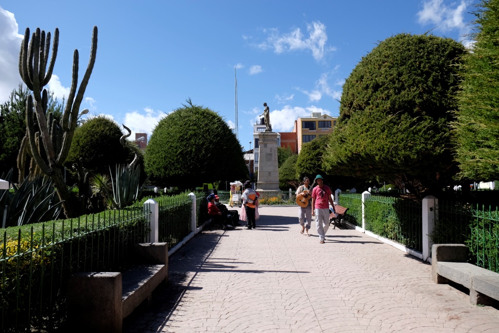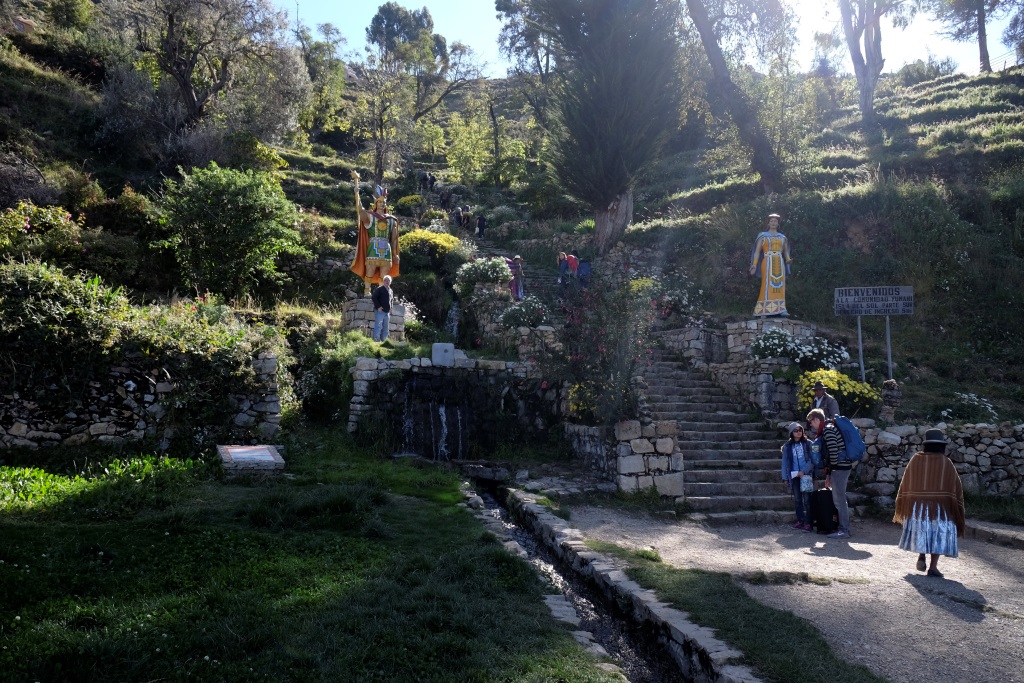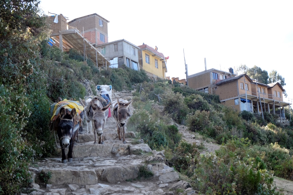 Kāpju un pūšos, pūšos un kāpju. Atpūtas pauzēs bildēju šejienes skaistās puķu dobes un apkārtnes ainavu, kas ar katriem uzkāptiem pārdesmit metriem top aizvien iespaidīgāka. Man pa ceļam piesitas mazs puišelis, kurš prasa, vai man vajadzēšot naktsmājas. Nu, ir tāda lieta. Viņš profesionāli apvaicājas par personu skaitu, tad sāk reklamēt savu piedāvājumu – skats lielisks bez gala, ne tā kā šeit, kur koki priekšā; karstais ūdens; esot gan atsevišķas istabas, gan kopīgas. Labi, cik maksā. Atsevišķā esot 50 boliviano, bet kopīgā 35. 35 izklausās labi, vai tālu būs jākāpj. Nē, minūtes desmit. Tātad divdesmit. Bet labi, mēģināšu. Puisītis garlaikojas, es stenu. Vienā brīdī viņš man sniedz mazu piparmētras zariņu, tas, viņaprāt, palīdzot pret augstumu. Nezinu, vai palīdz, bet smaržo dikti labi. Puisēns arī piedāvā nest manu mazo mugursomu, tomēr atsakos, jo negribu nodarbināt bērnus. Pēc tam atnāk arī (aiz)doma, ka, ja vien viņš vēlētos, varētu mierīgi ar visu manu somu aizbēgt, ka divi deviņi.